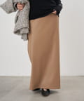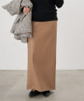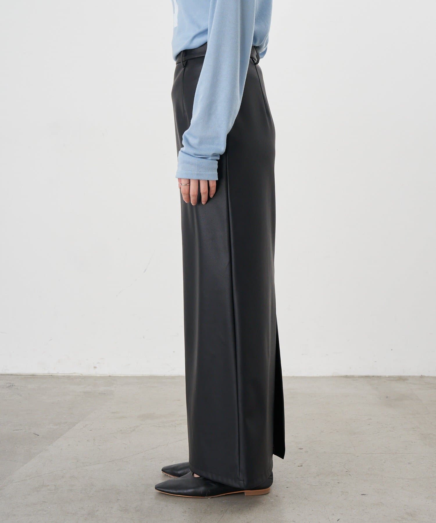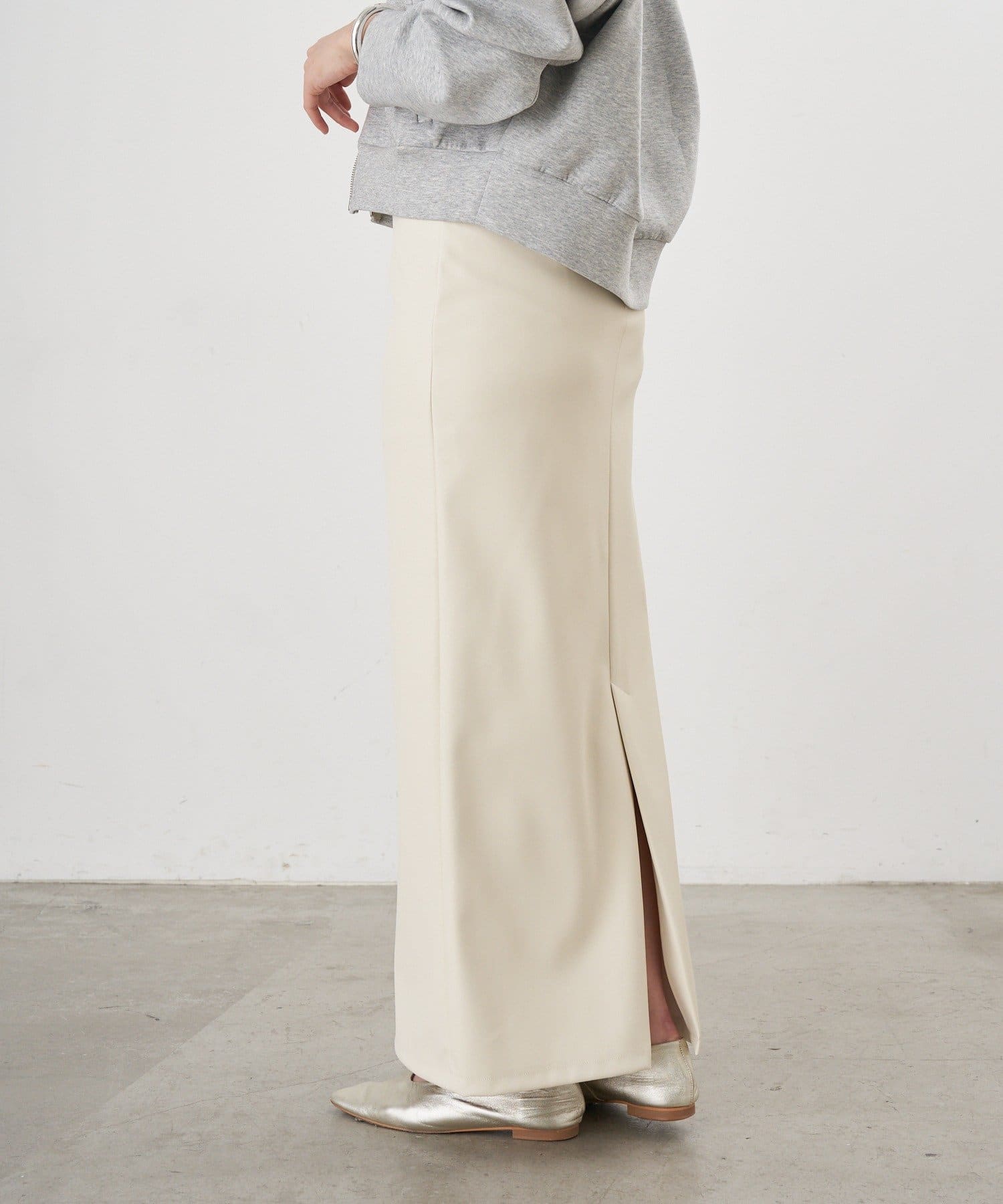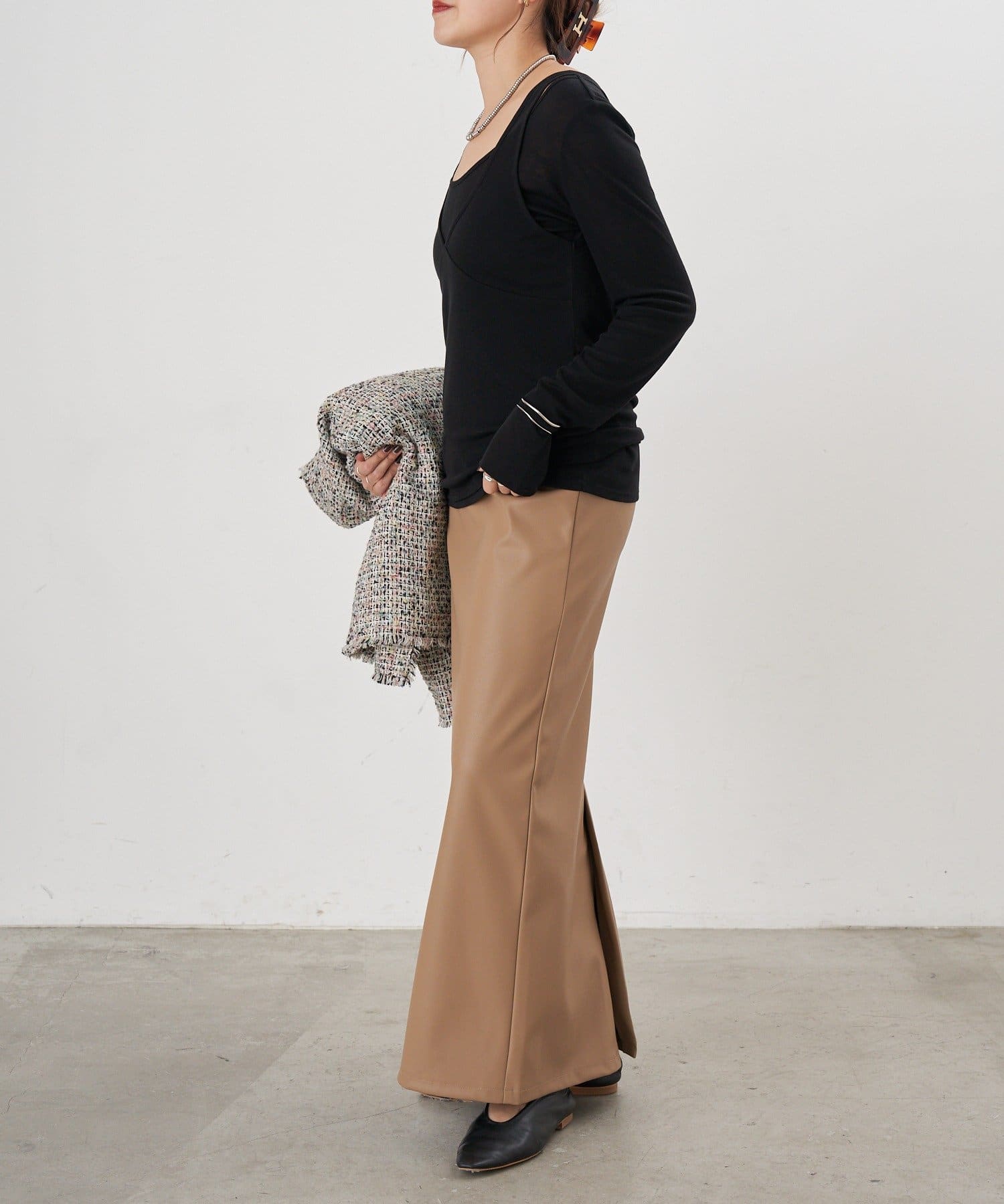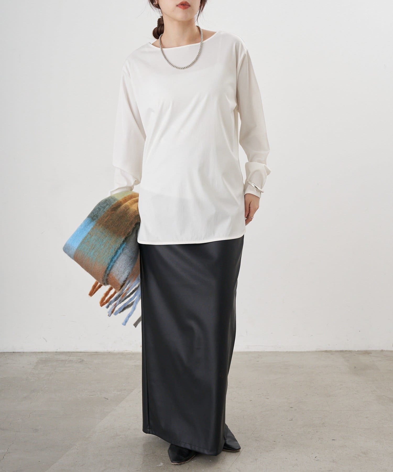 軽く柔らかなフェイクレザーで仕立てたマキシ丈のスカート。