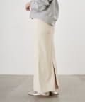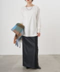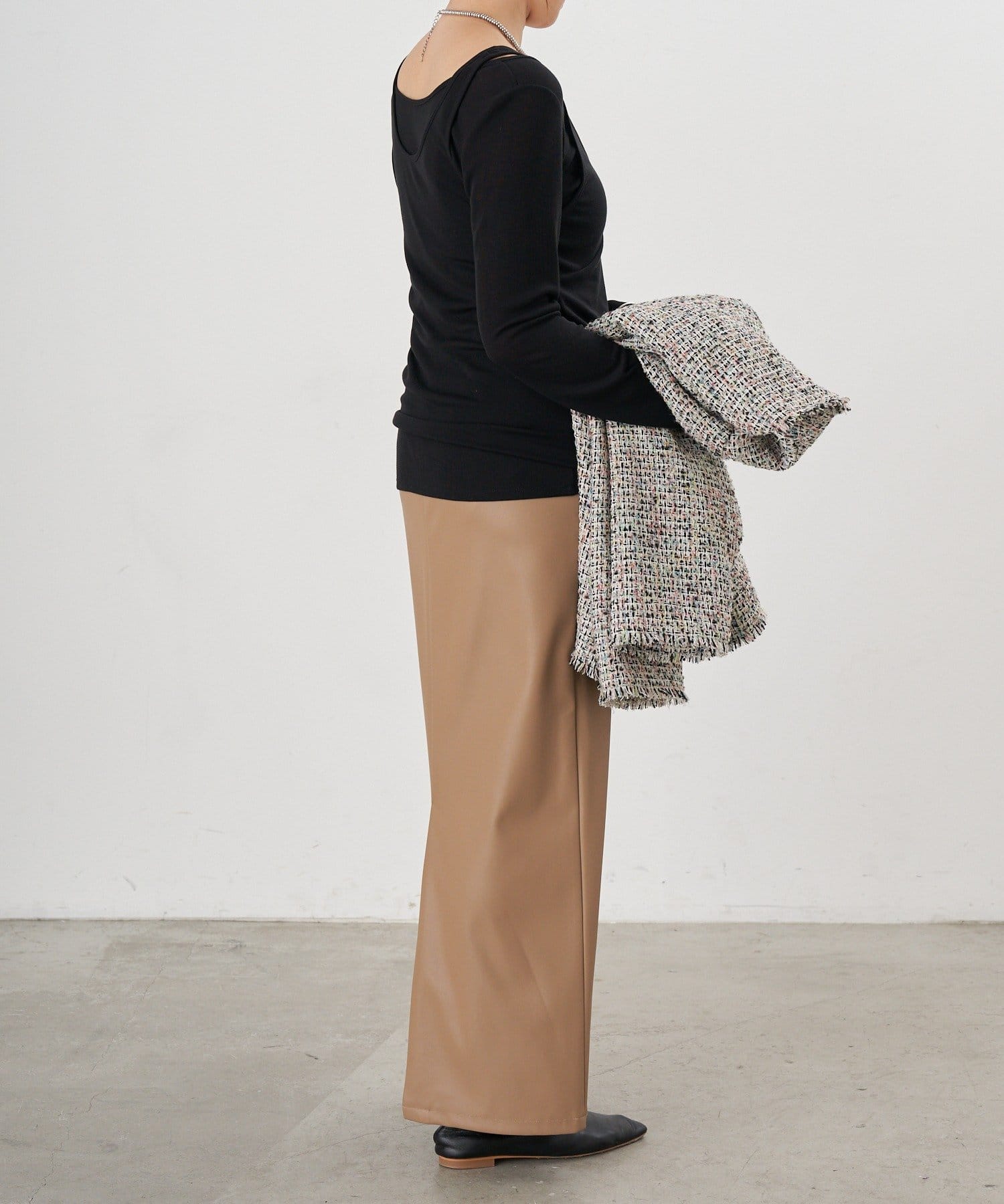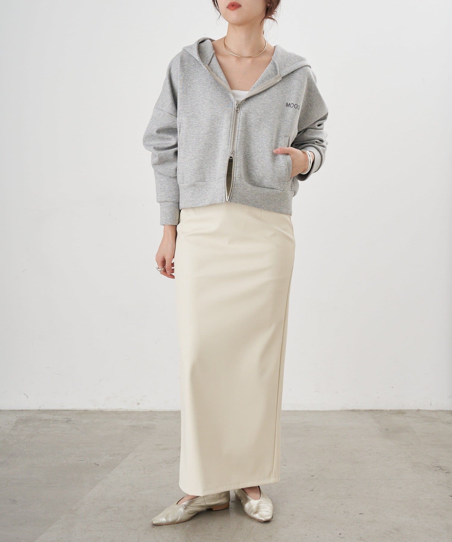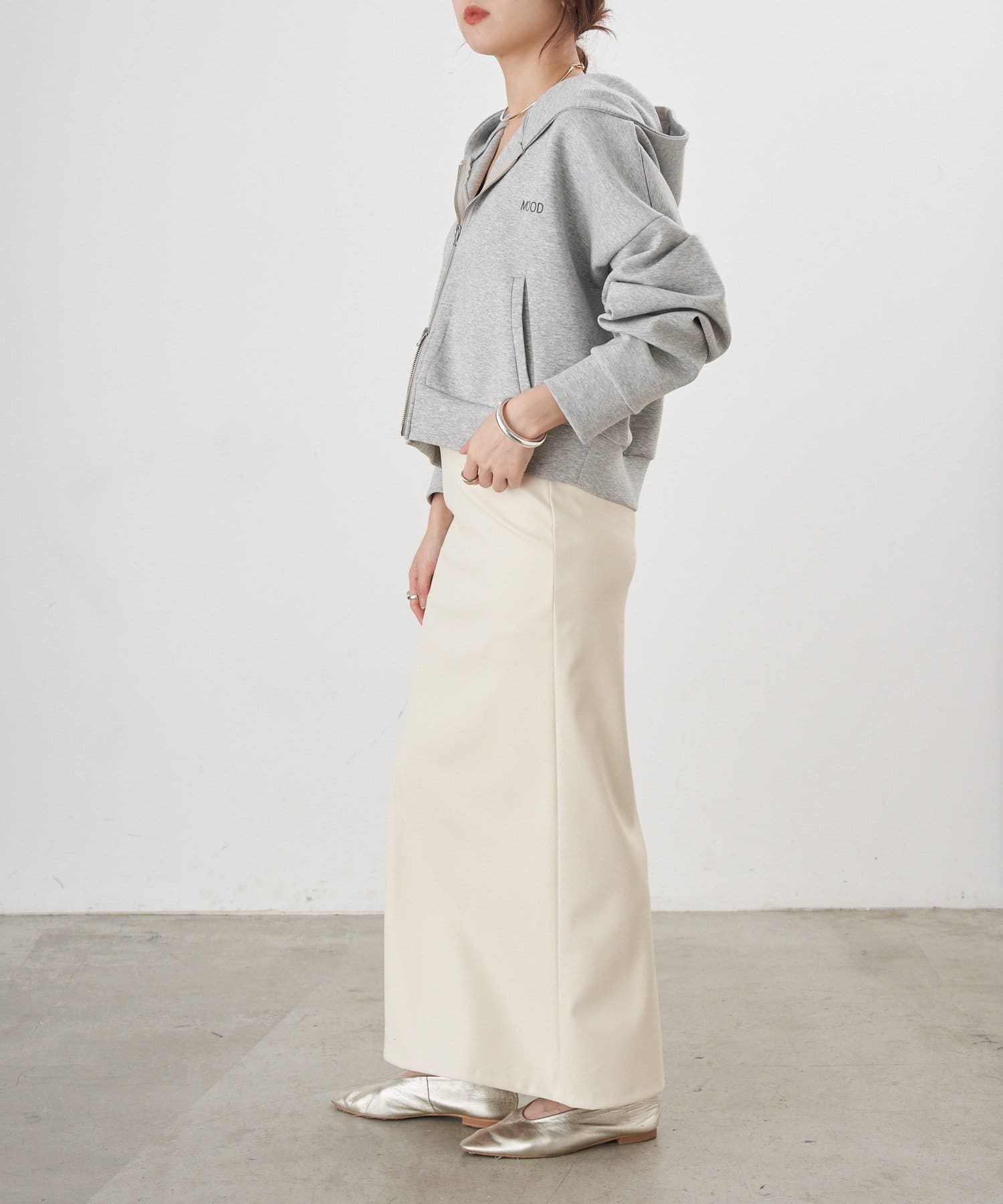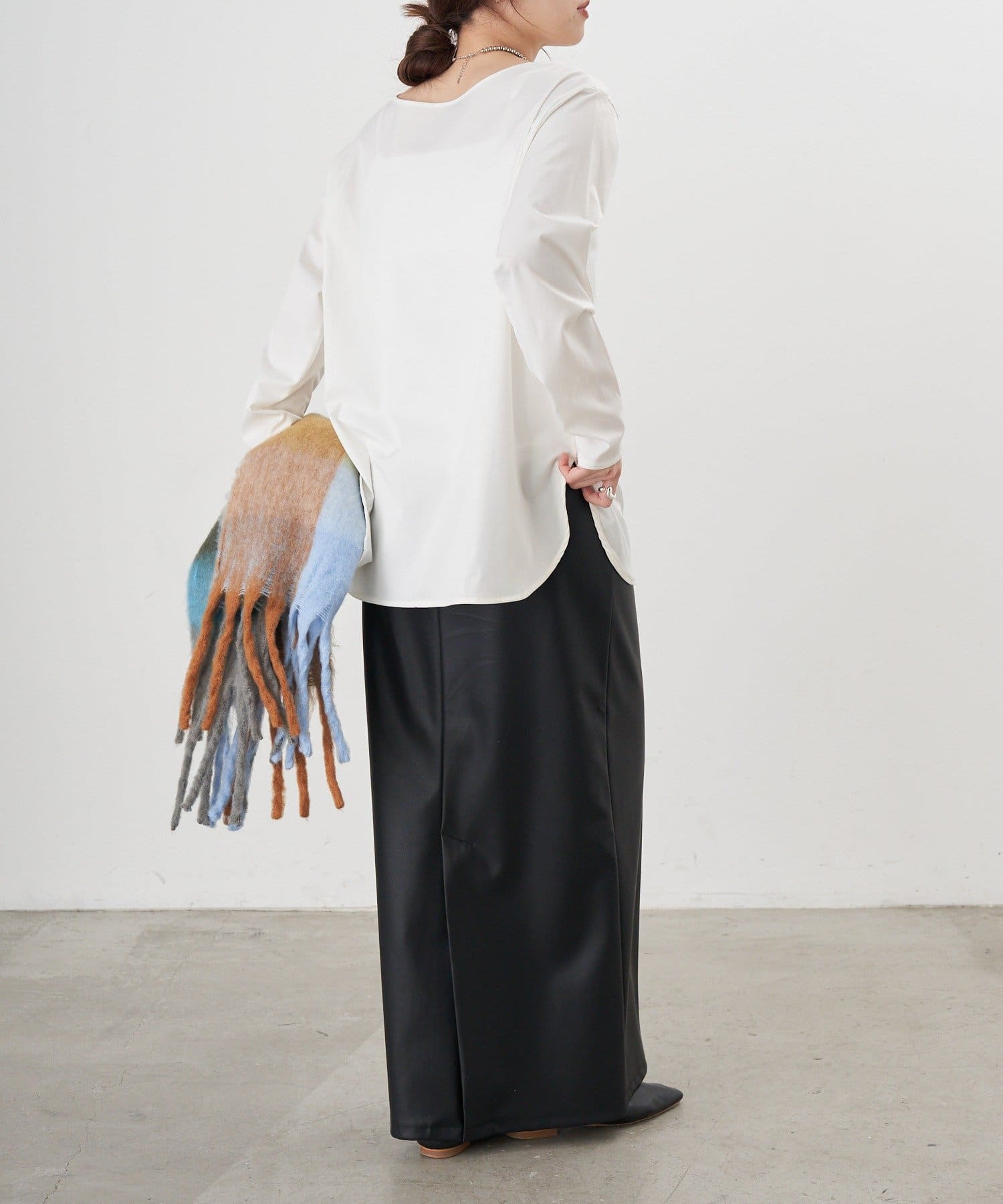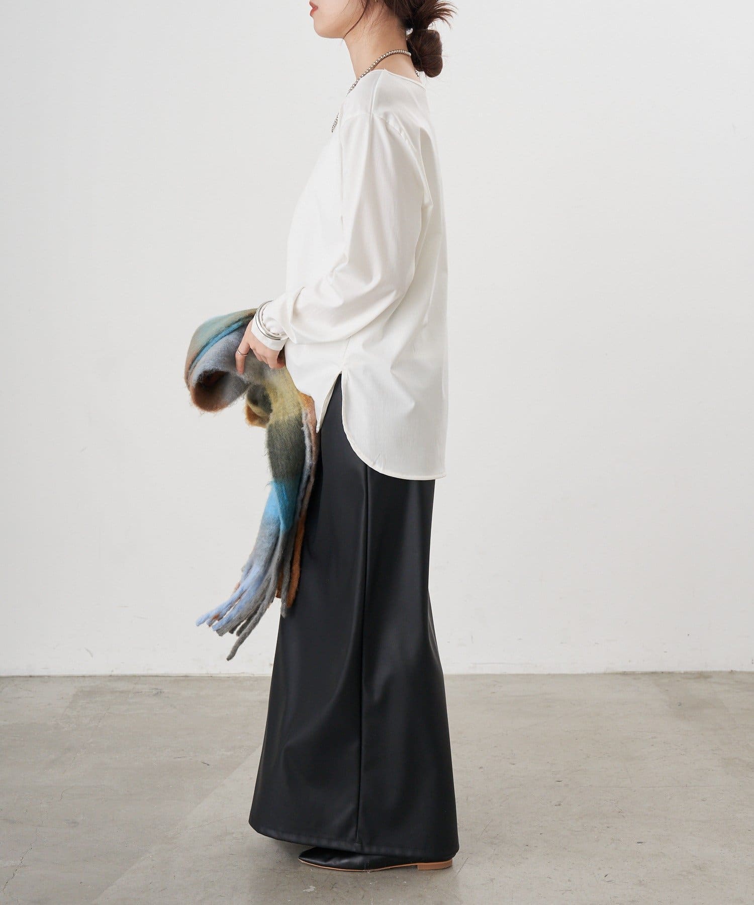 軽く柔らかなフェイクレザーで仕立てたマキシ丈のスカート。