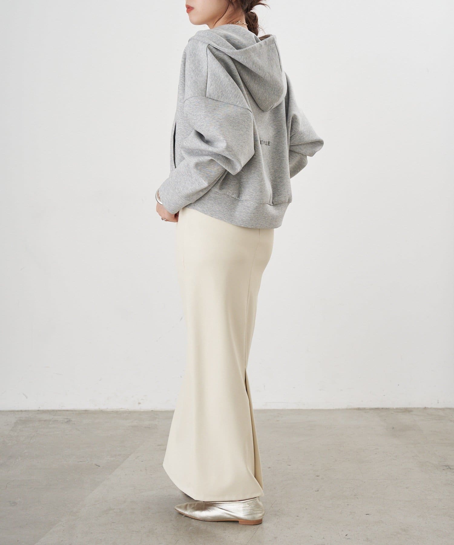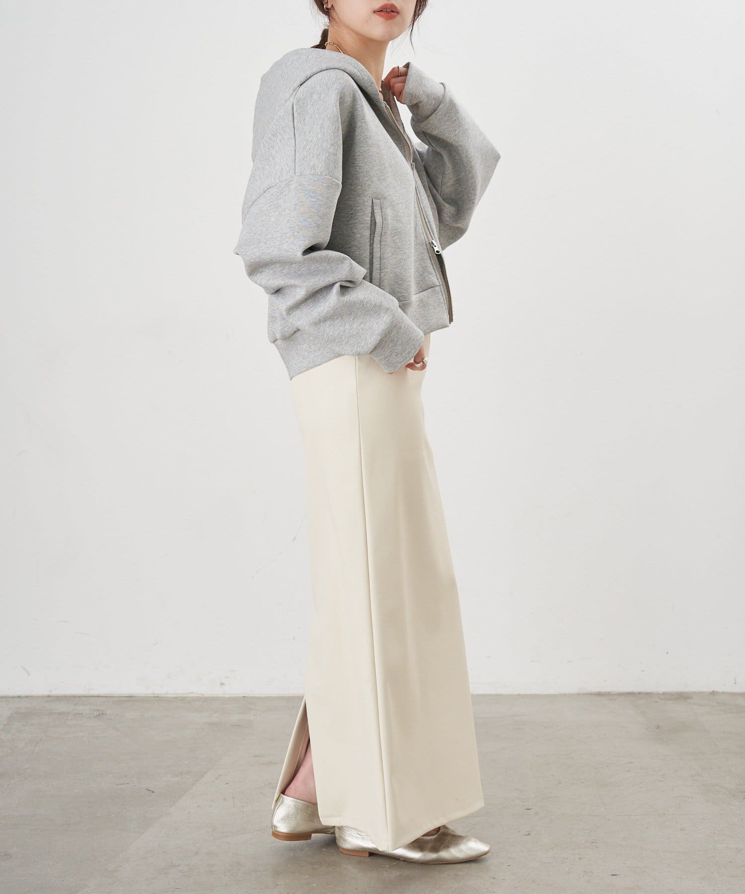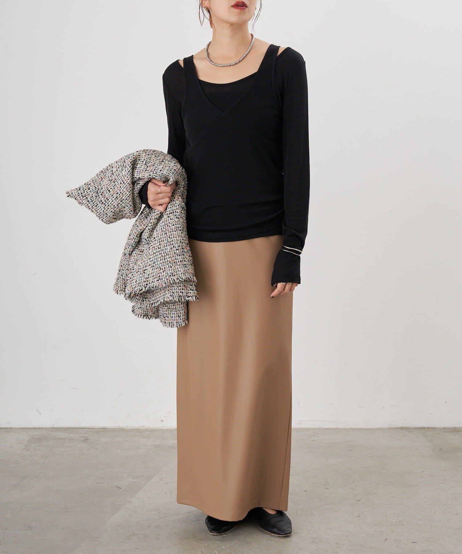 Iラインに近いシルエットで、大人モダンなムードに仕上がるアイテムです。