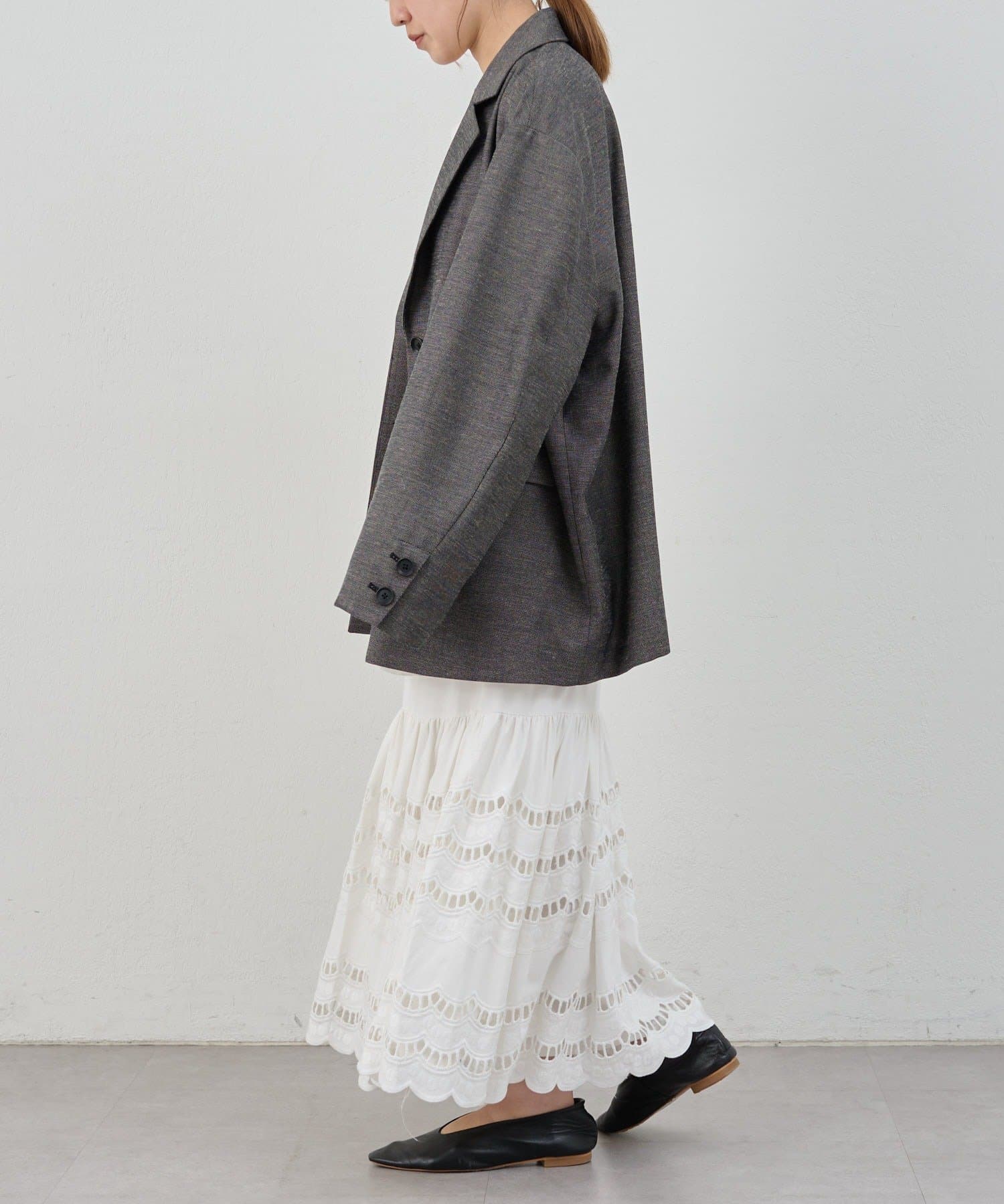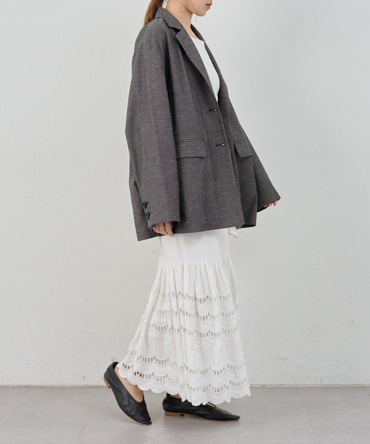 裾部分はスカラップ刺繍を施し、さりげないアクセントに◎