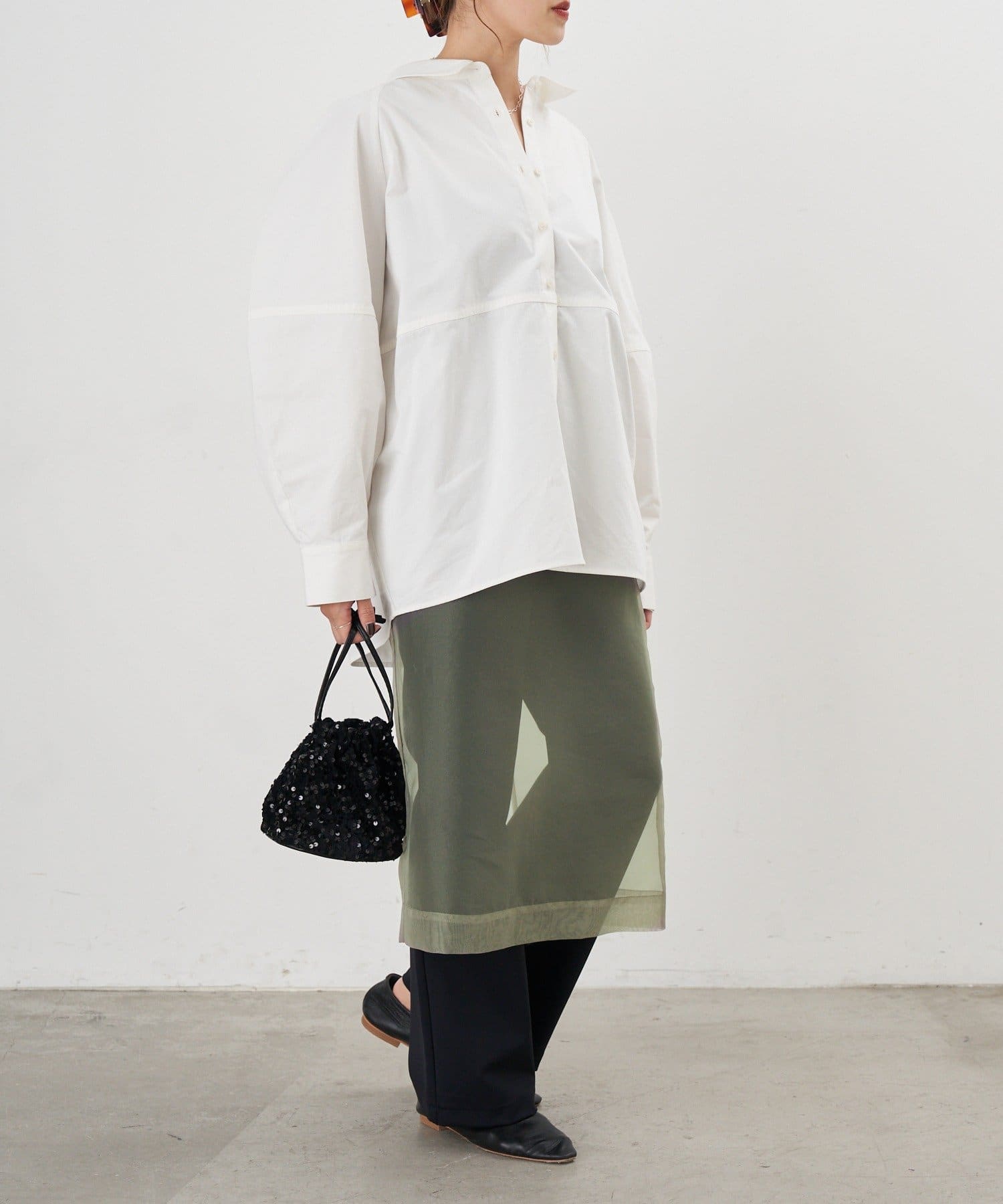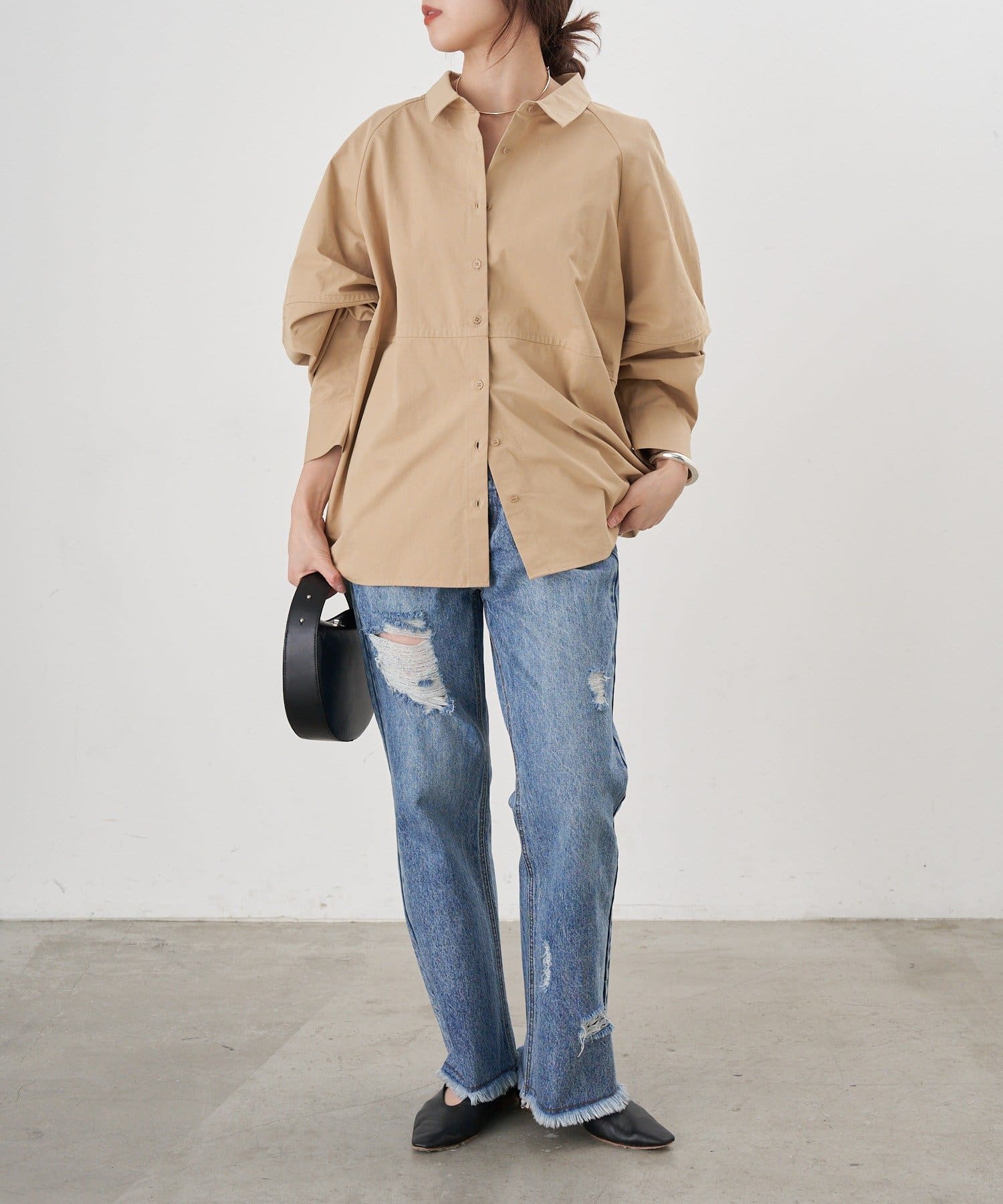 バレル(樽のような丸み)のある立体シルエットが特徴のシャツ。