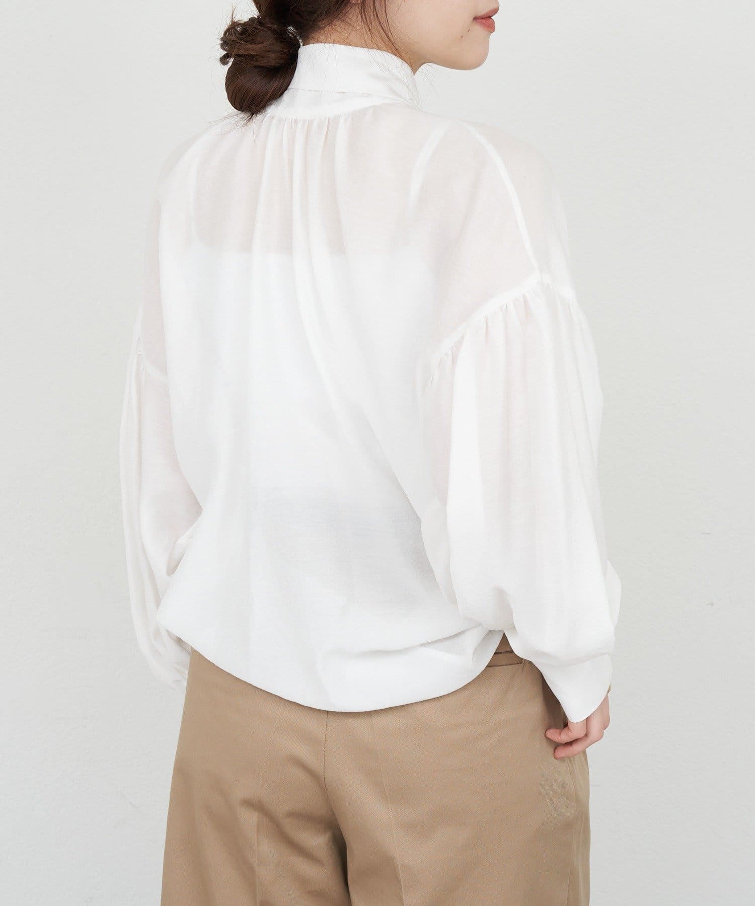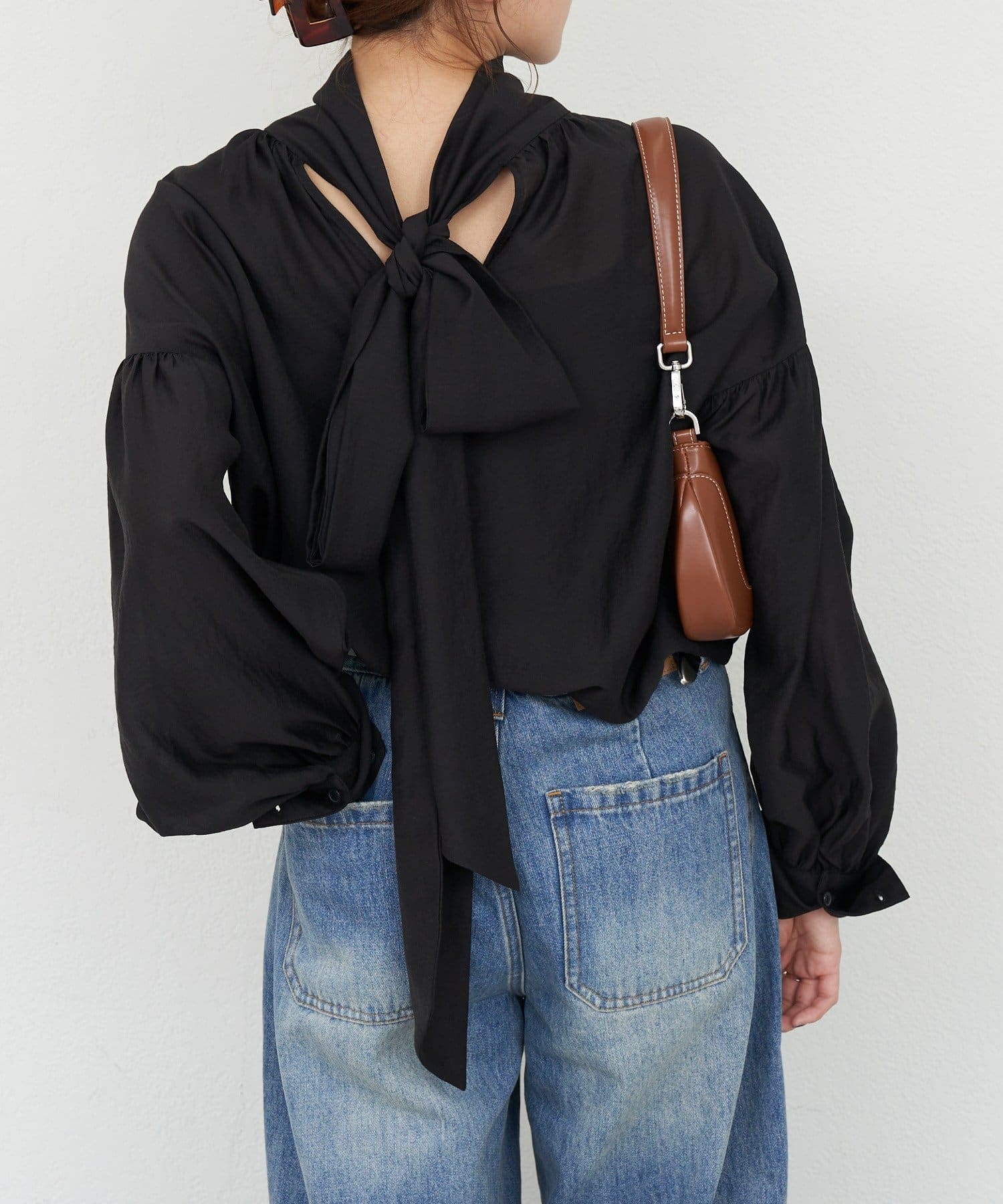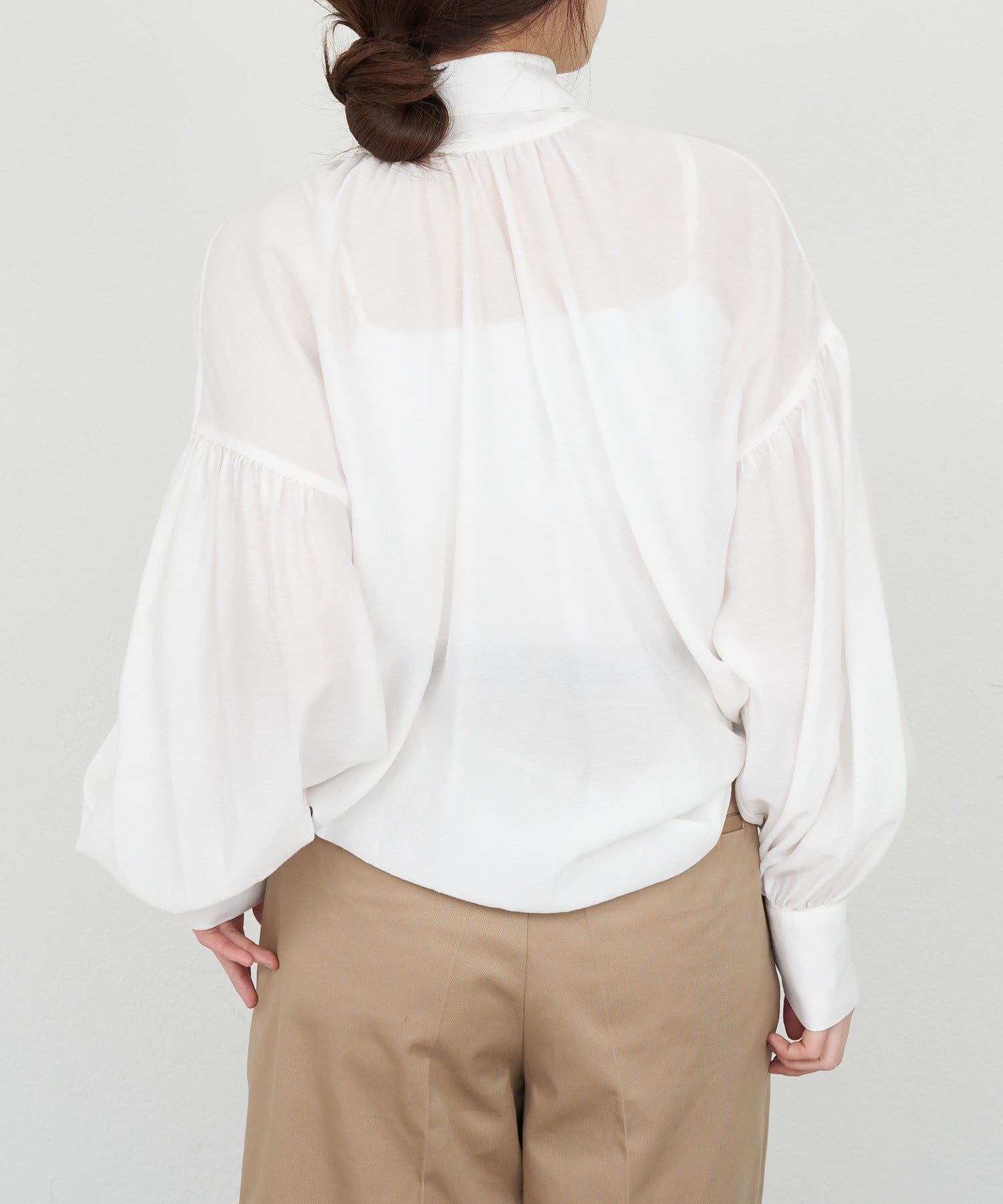 前後2WAYで着れるボウタイブラウス。