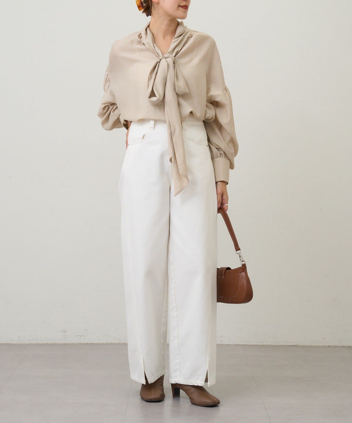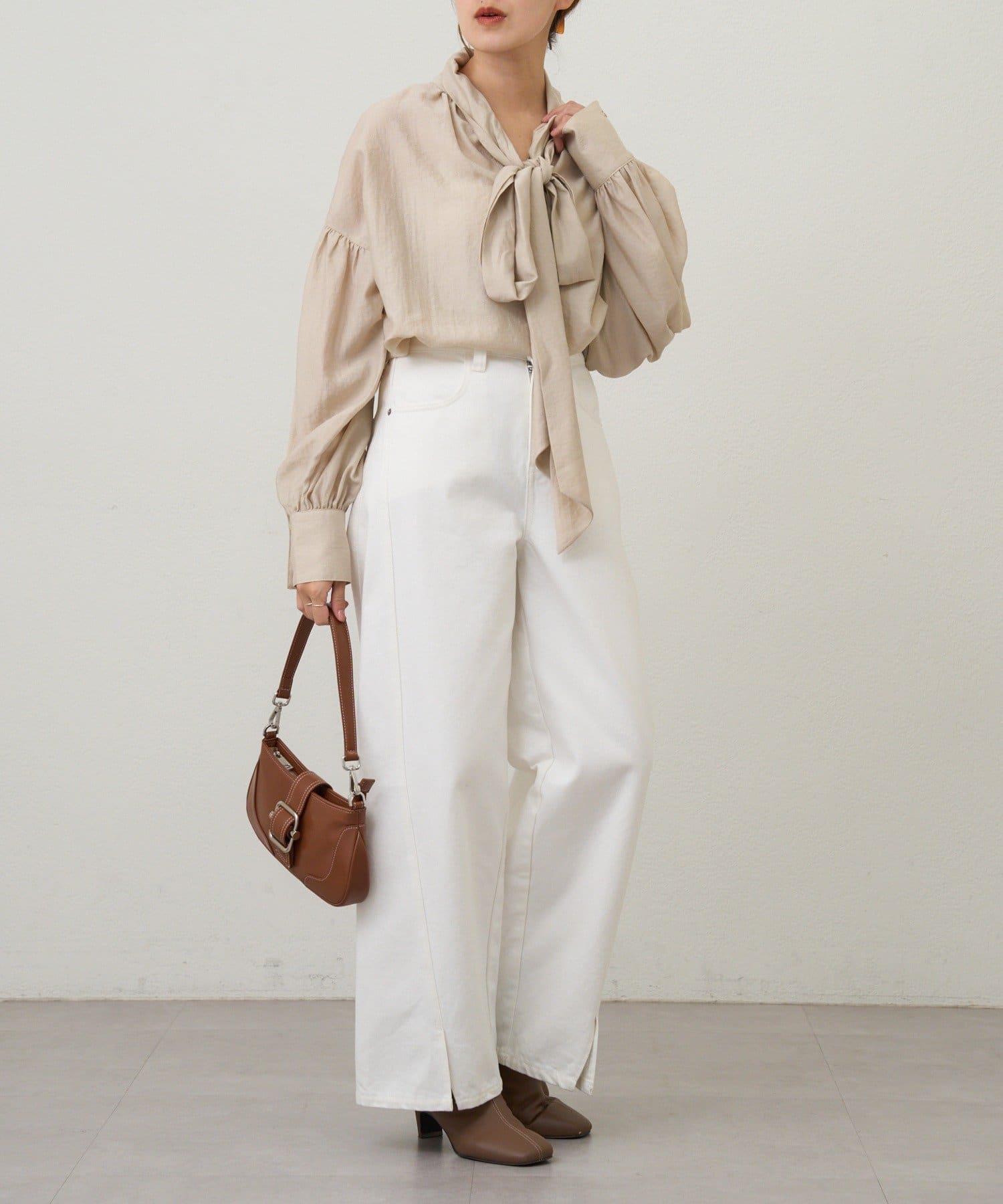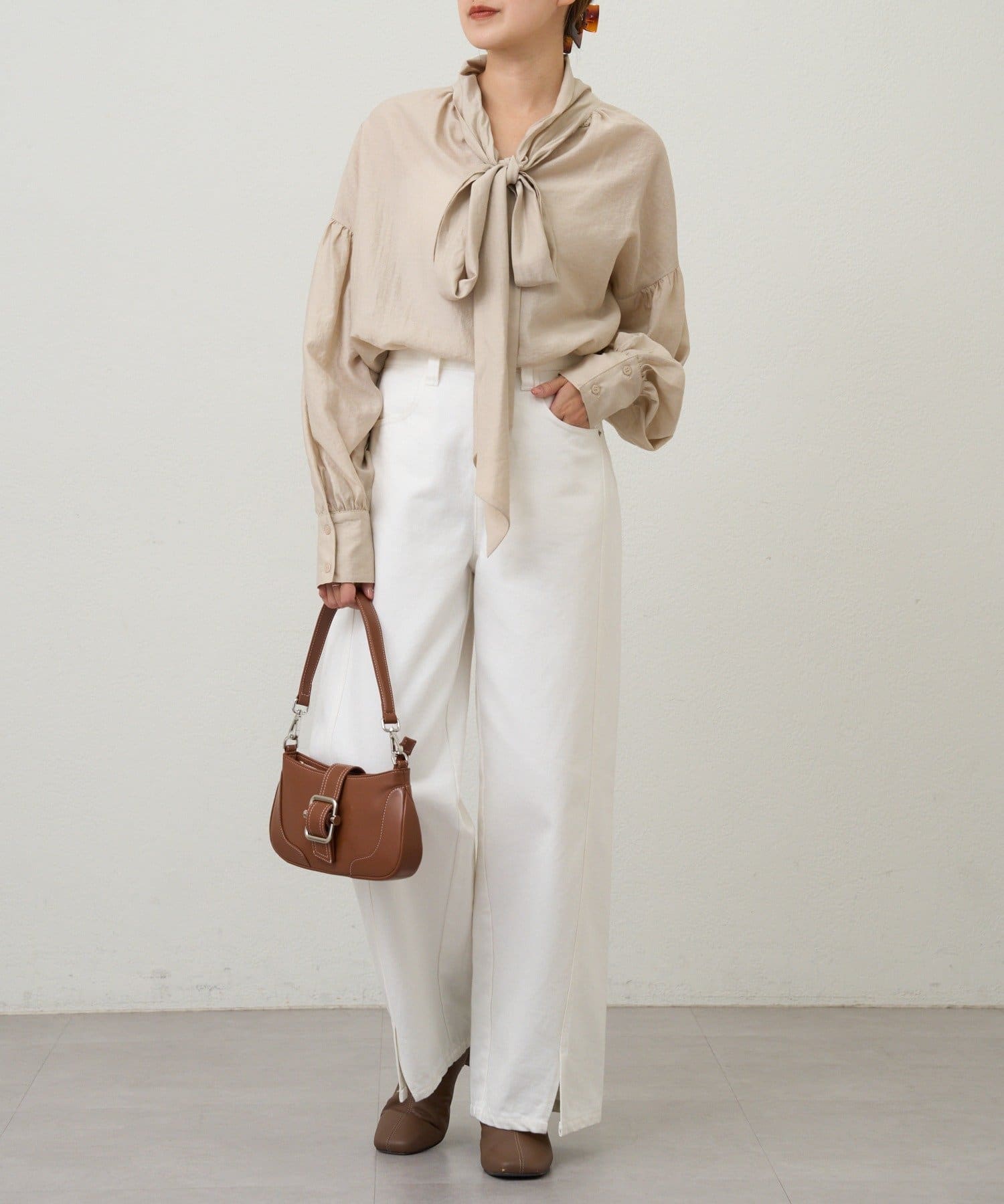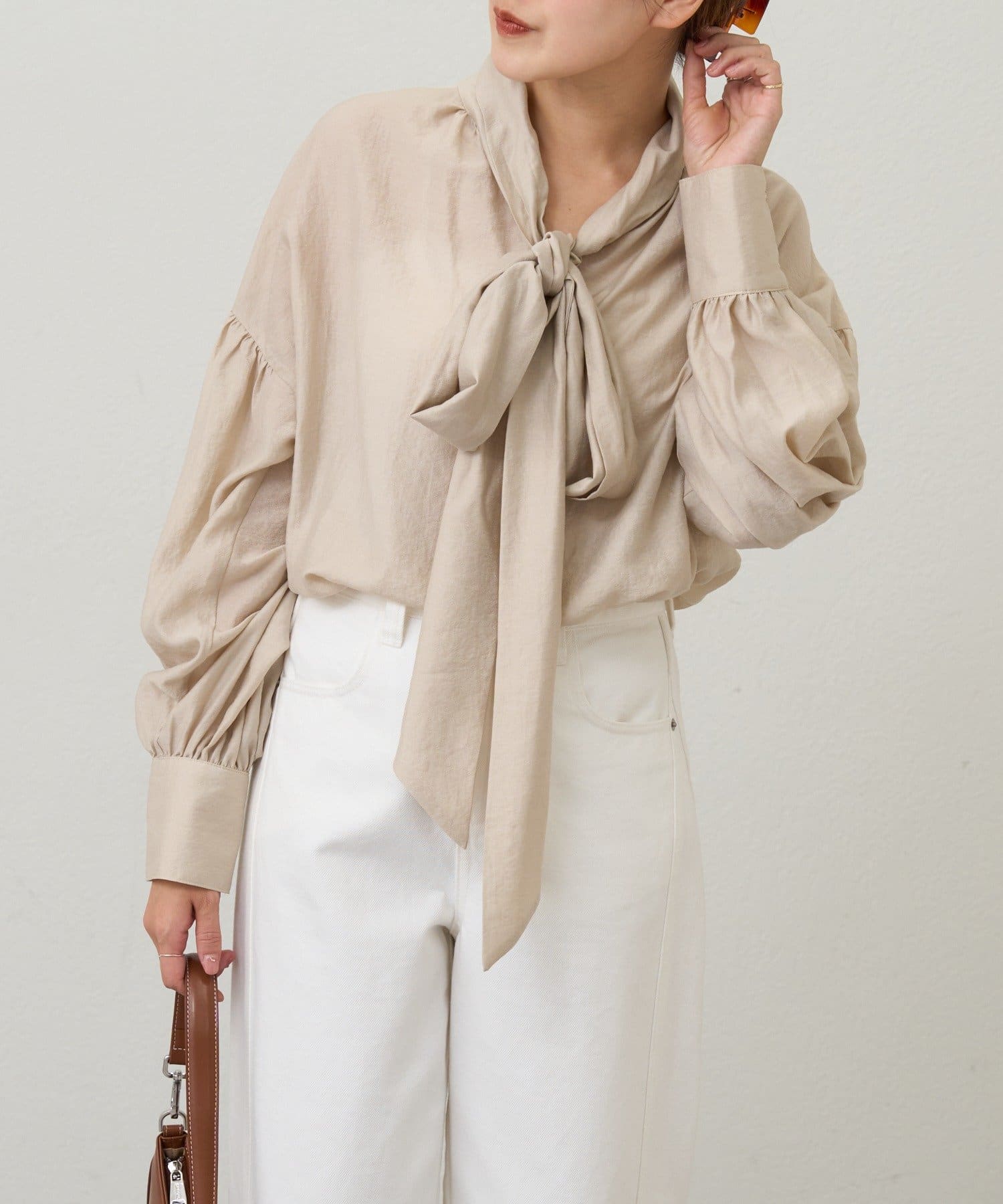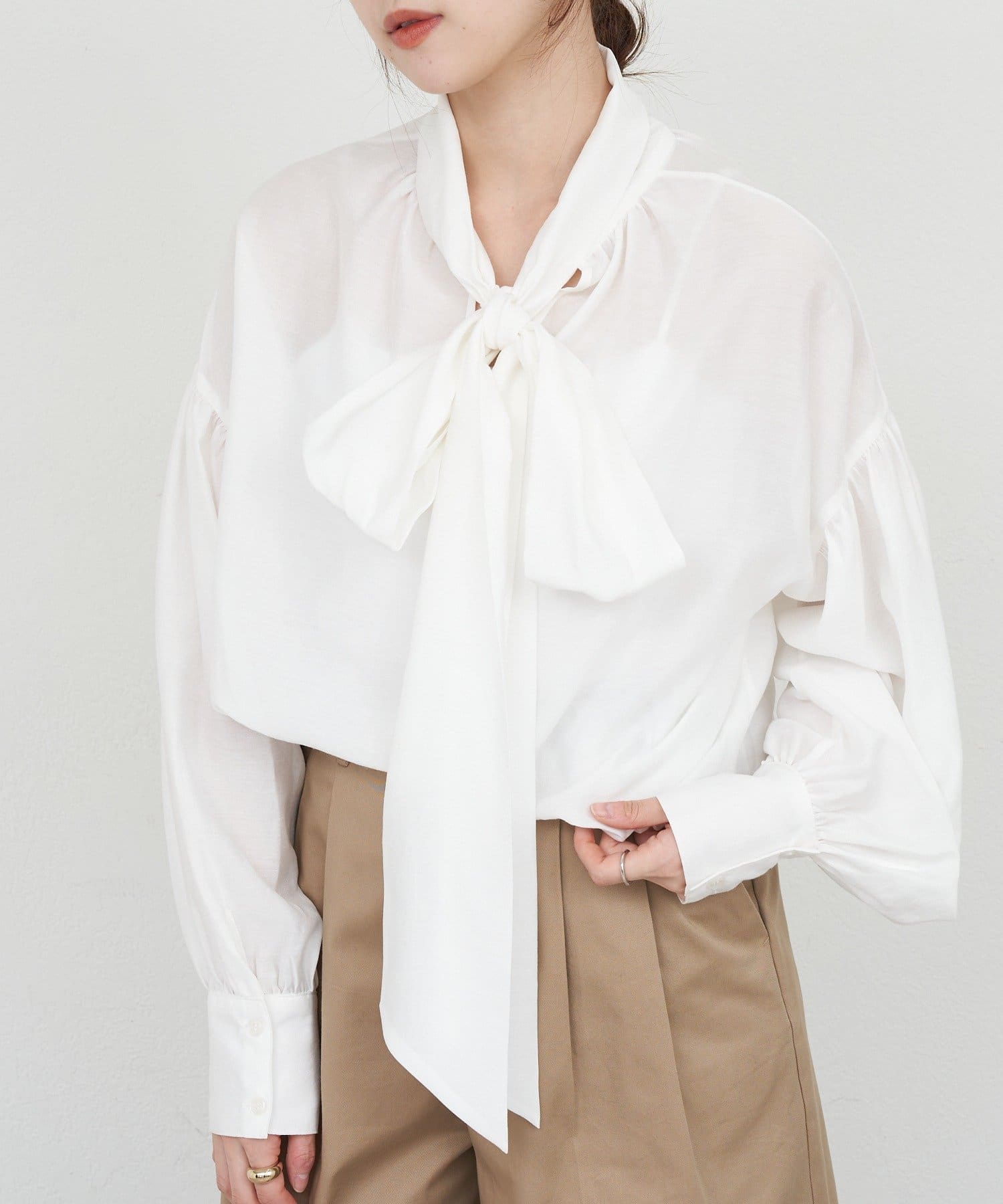 スタイリングの主役になるボウタイシャツ。
