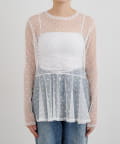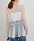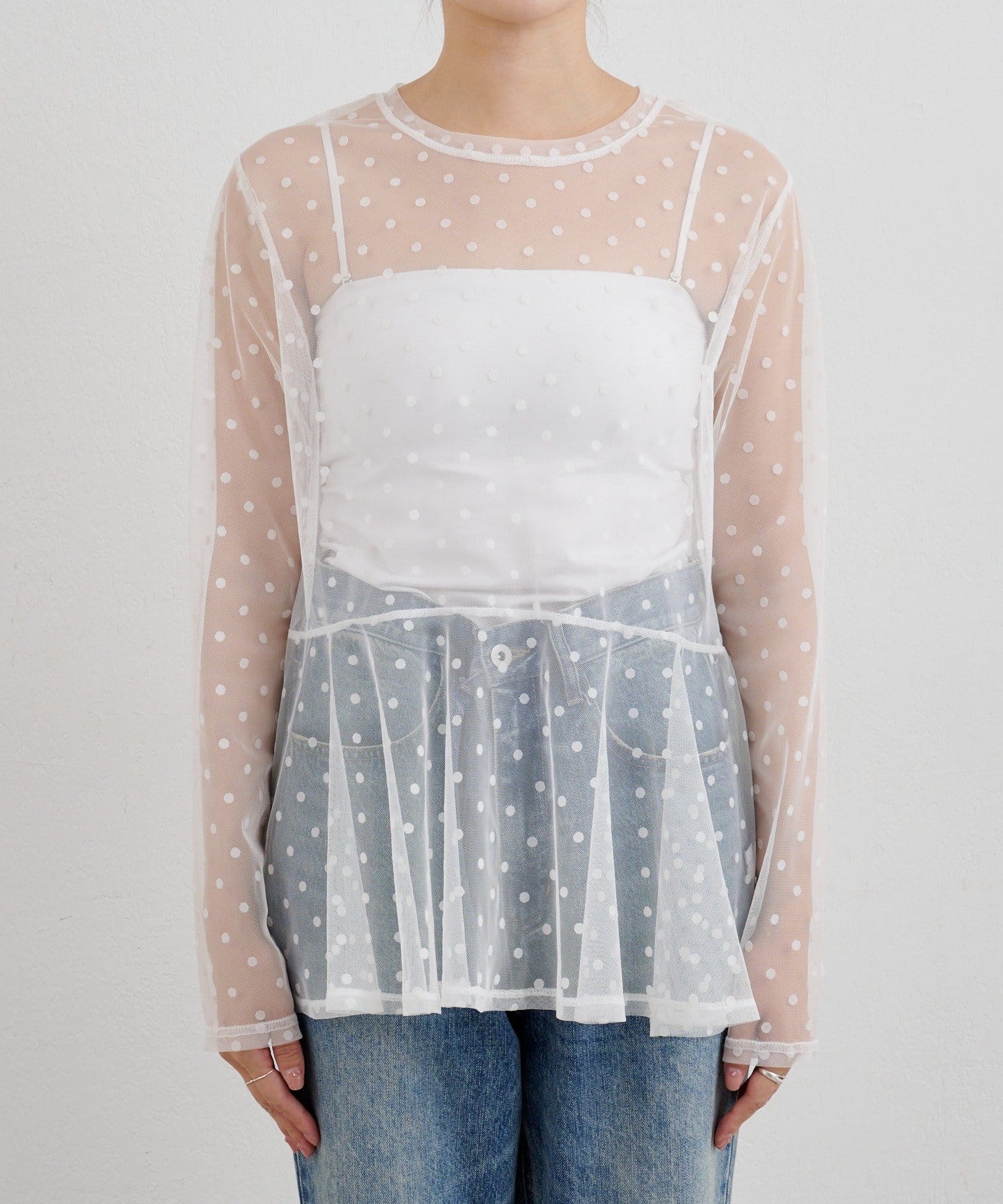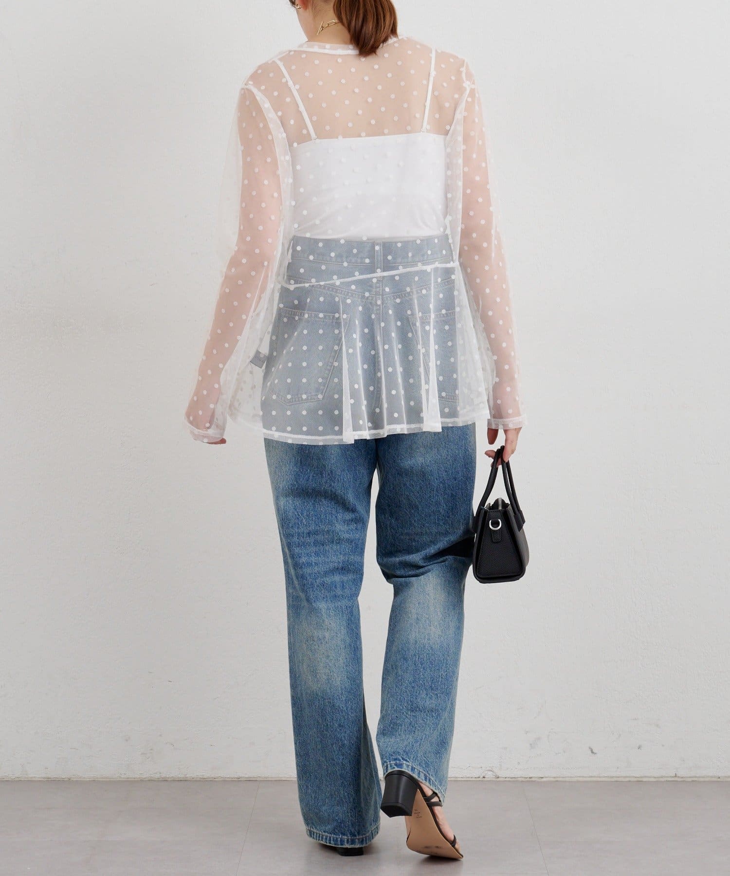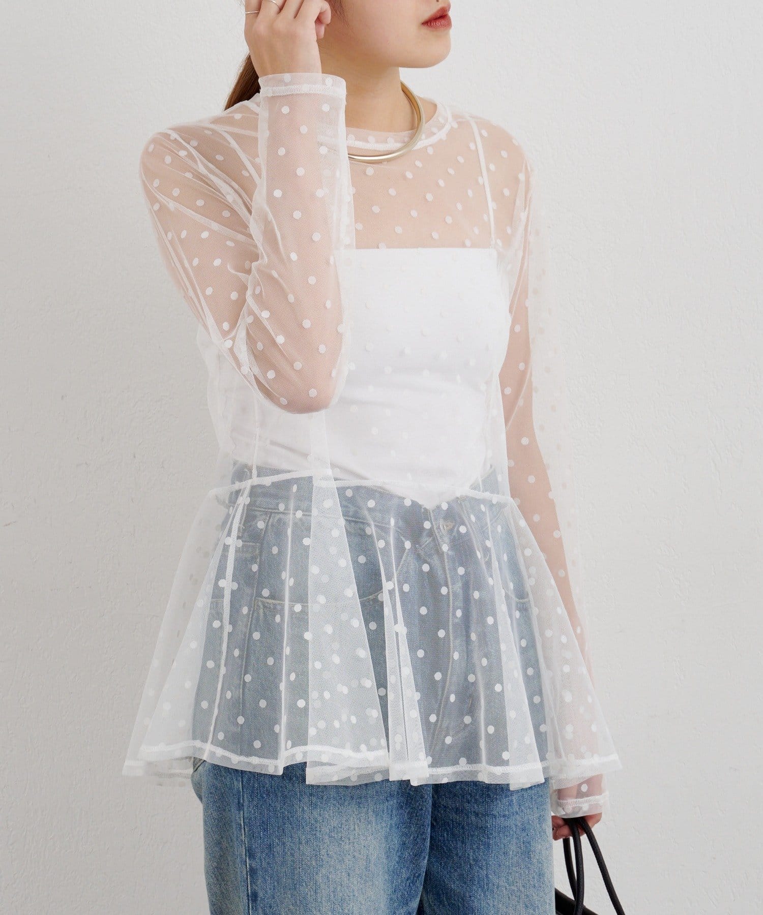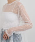 透け感のあるチュール素材にドットのフロッキープリントを施したブラウス。