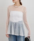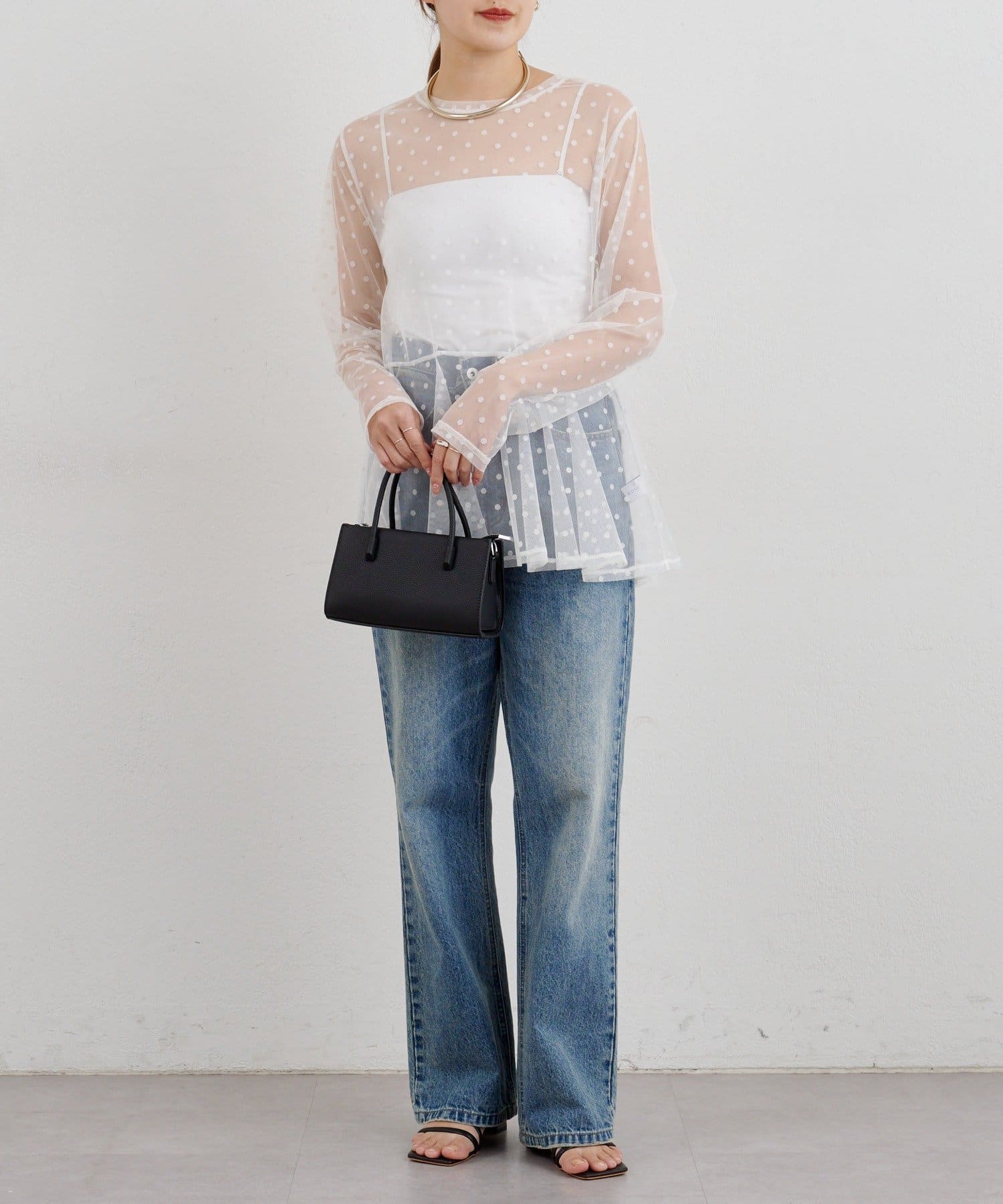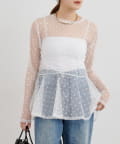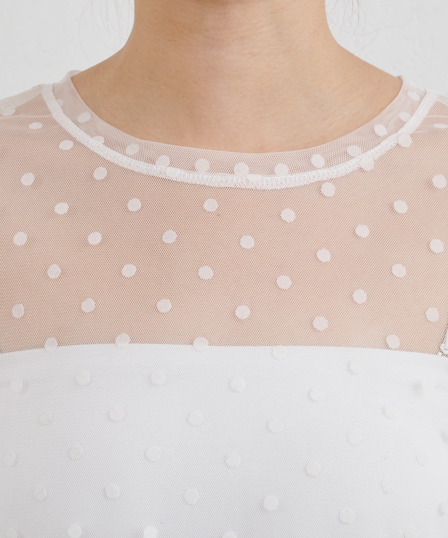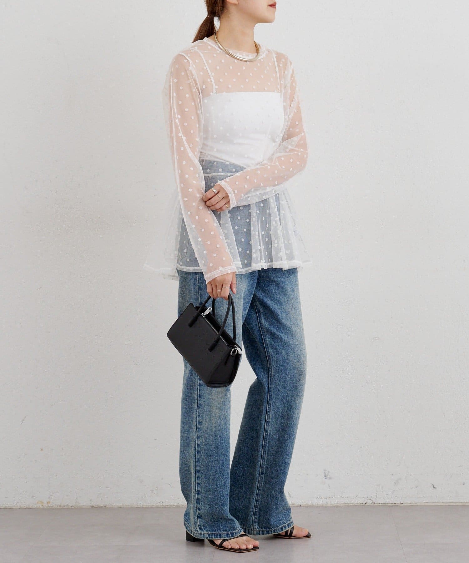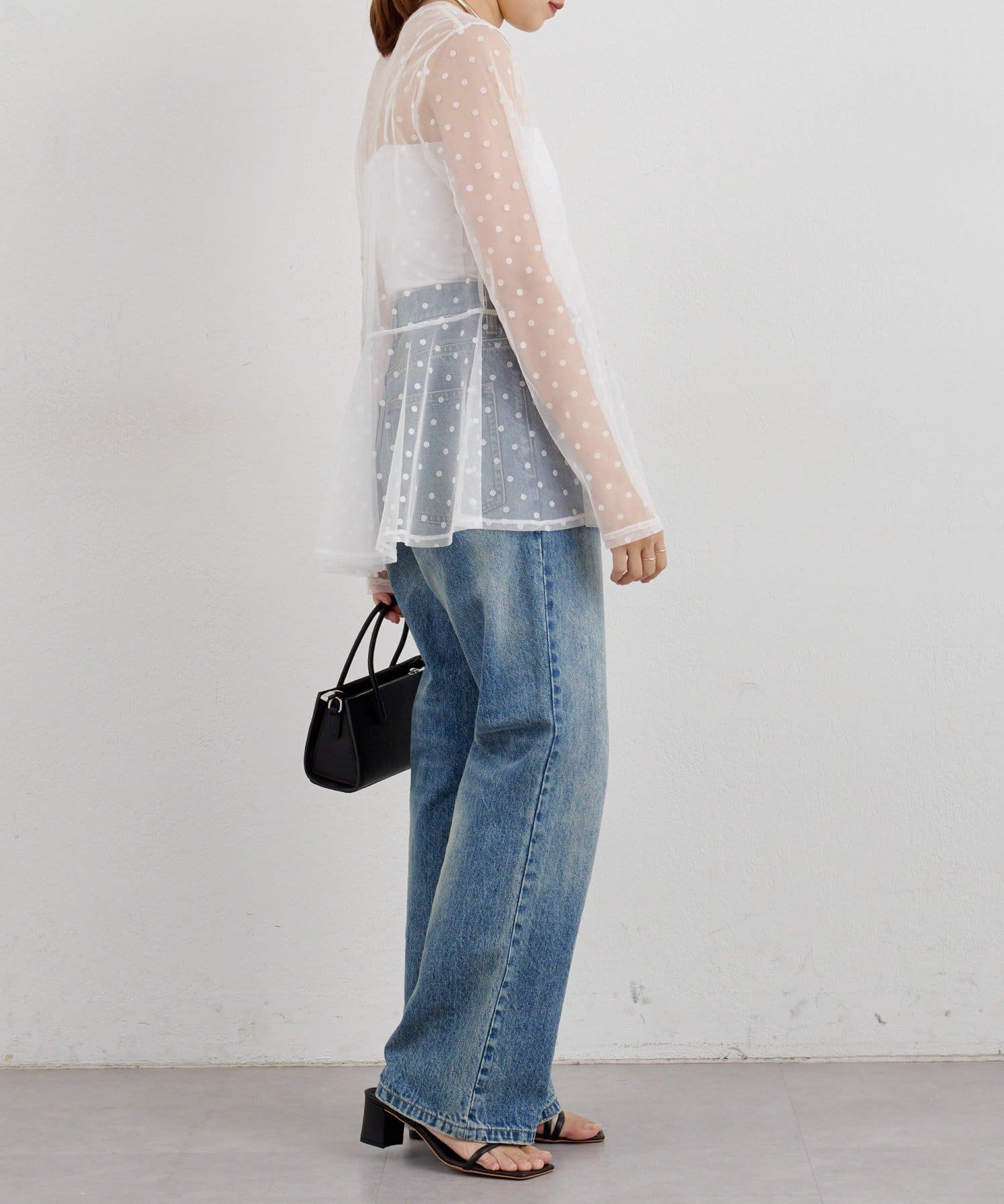 透け感のあるチュール素材にドットのフロッキープリントを施したブラウス。