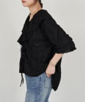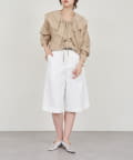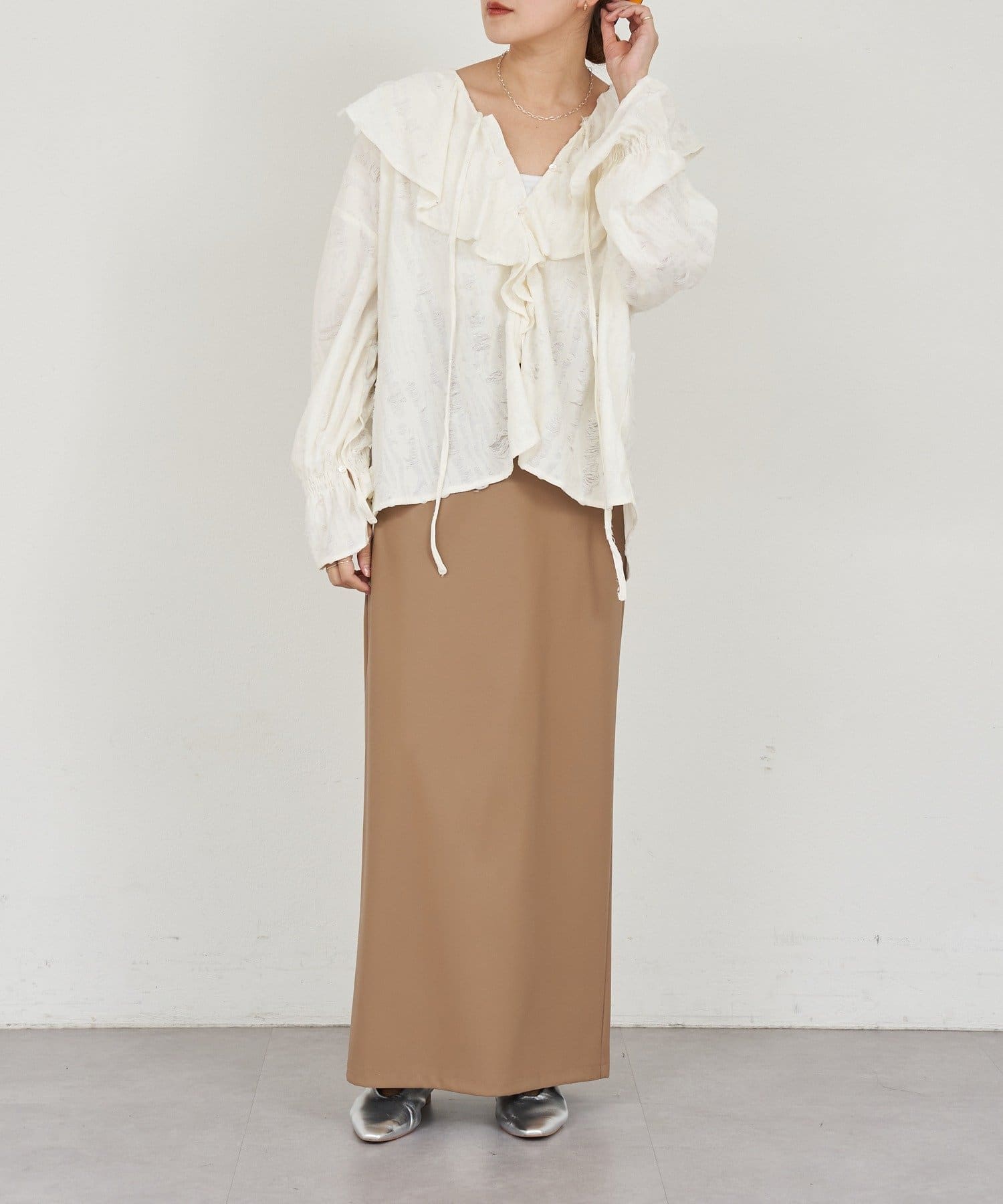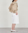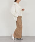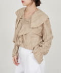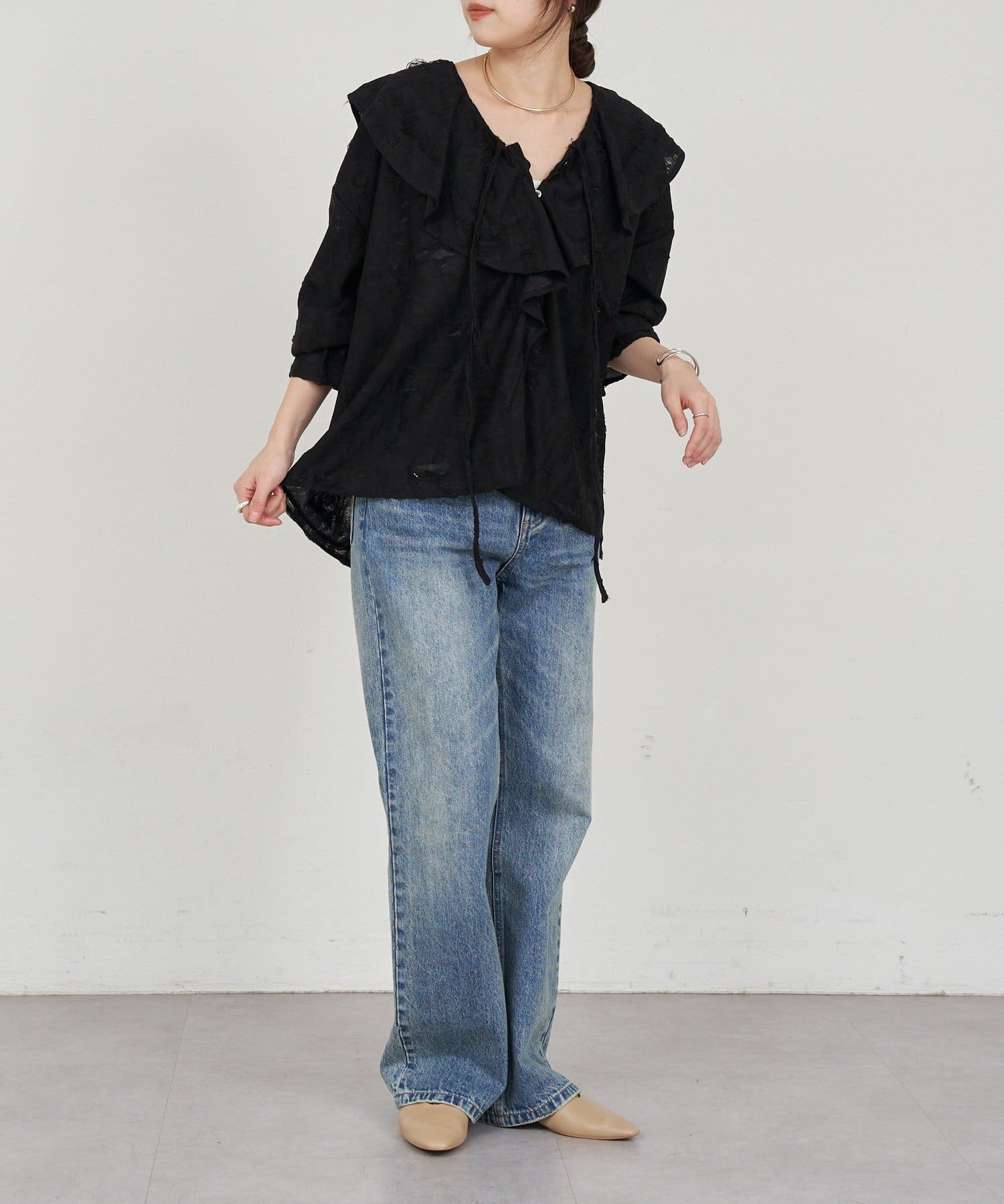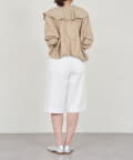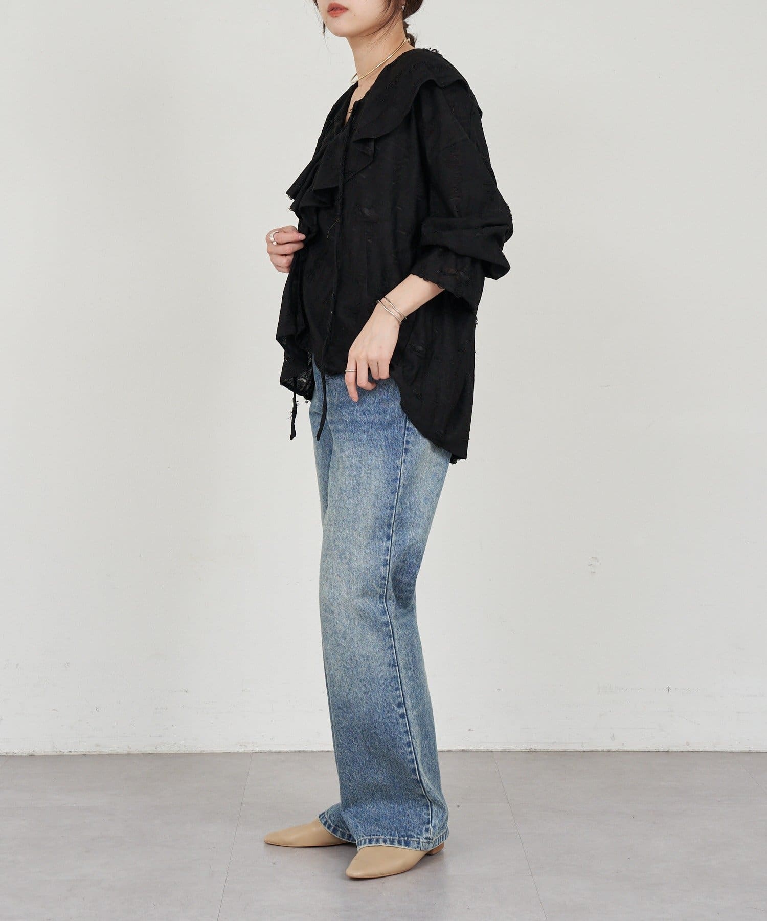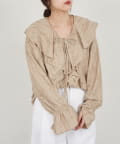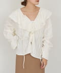 トレンドライクなビッグカラーとフリルの組み合わせが、クラシカルで大人可愛い印象を与える一枚。