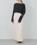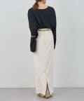 スリット入りの裾をラウンドさせたシルエットが一枚でもサマになるデザイン。