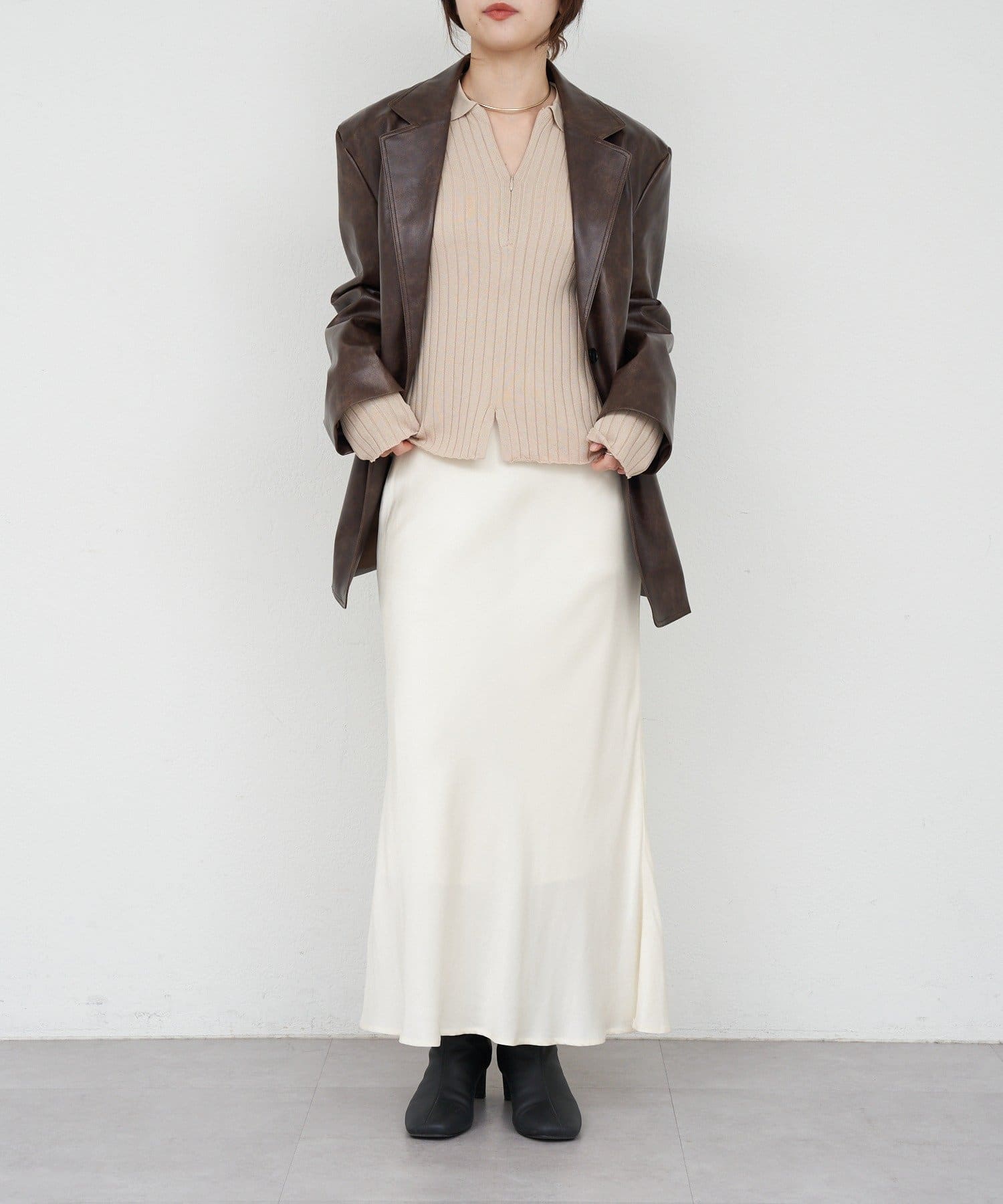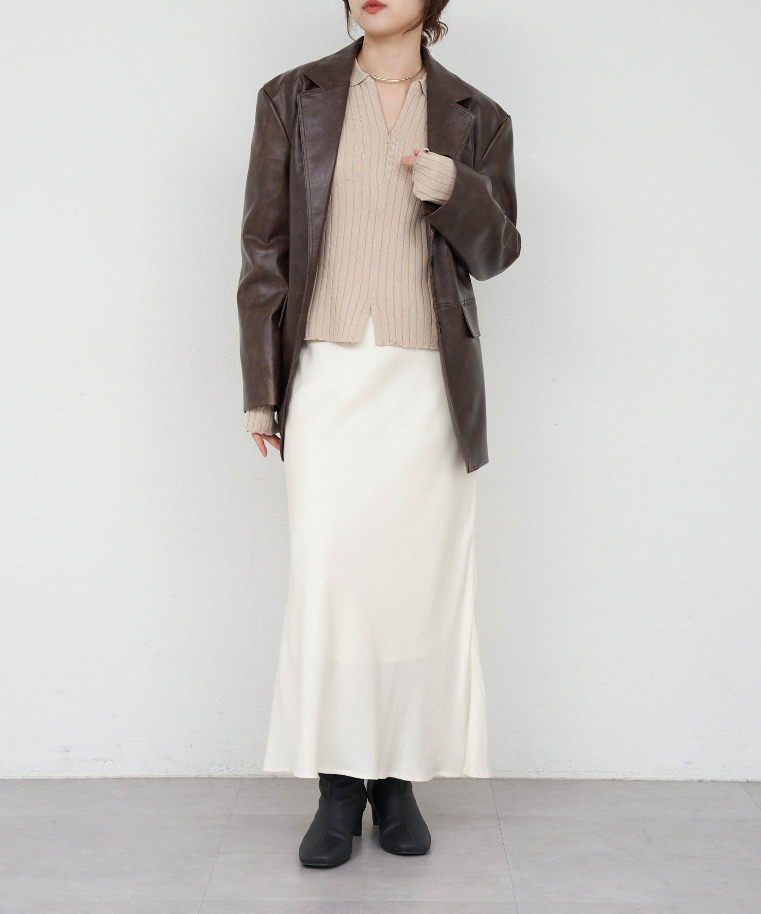 レザーテーラージャケット×ニュアンスマーメイドスカート