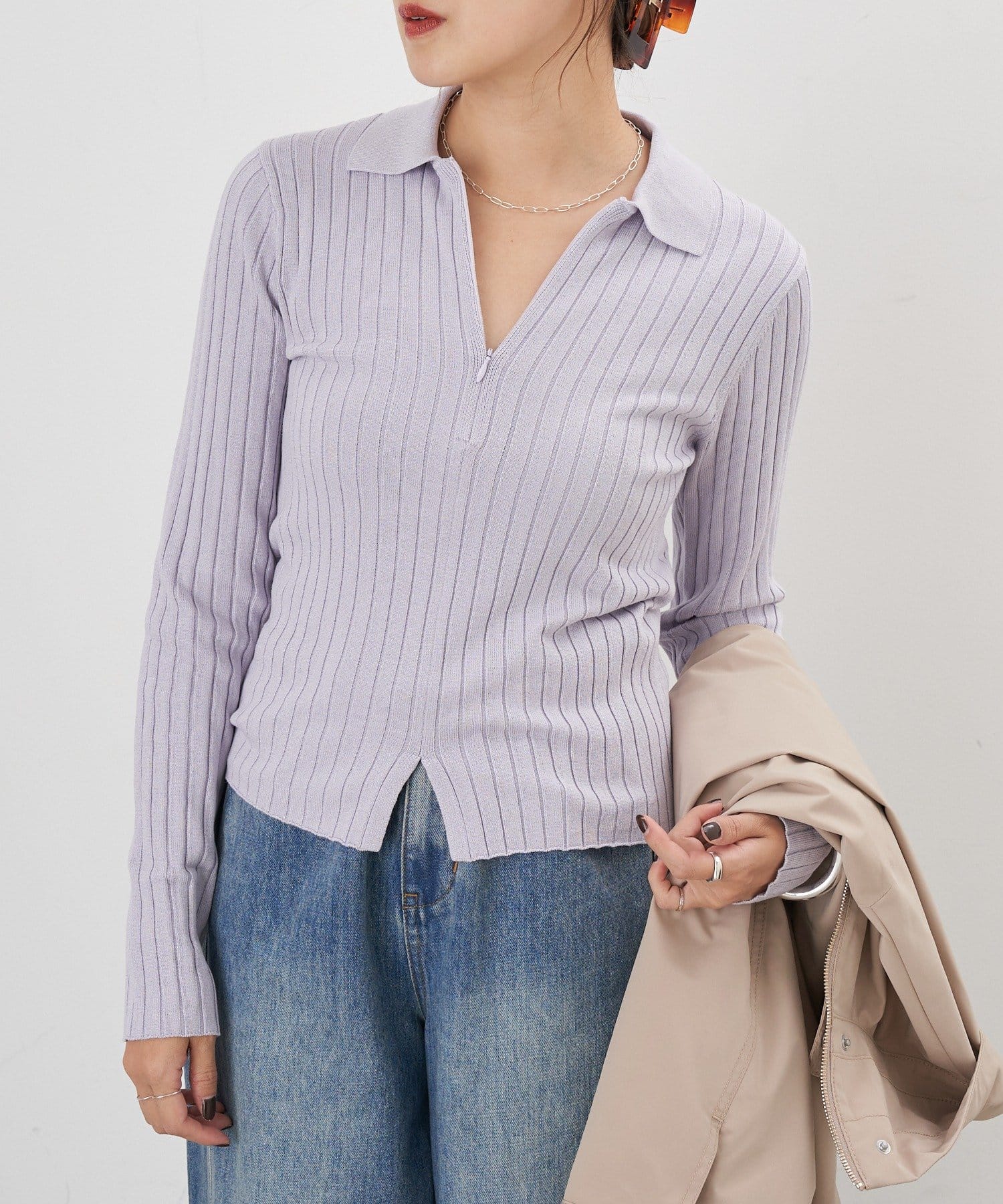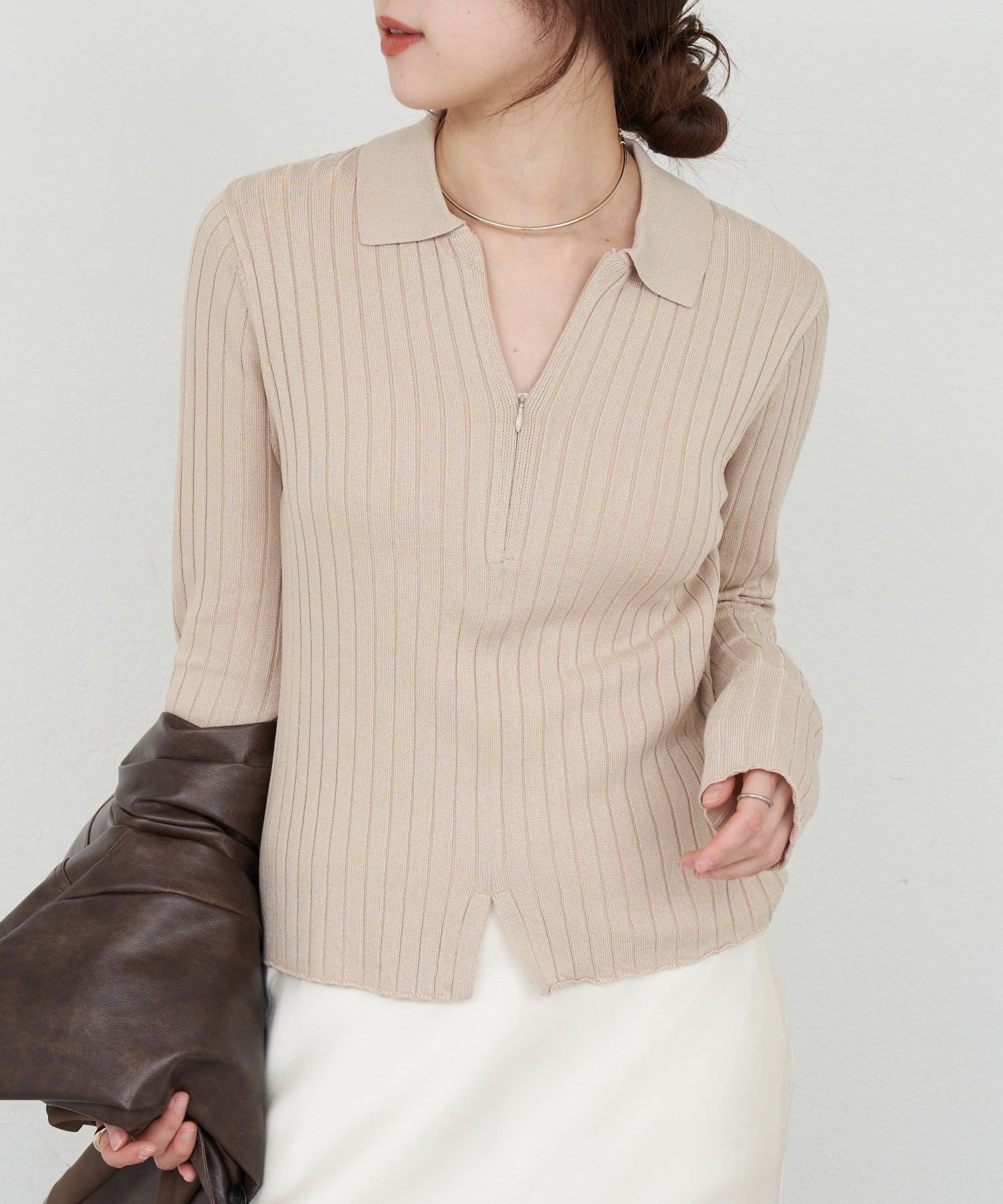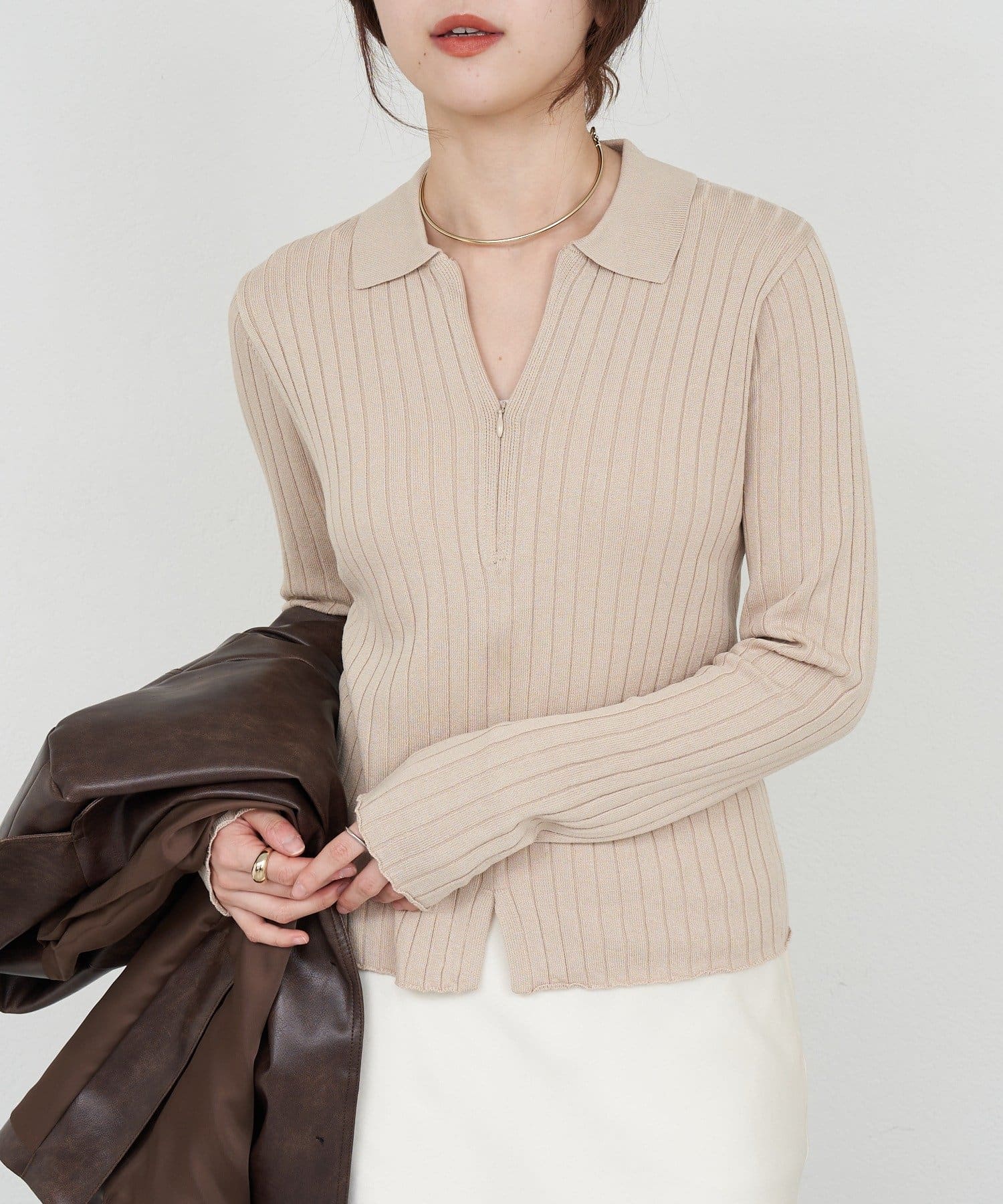 TOP > SHENERY > レディース > トップス > ニット/セーター > 【26SS予約】ハーフジップリブニット