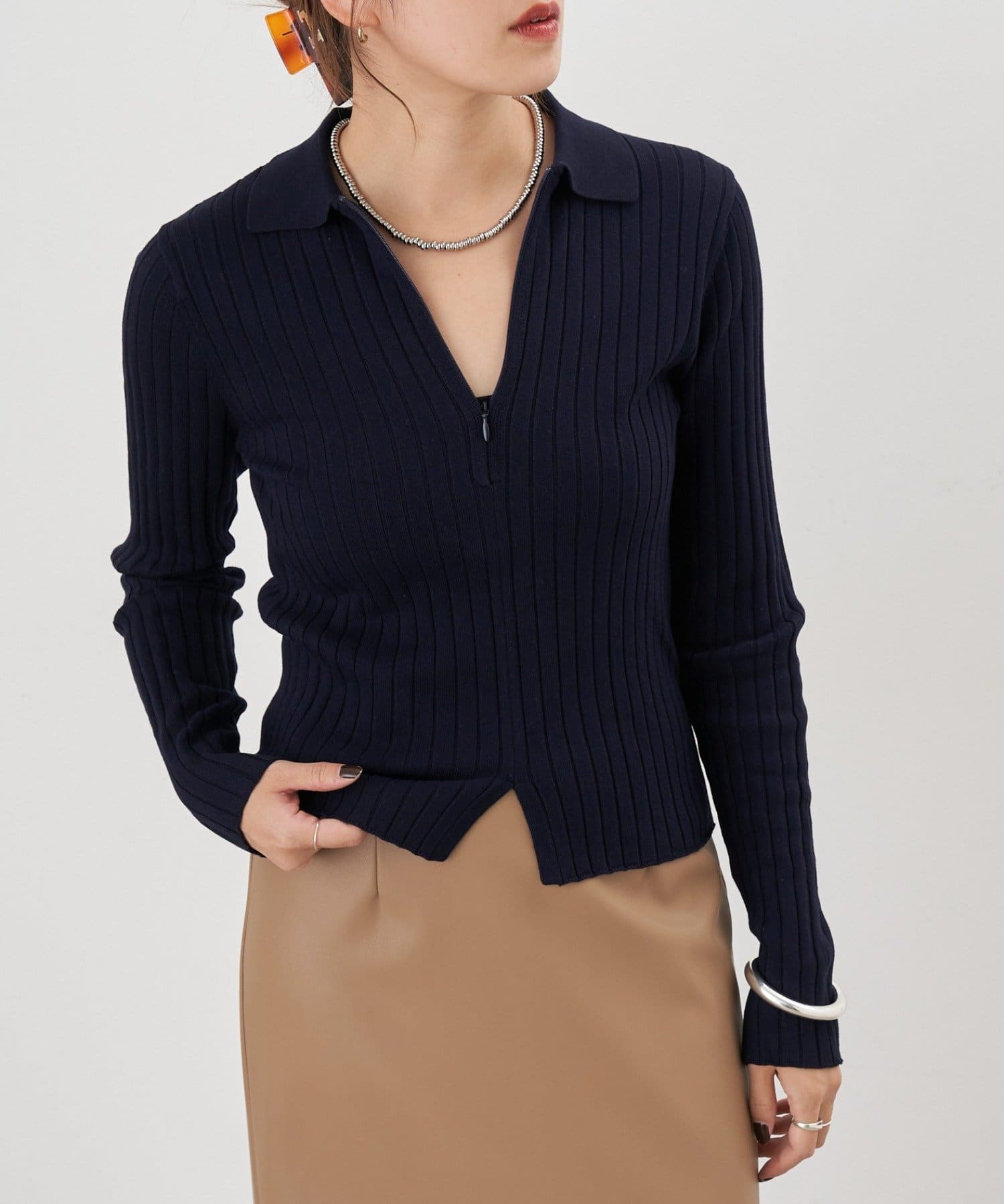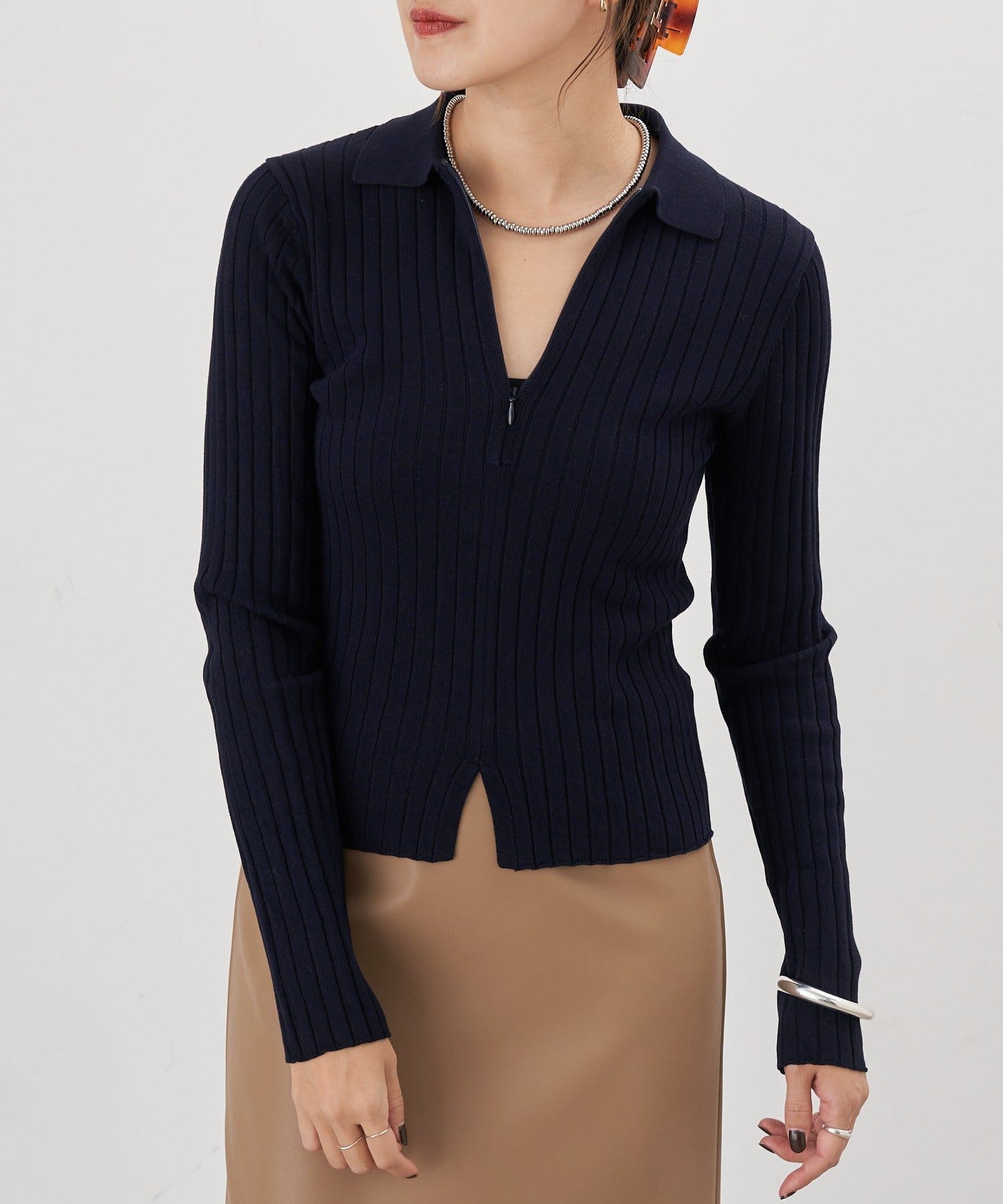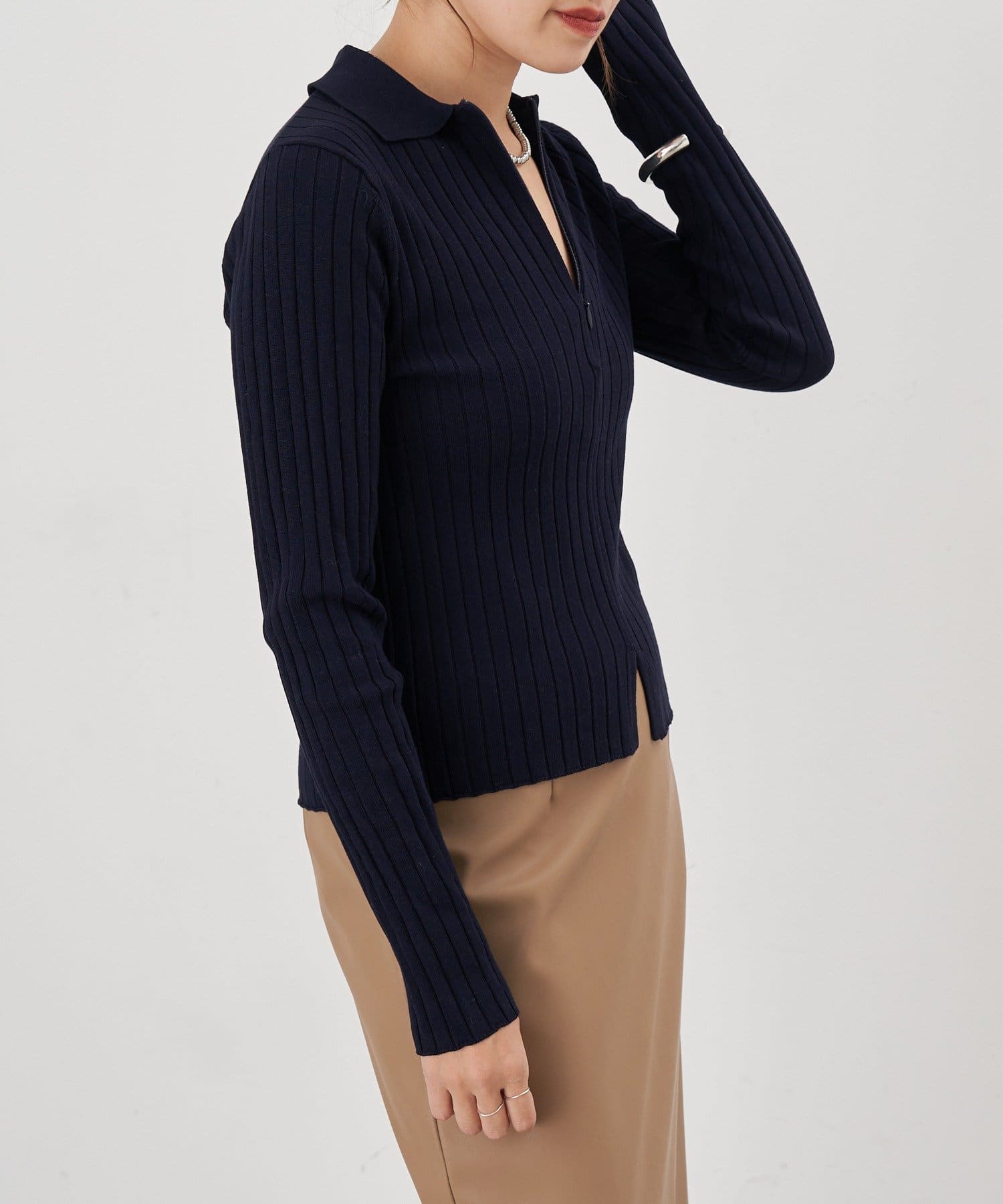 TOP > SHENERY > レディース > トップス > ニット/セーター > 【26SS予約】ハーフジップリブニット
