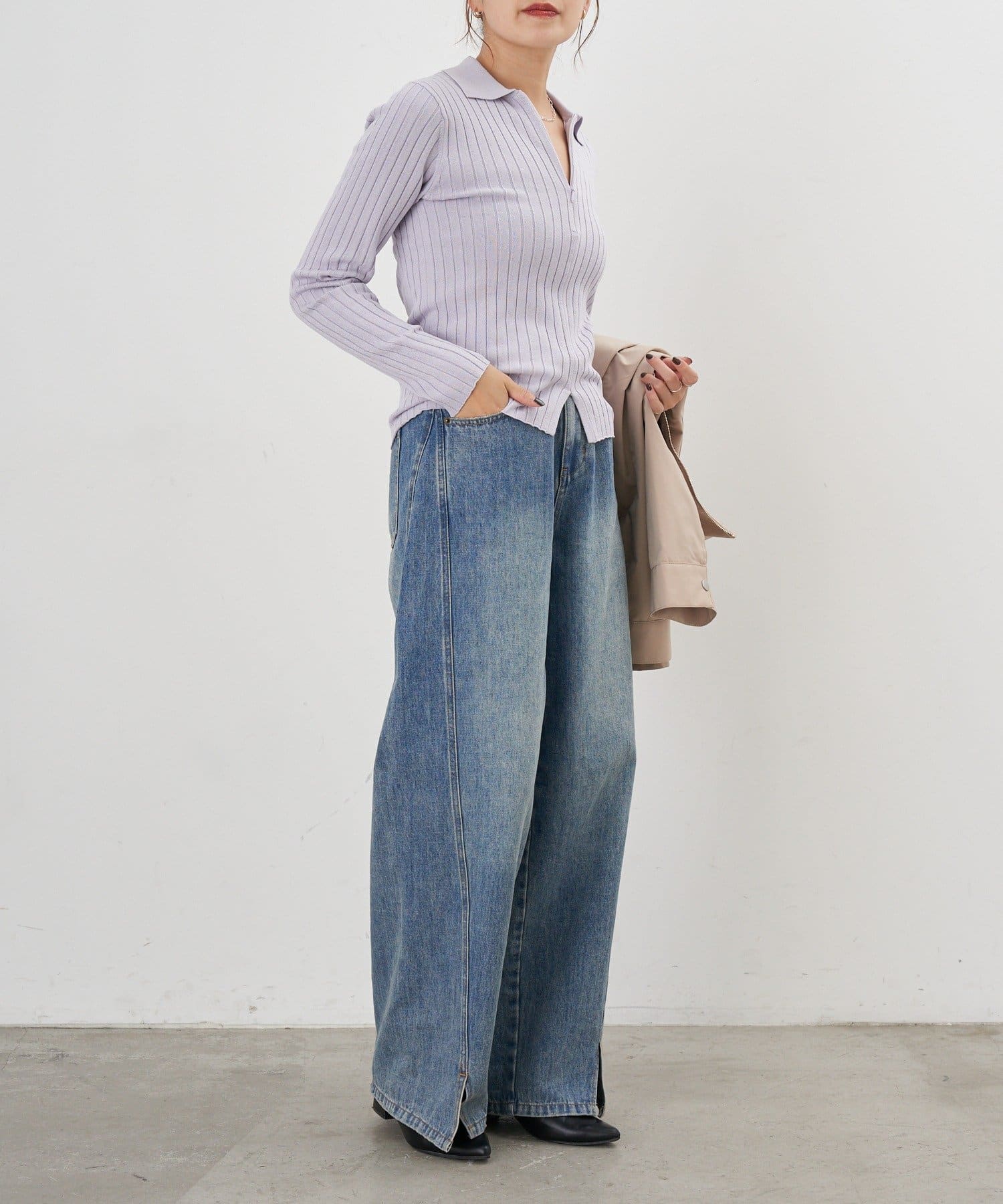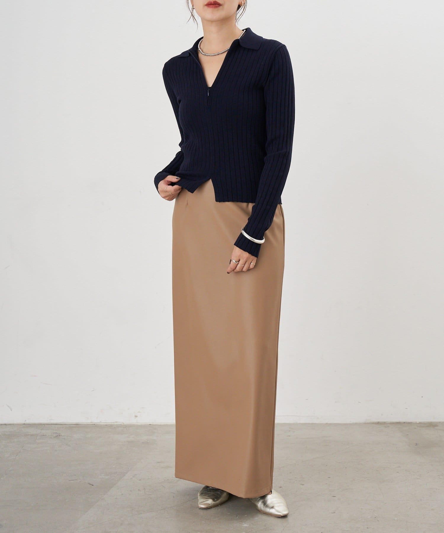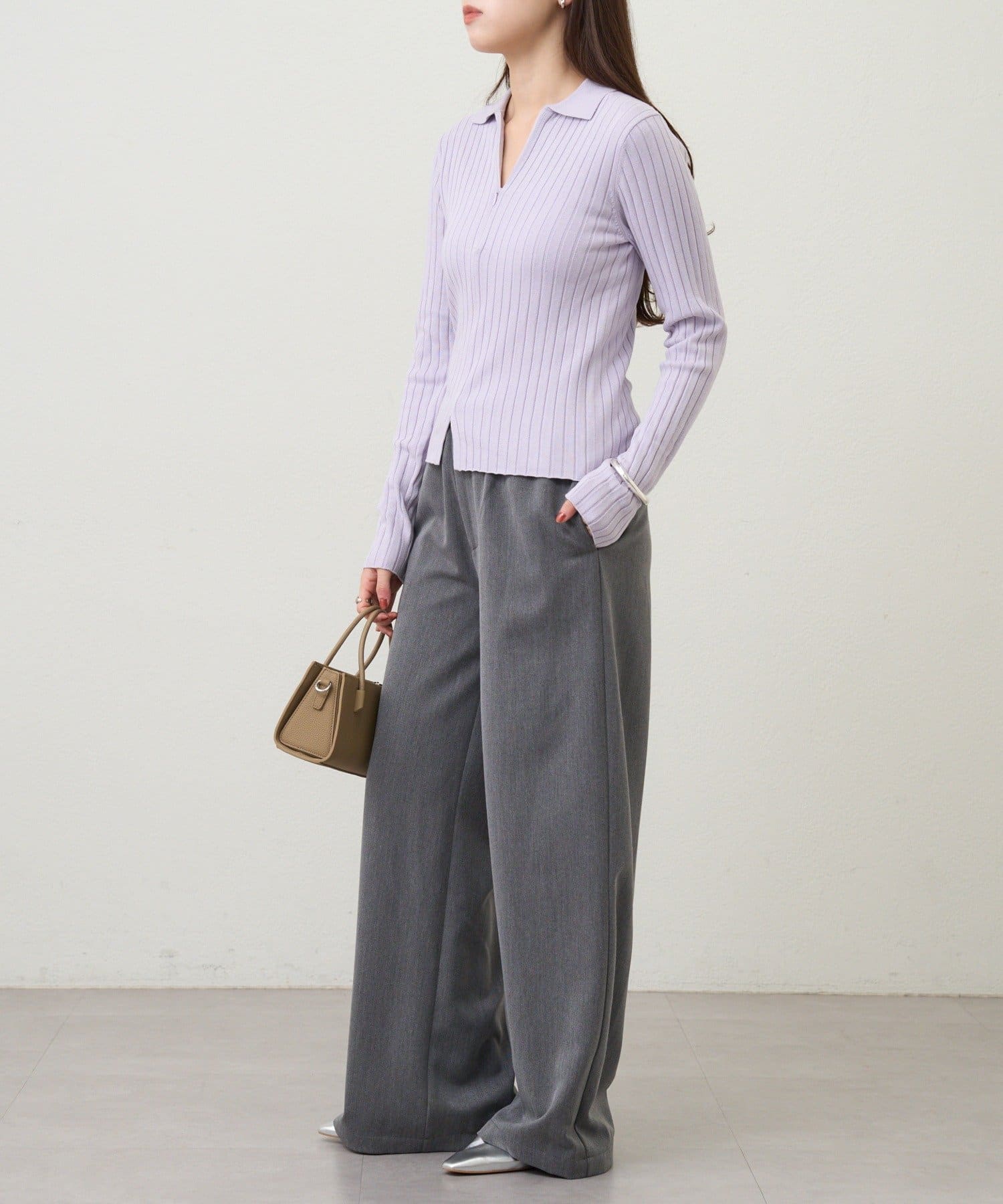 ・リブ素材ですっきりしたシルエットなのでスタイルアップも叶う嬉しい一枚。