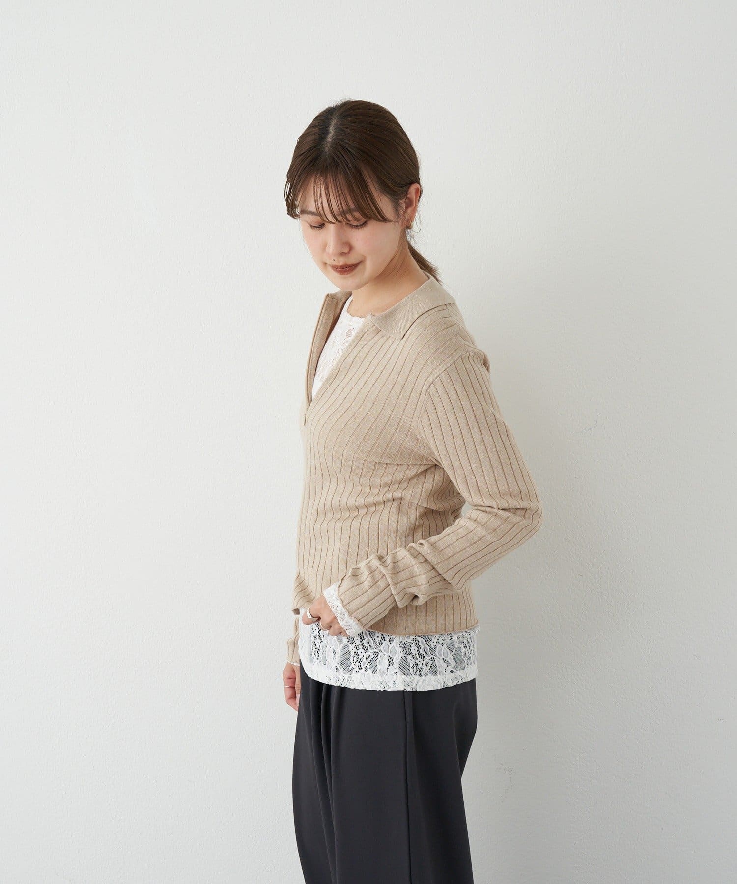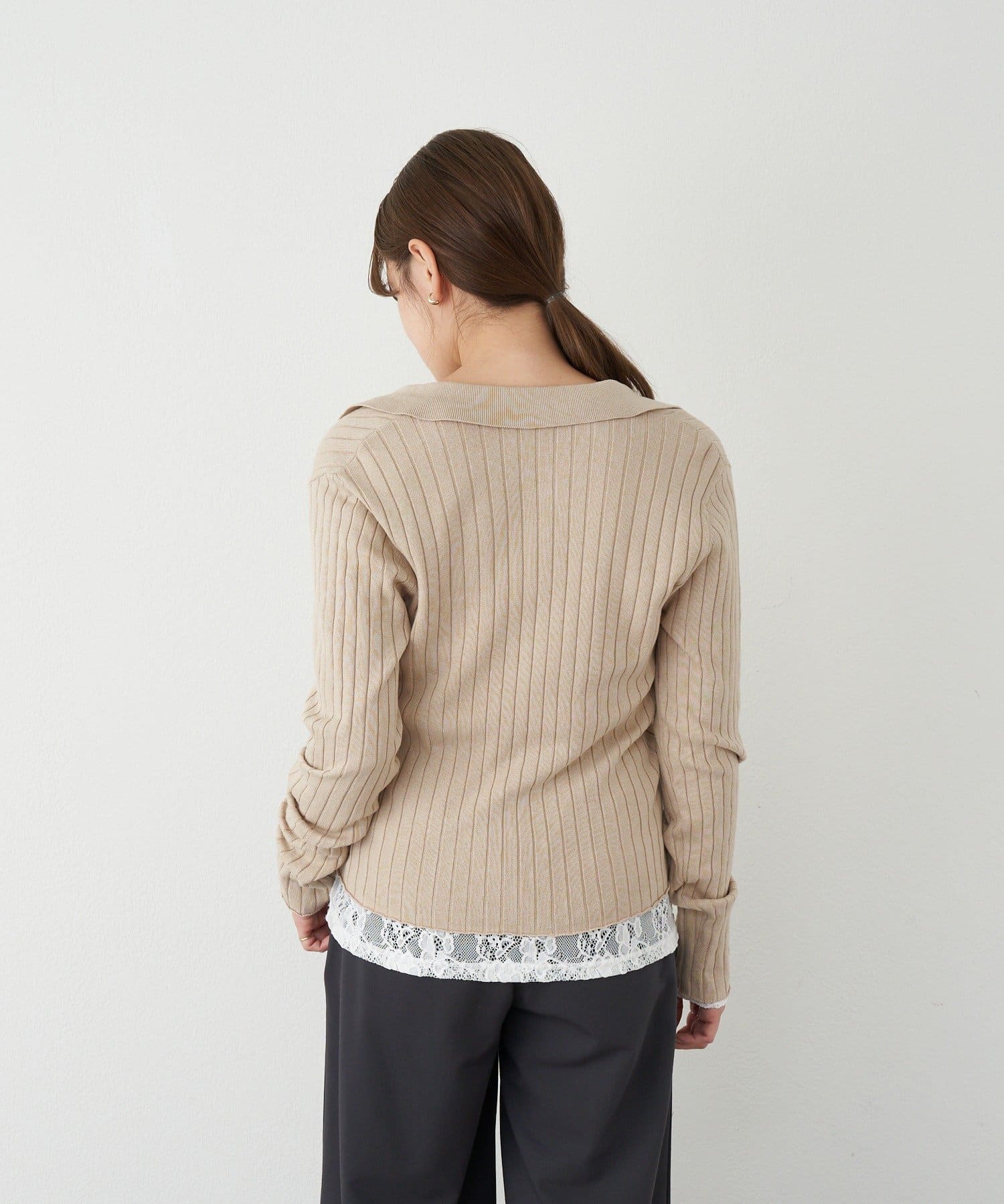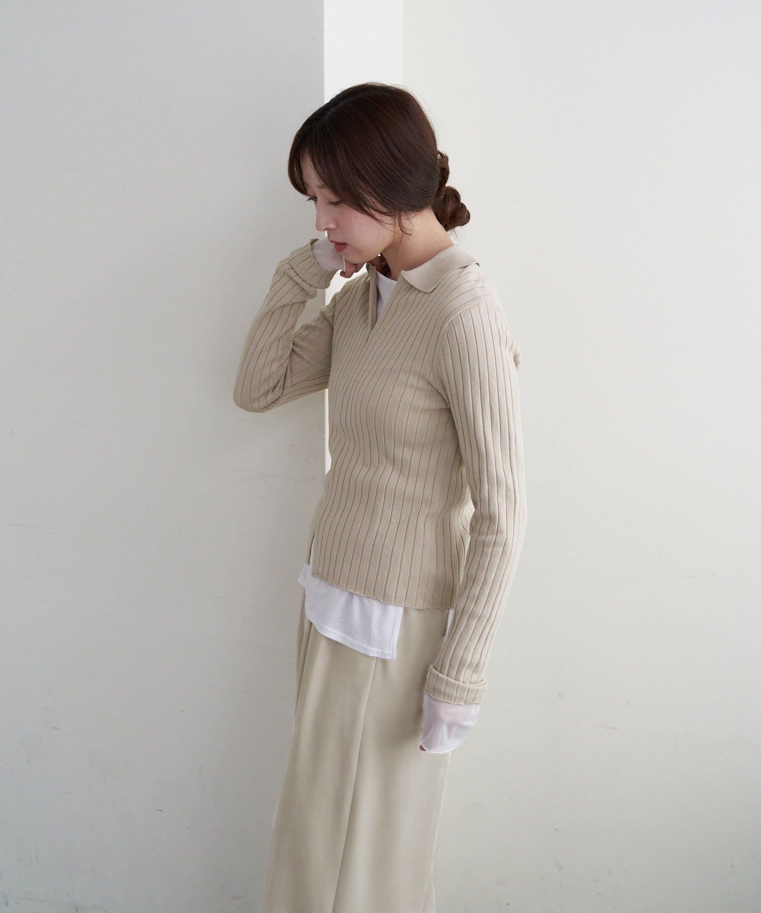 レーヨン素材でニットですがとろみ感などを感じ、チクチクしにくく、素肌にも着ていただきやすいです。