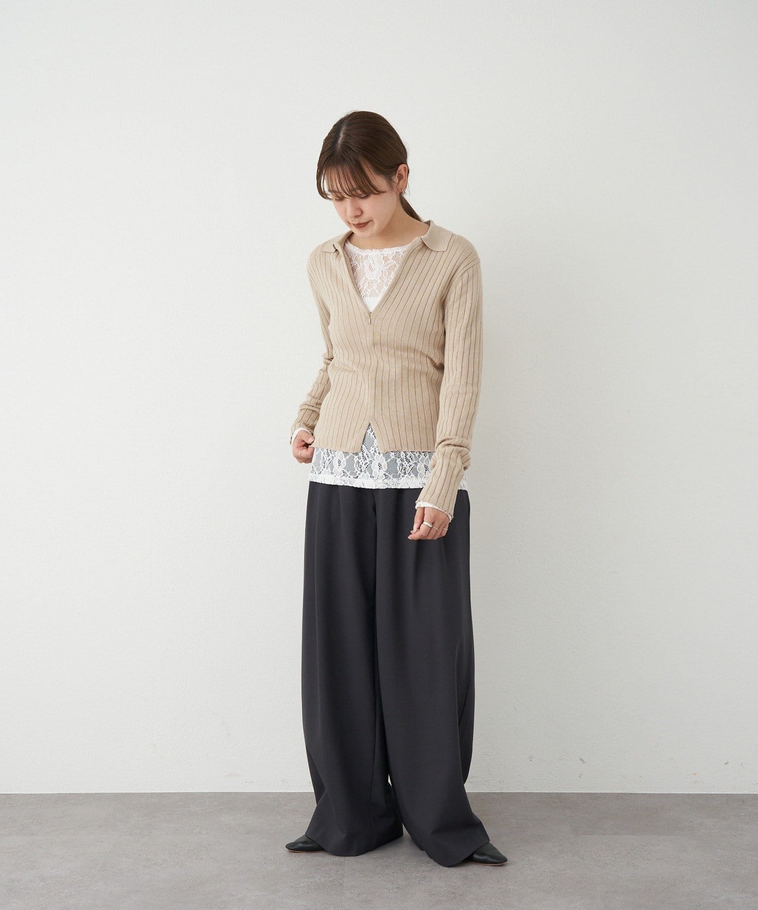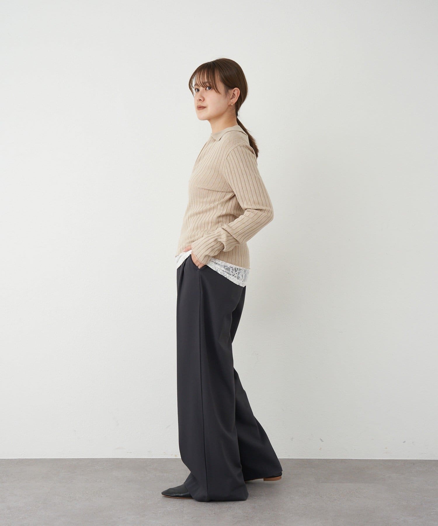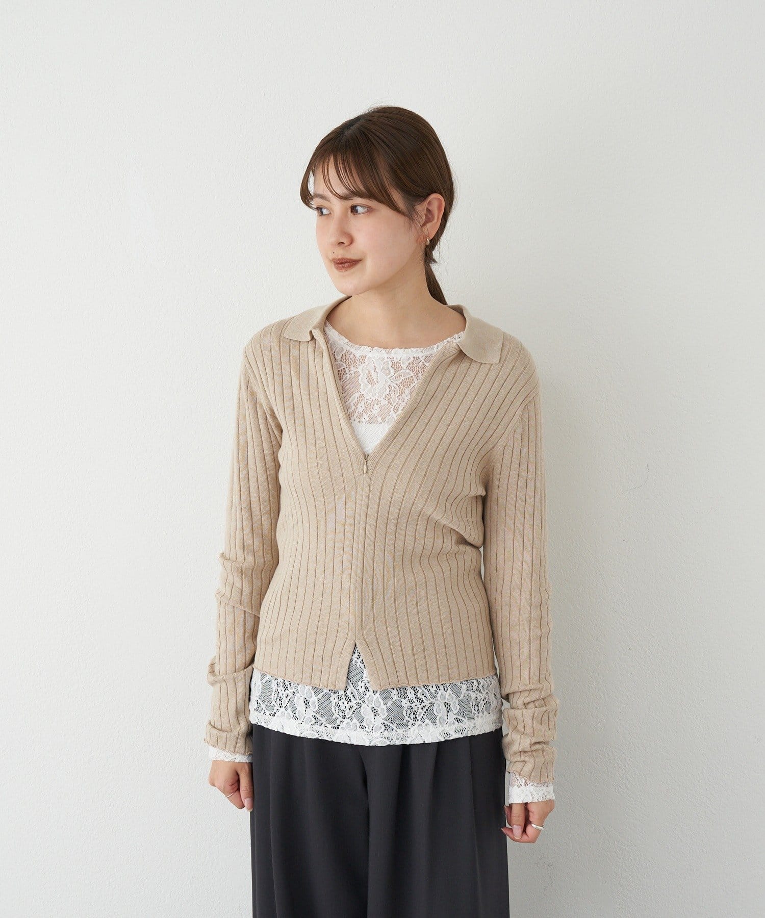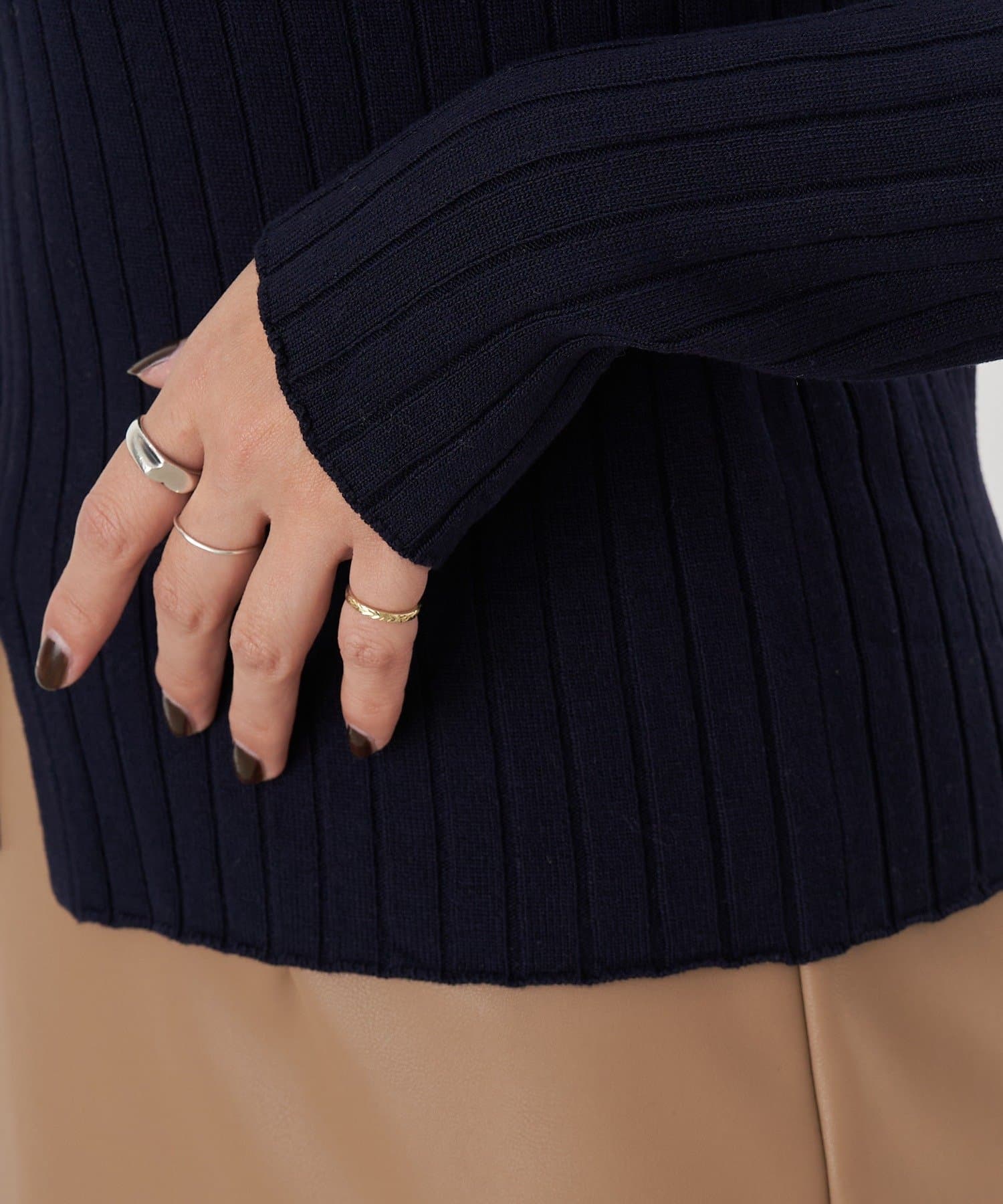 レーヨン素材でニットですがとろみ感などを感じ、チクチクしにくく、素肌にも着ていただきやすいです。