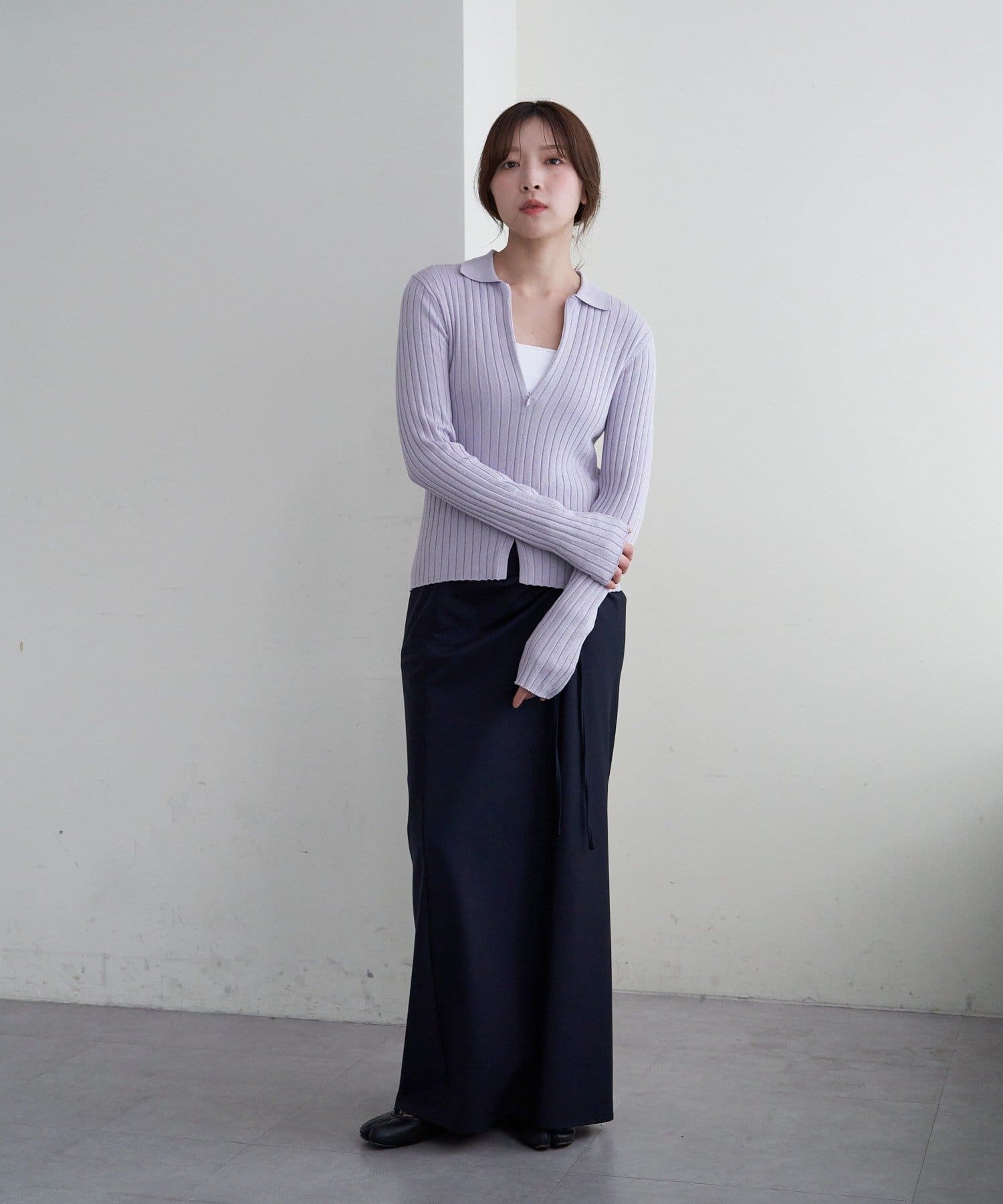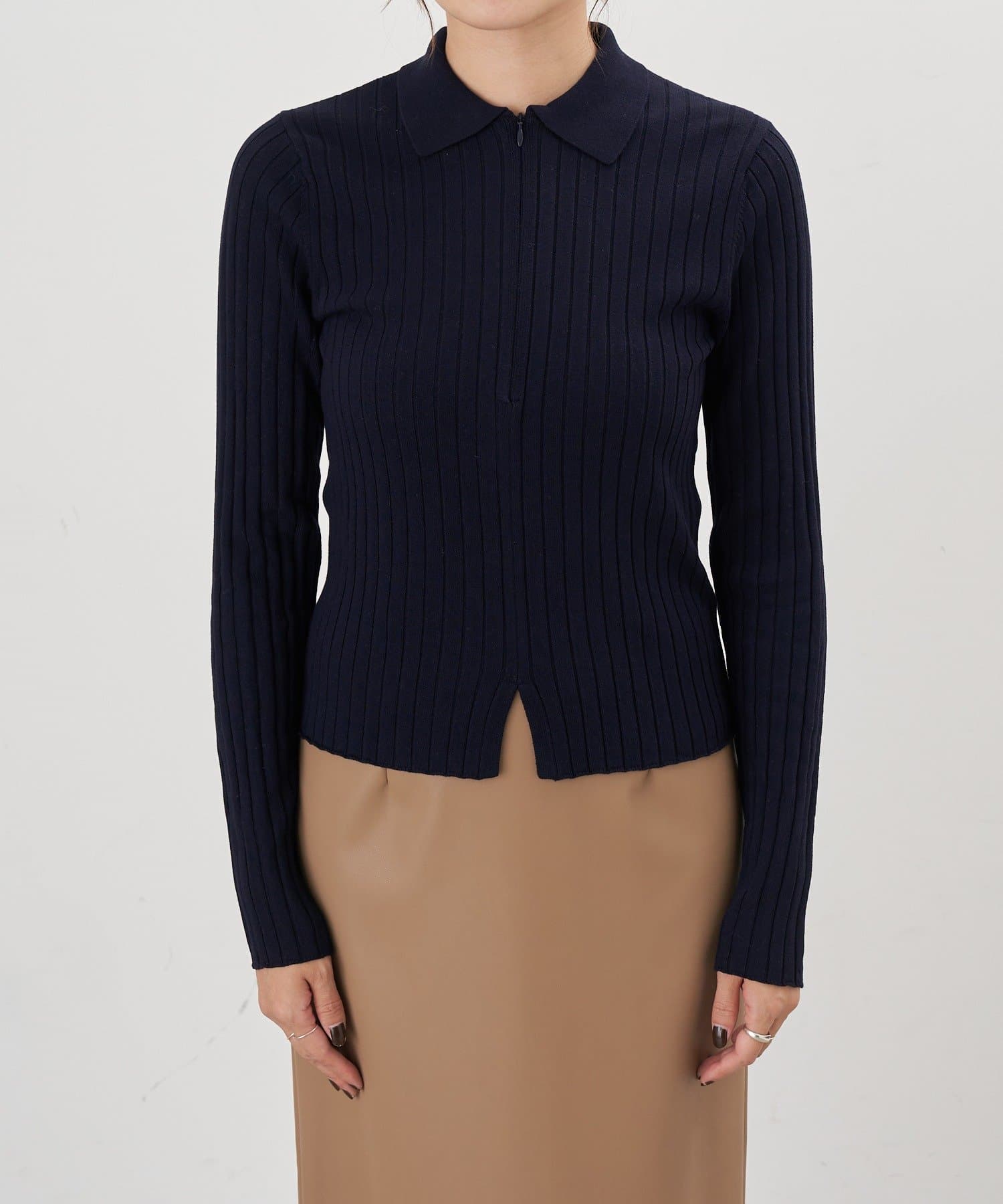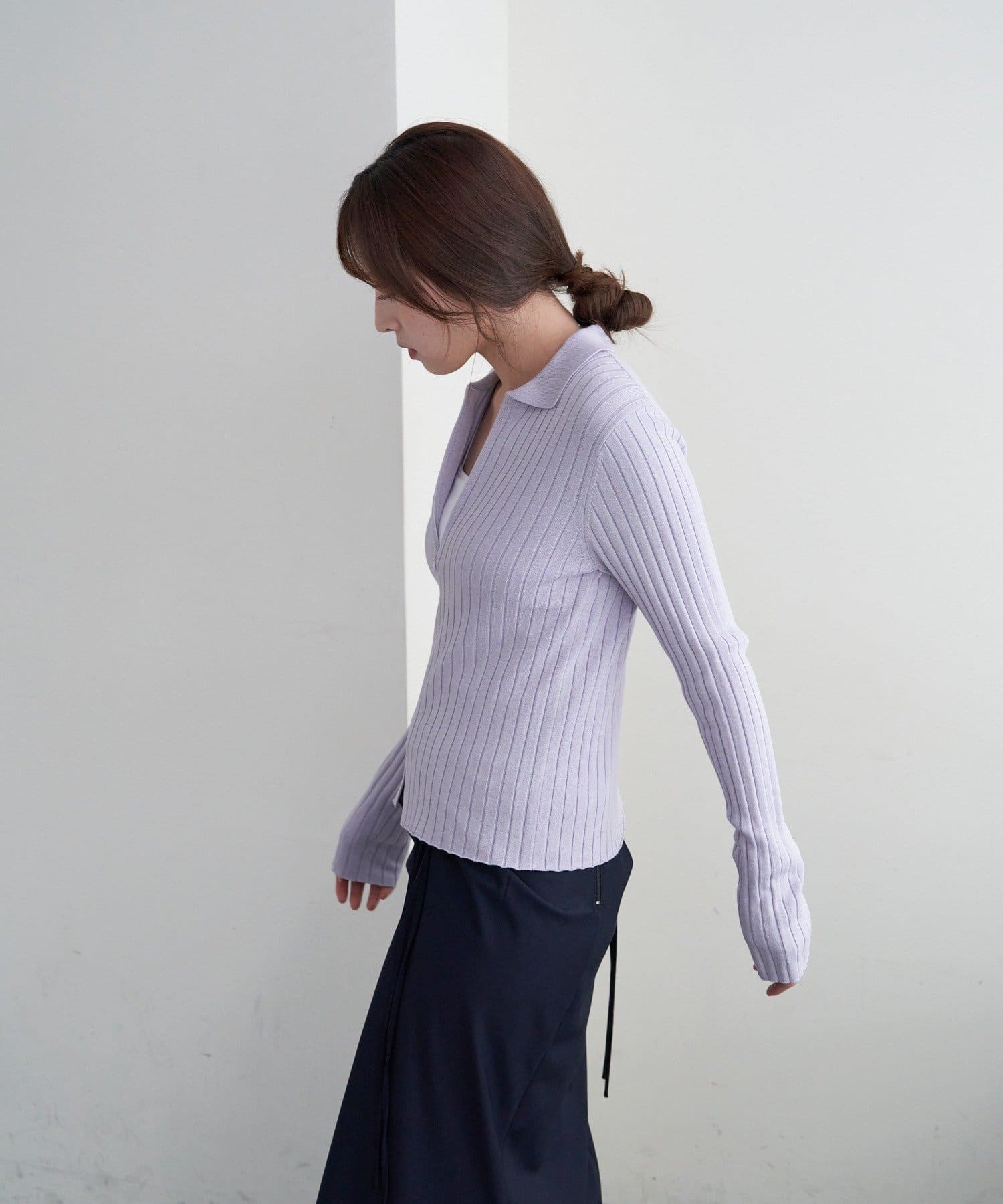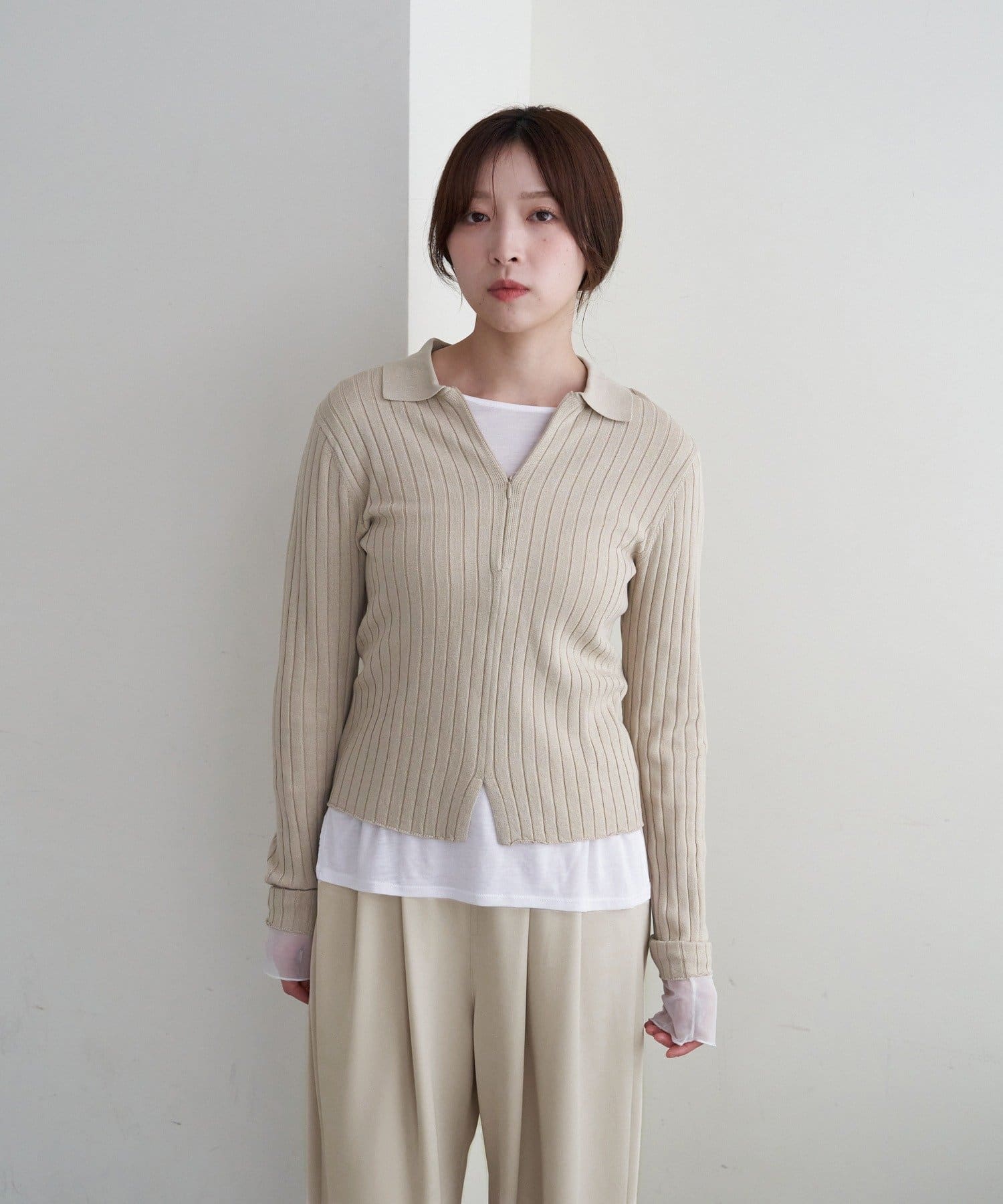 ミニマルな形ですが、小さい襟や、リブをつけており