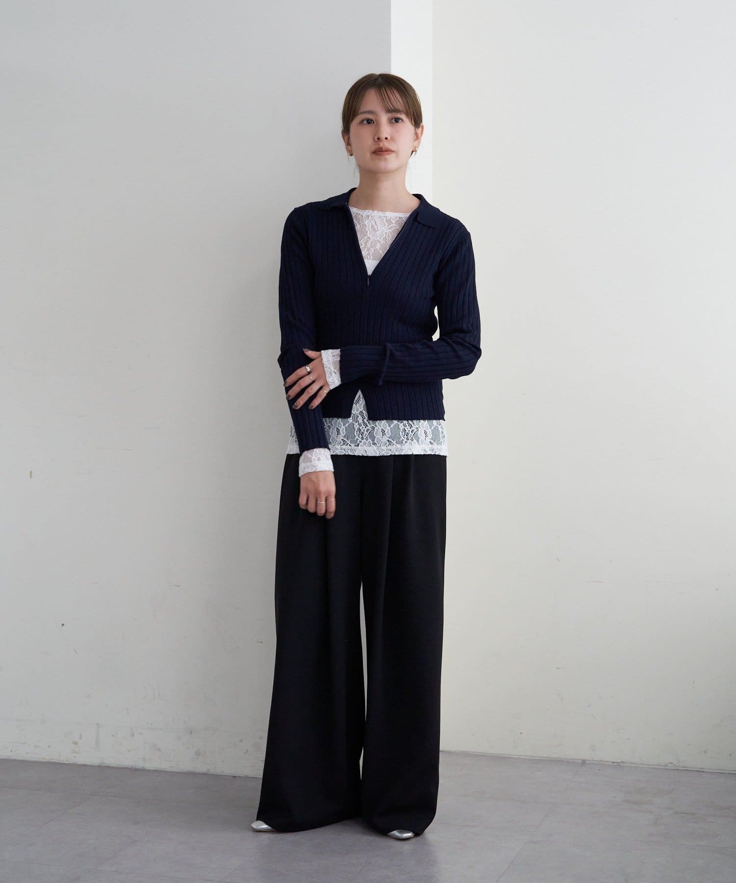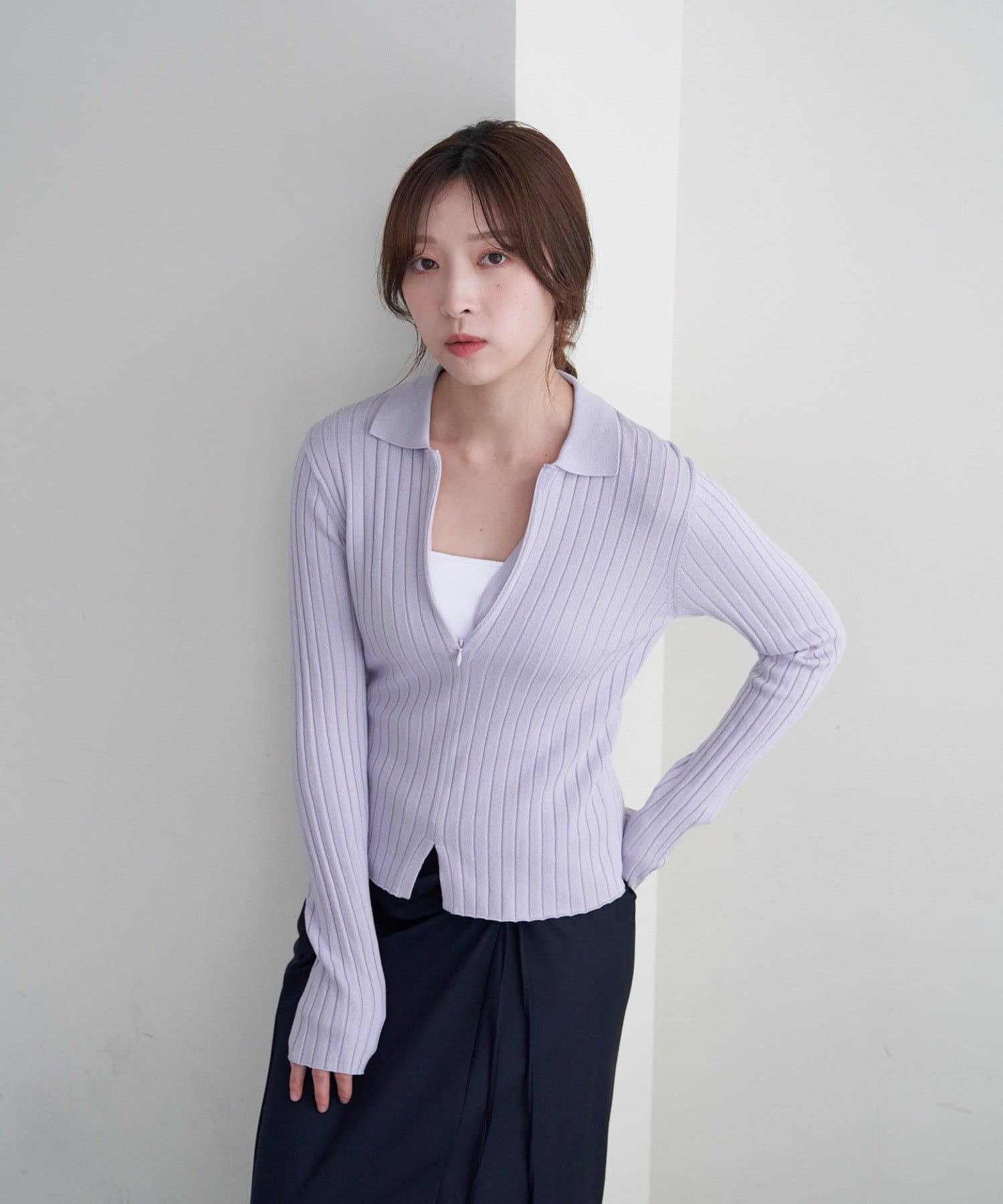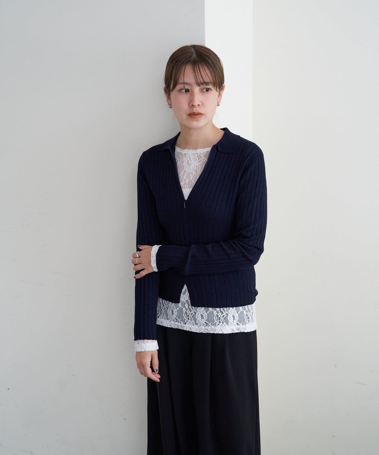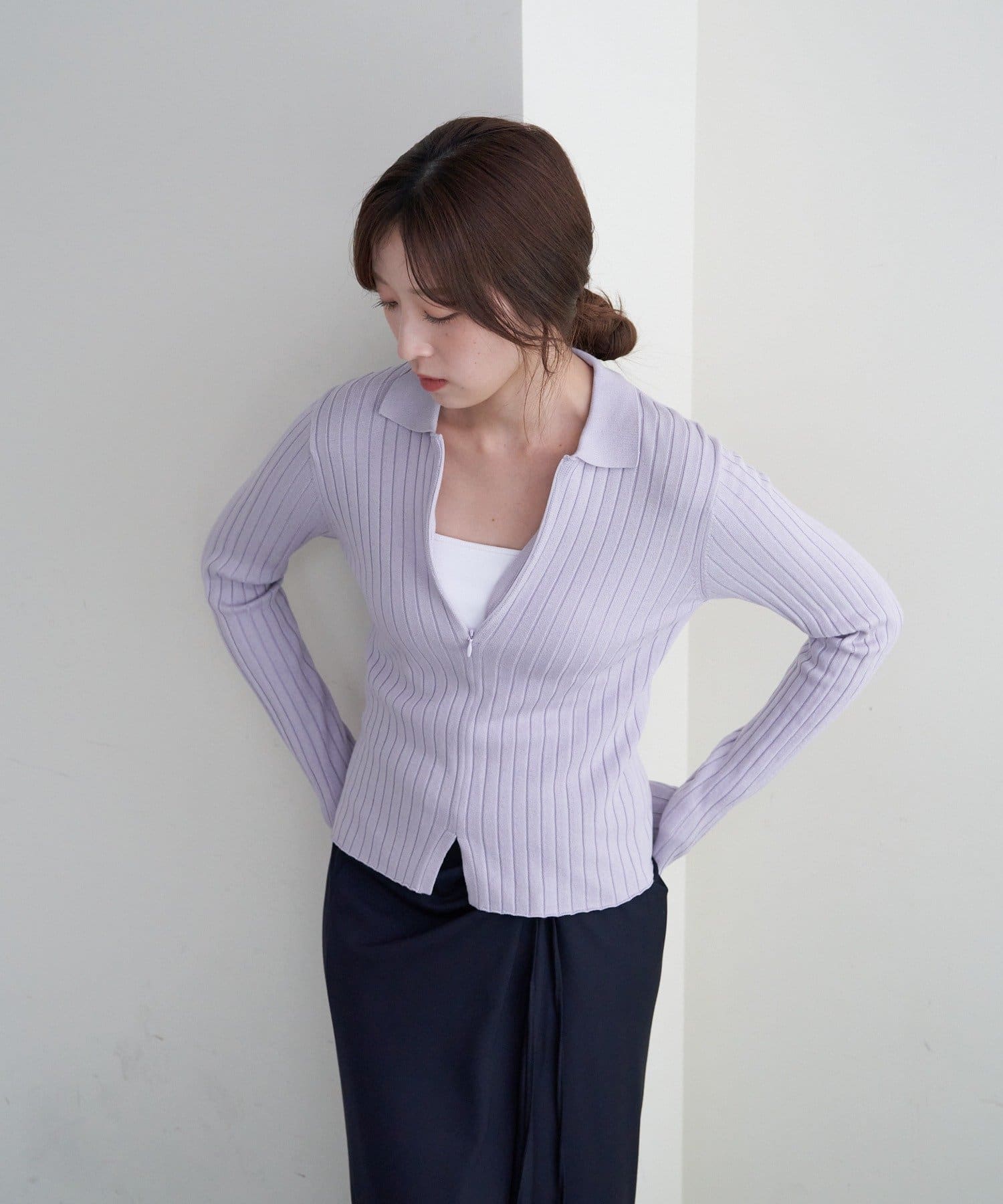 ミニマルな形ですが、小さい襟や、リブをつけており