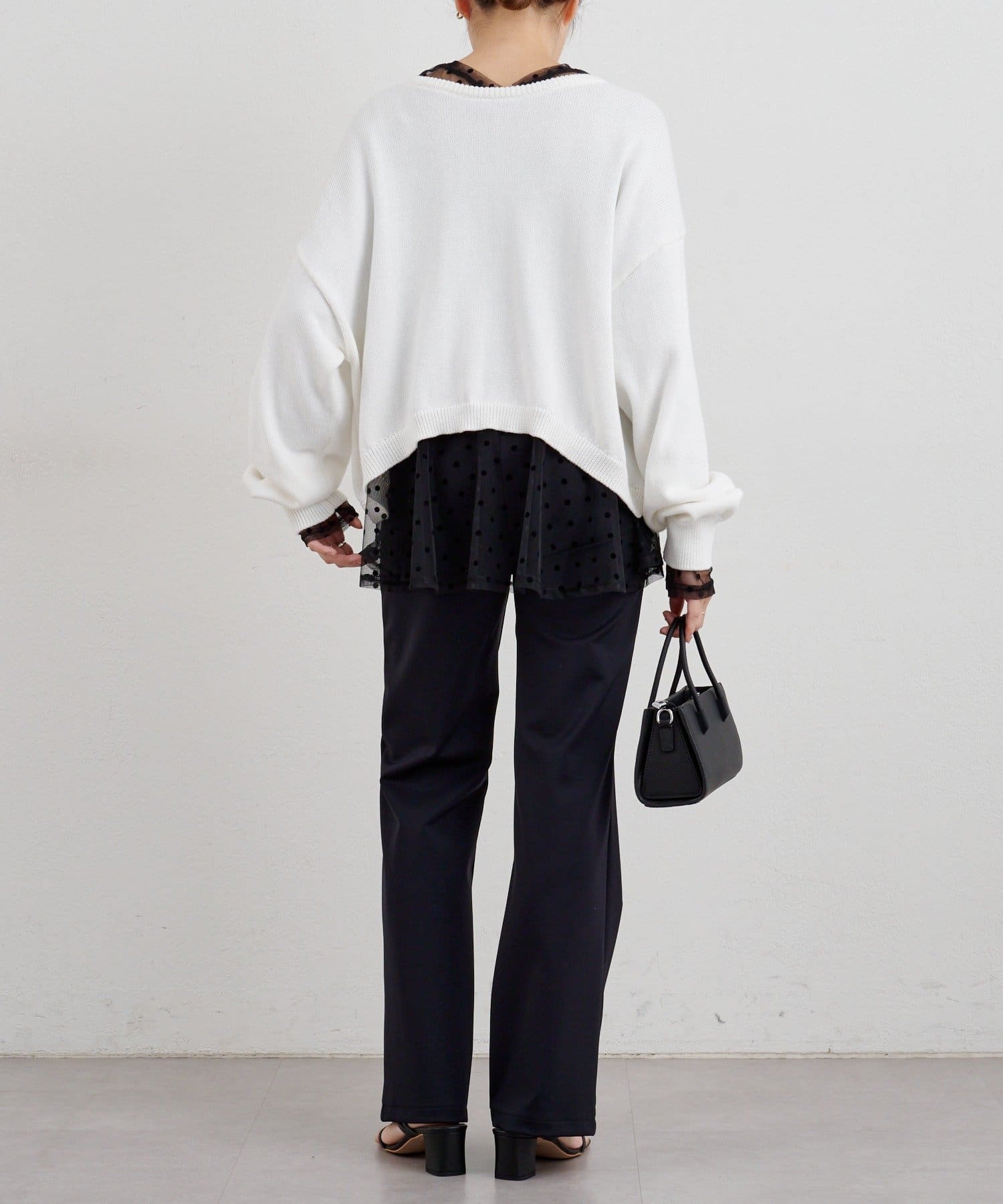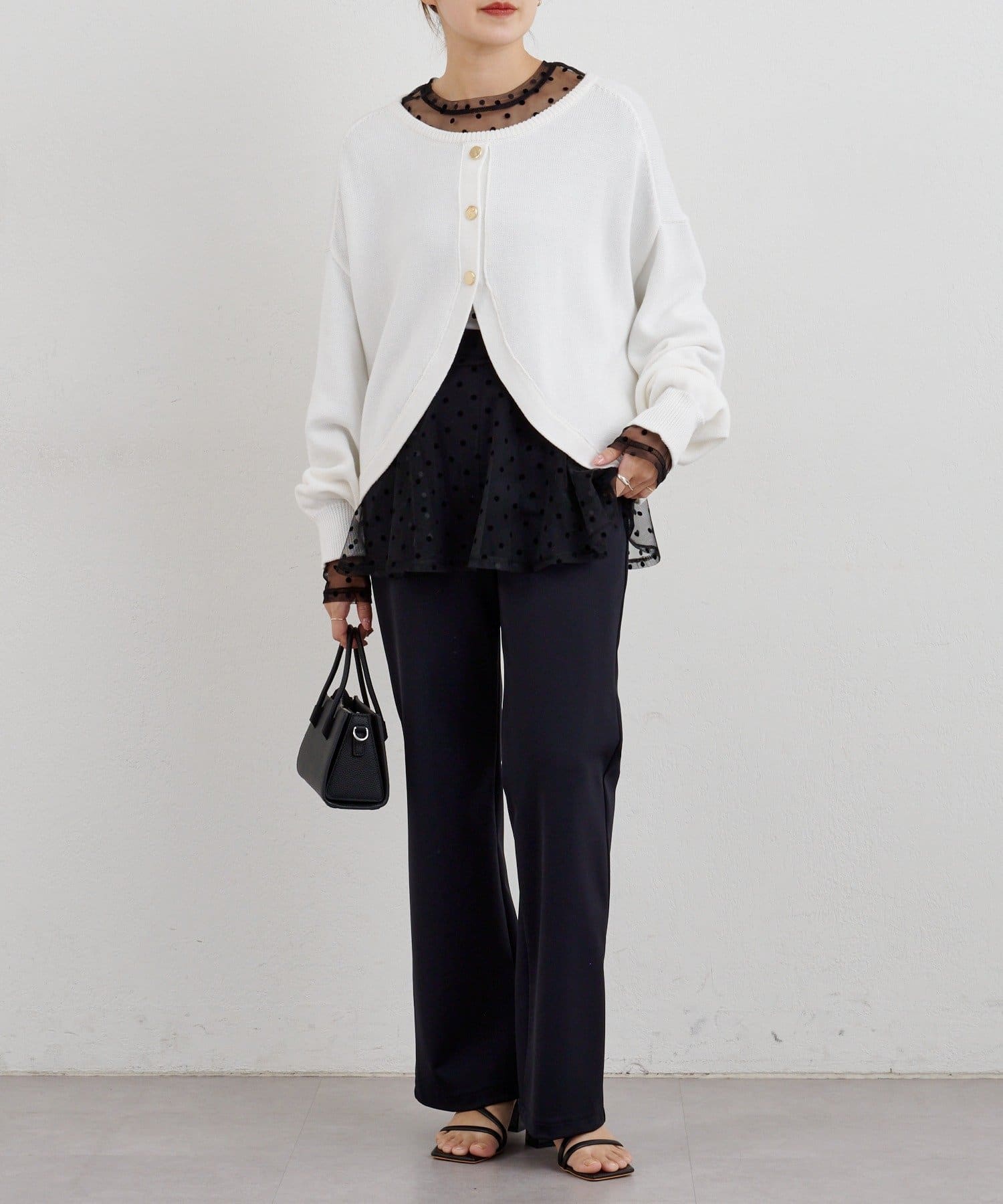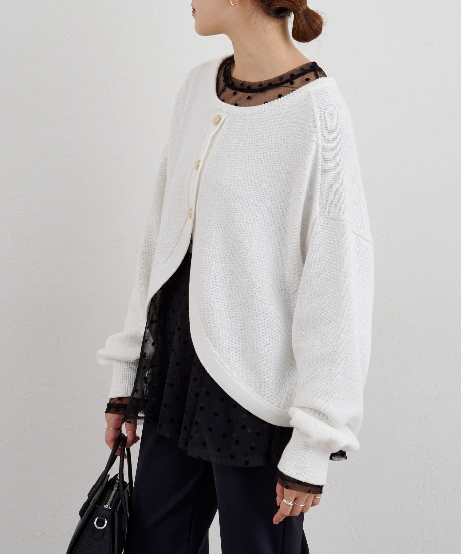 裾はラウンドカットになっており、女性らしい柔らかな印象を与えます。