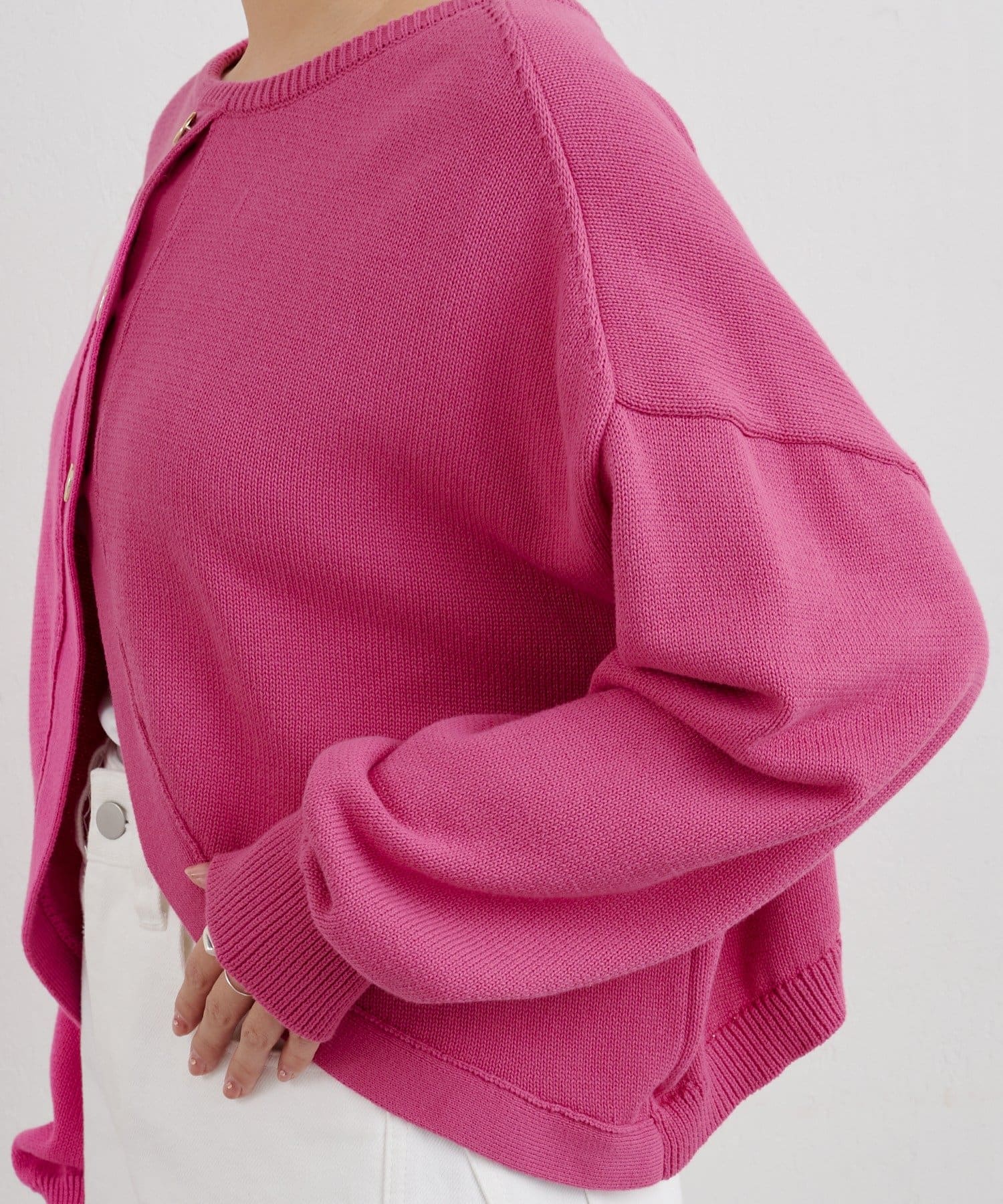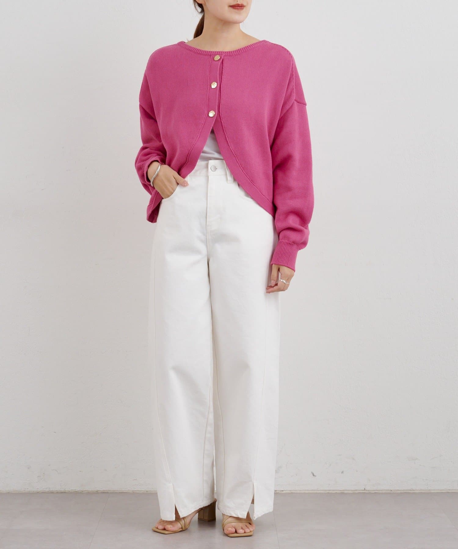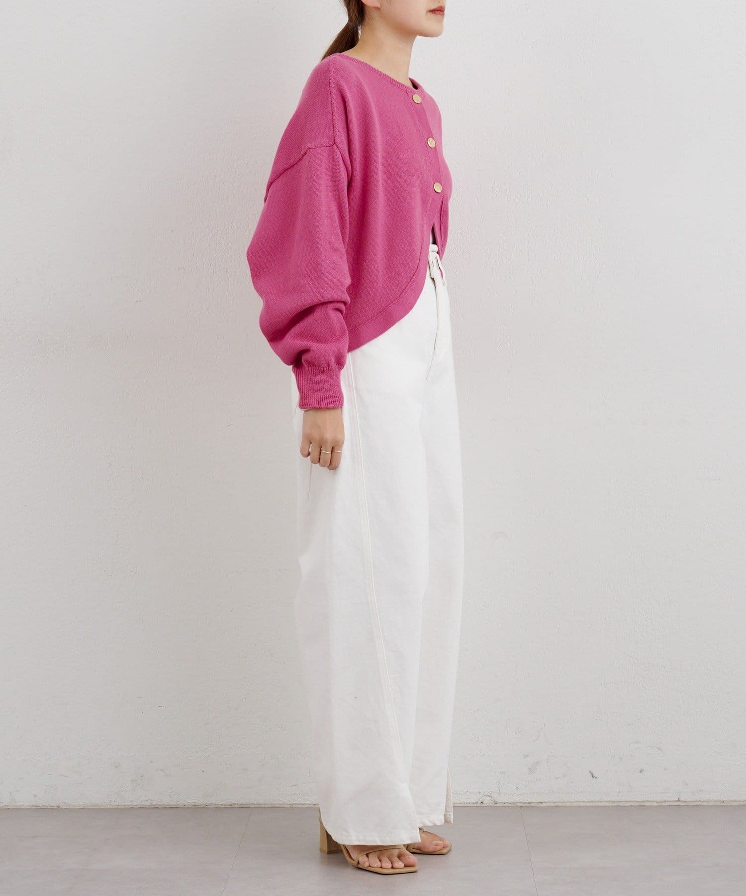 ラウンドシルエットが特徴の大人のショートカーディガン。