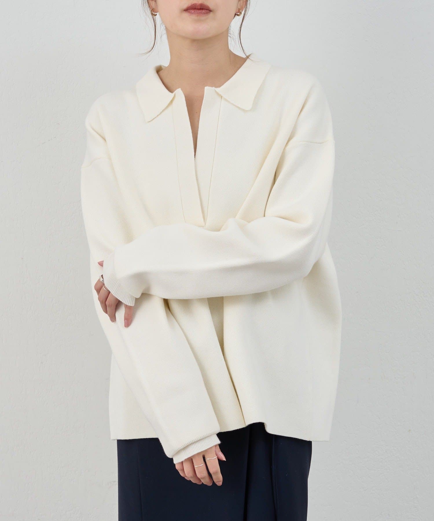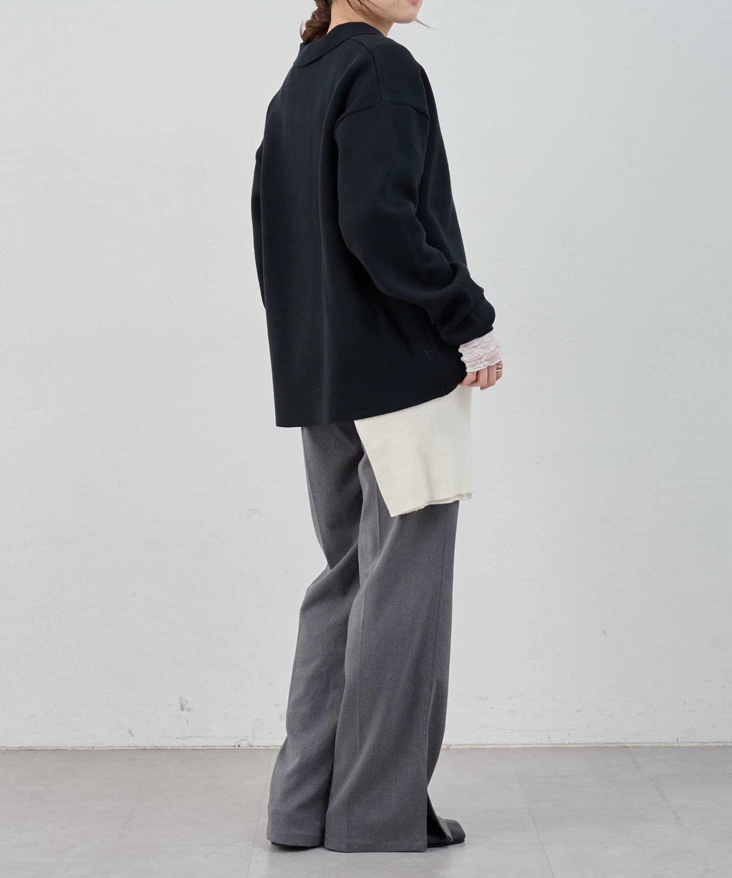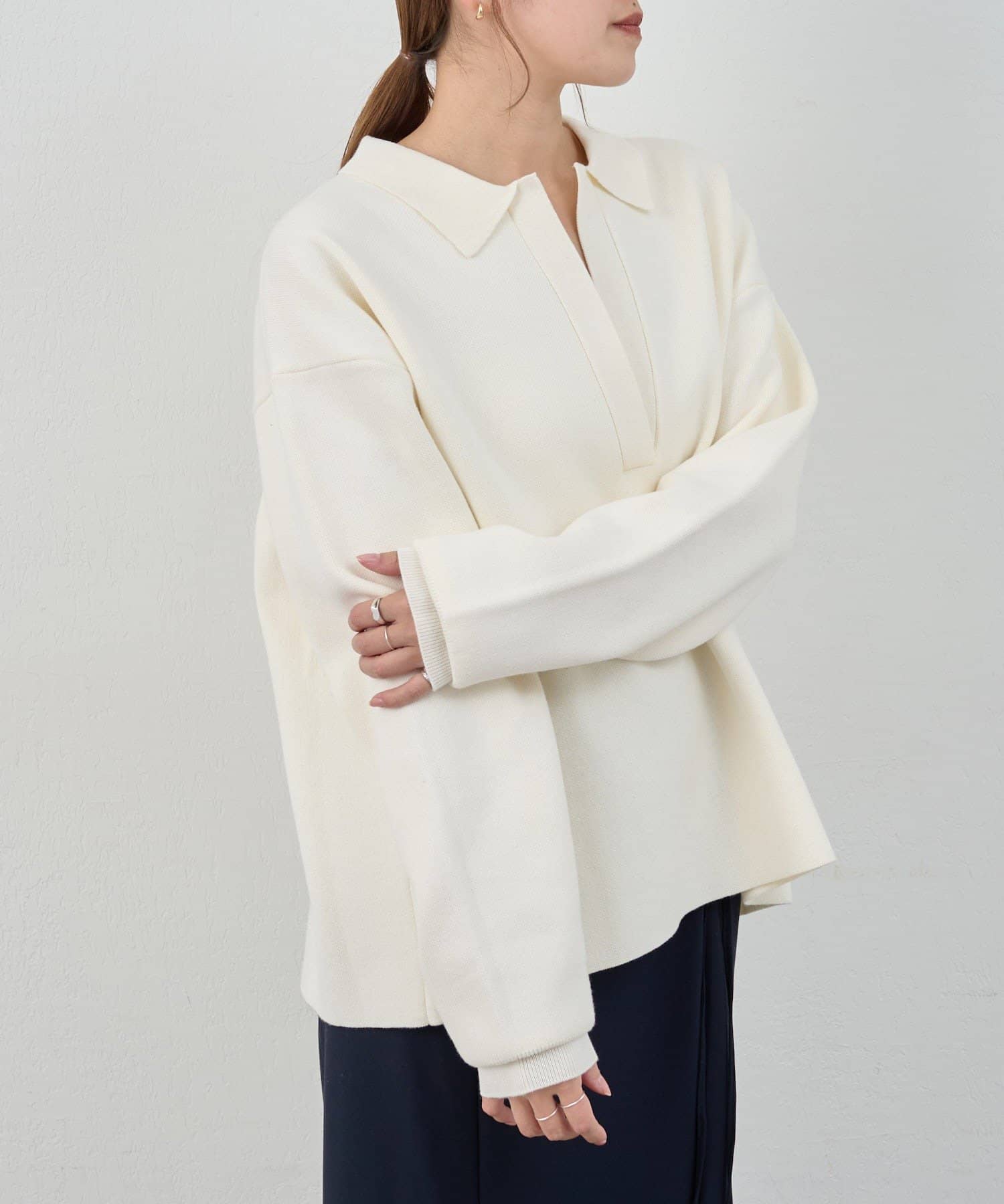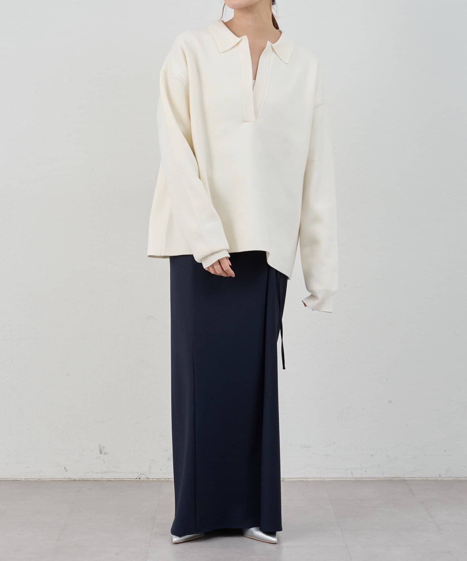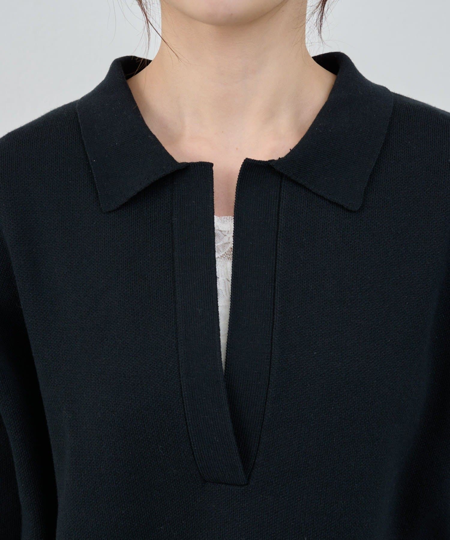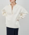 襟付きのきちんと感とスキッパーデザインの抜け感が両立し、トレンド感のあるシックな印象に仕上げました。