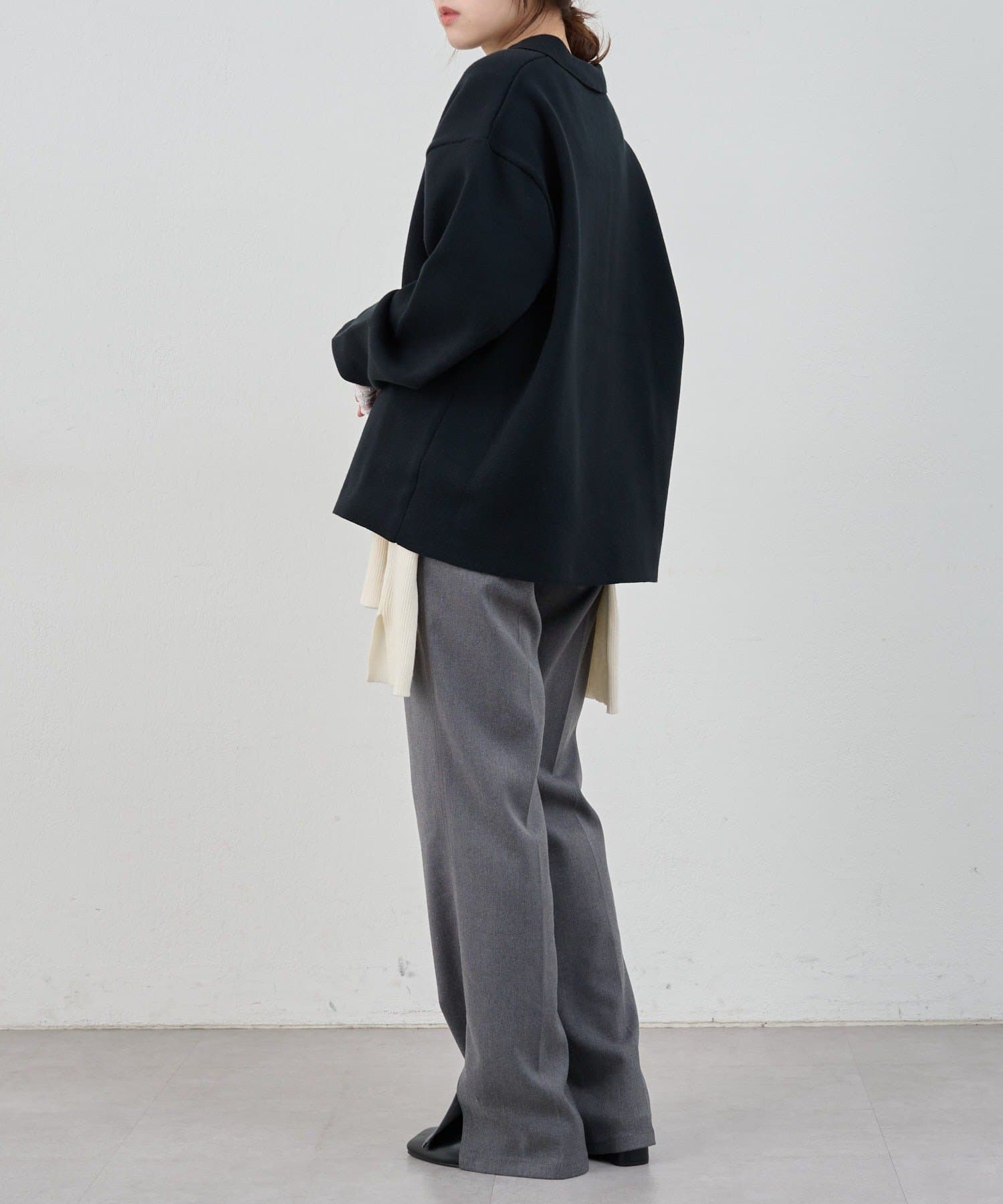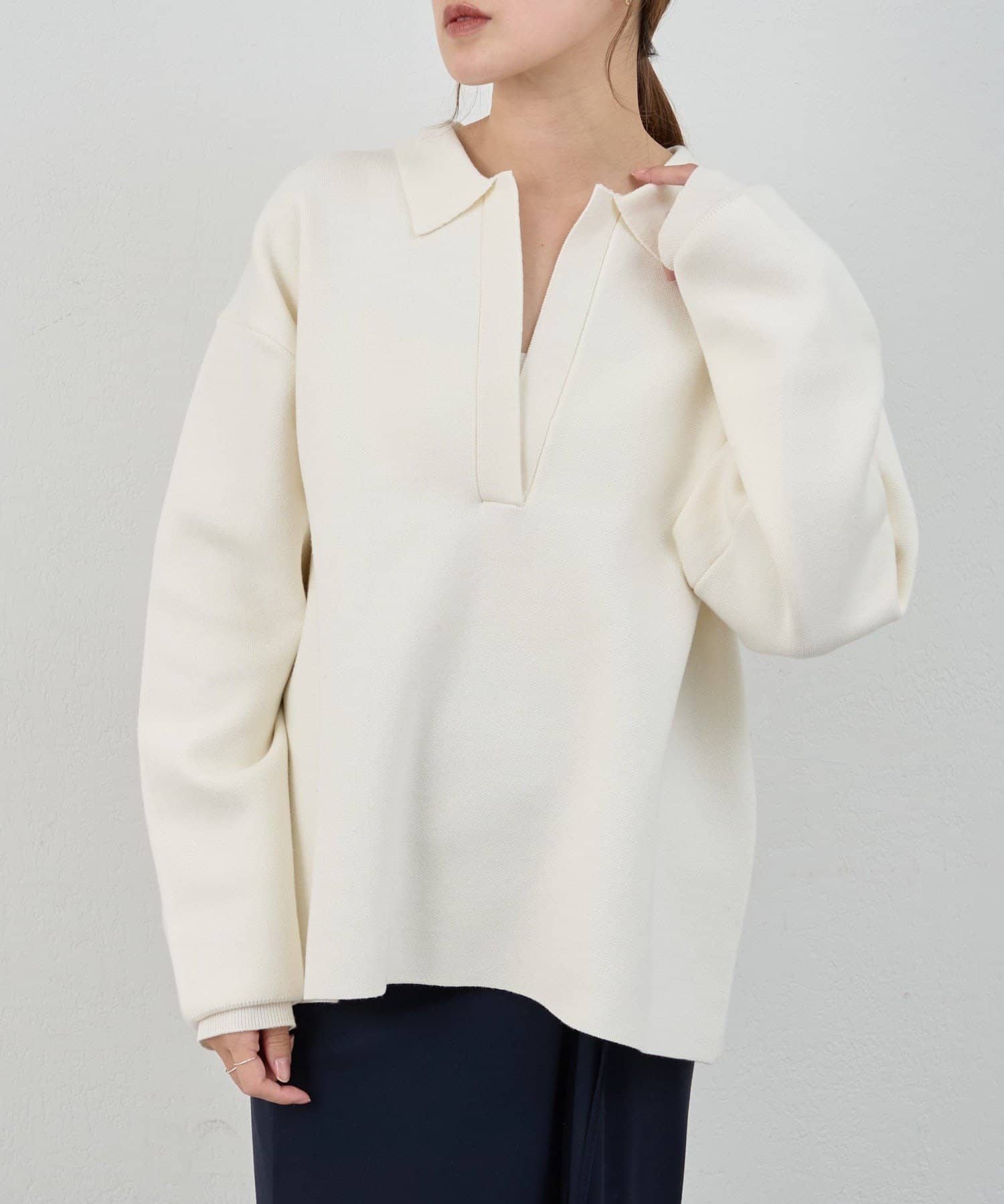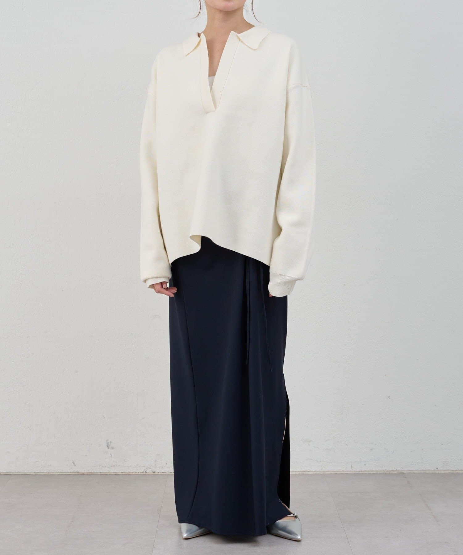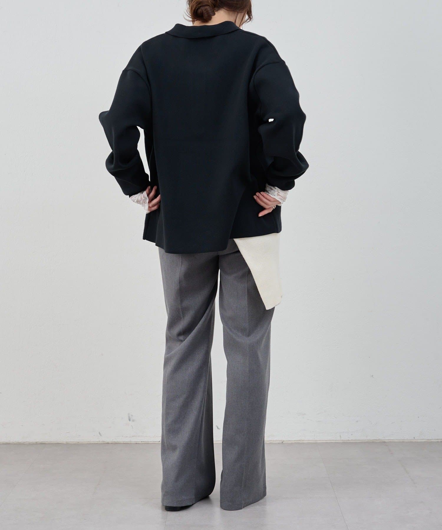 襟付きのきちんと感とスキッパーデザインの抜け感が両立し、トレンド感のあるシックな印象に仕上げました。