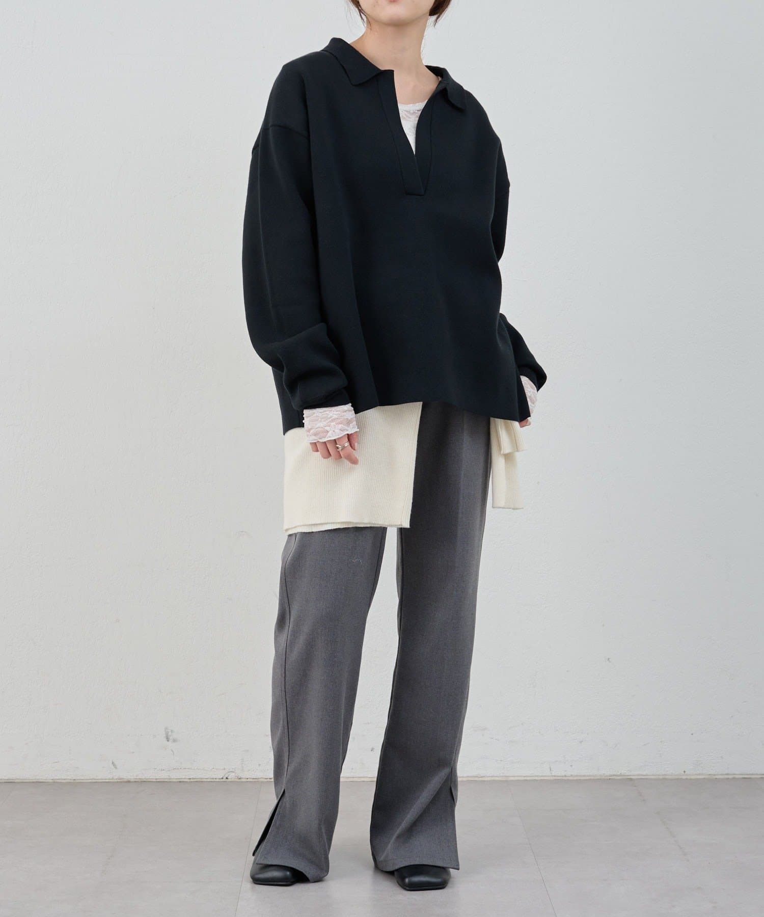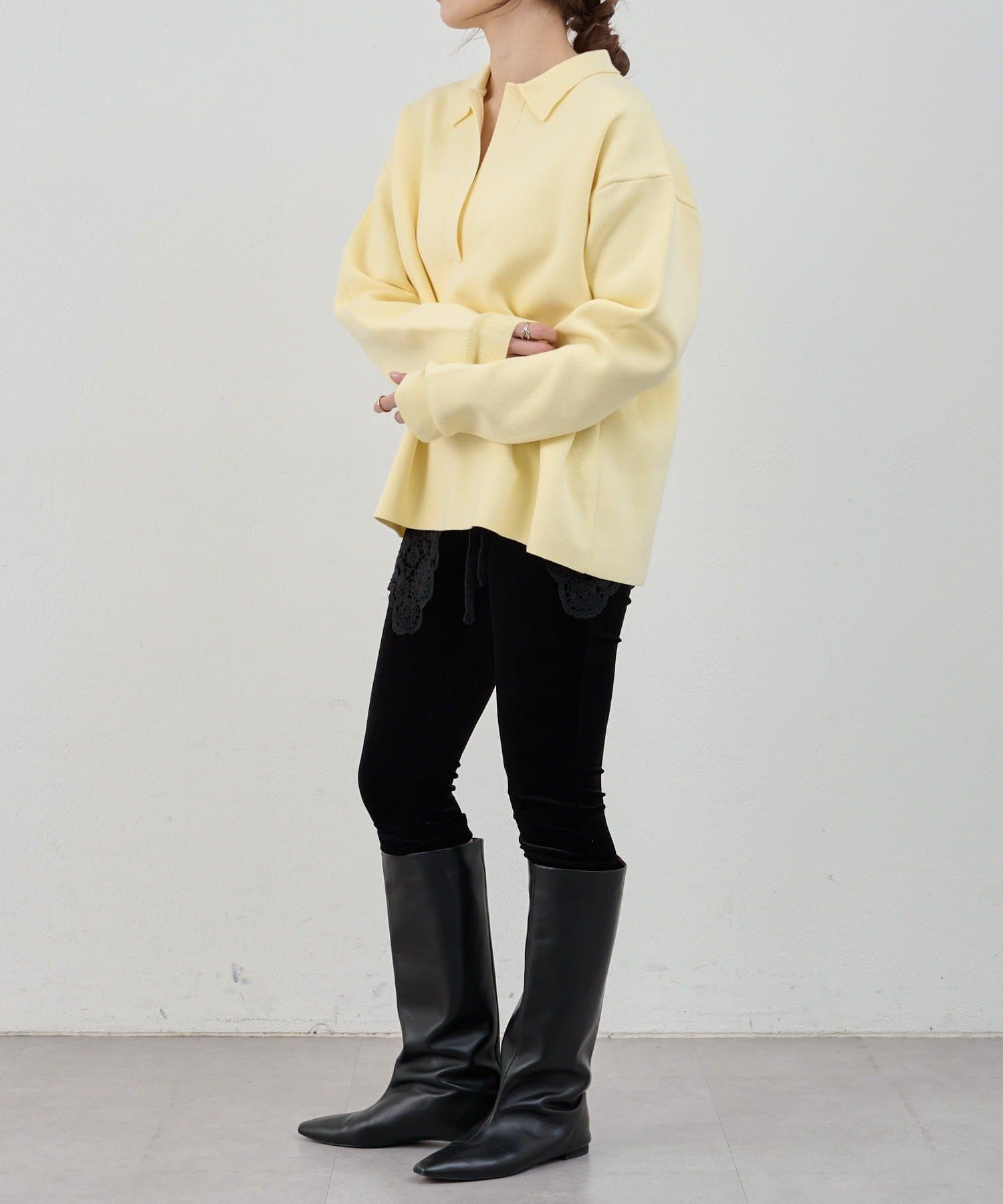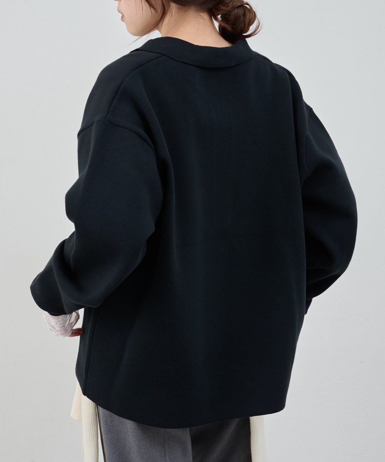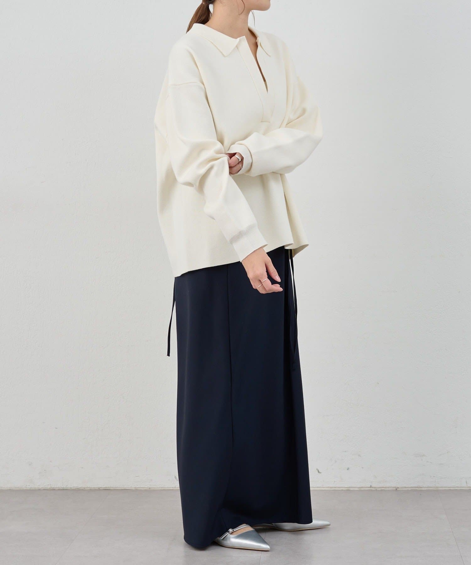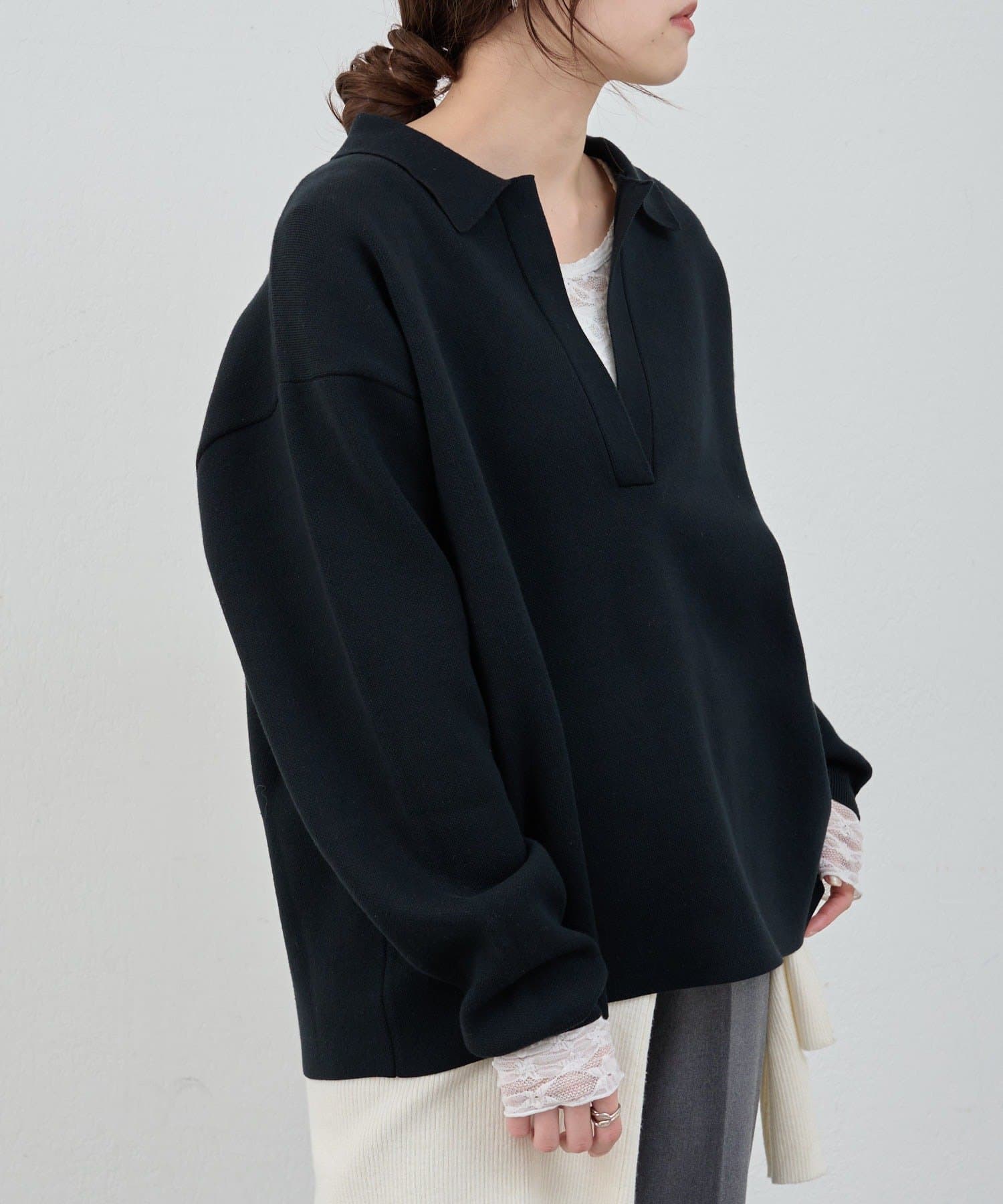 襟付きのきちんと感とスキッパーデザインの抜け感が両立し、トレンド感のあるシックな印象に仕上げました。