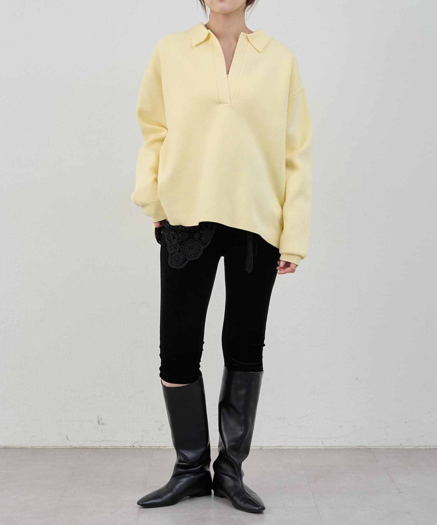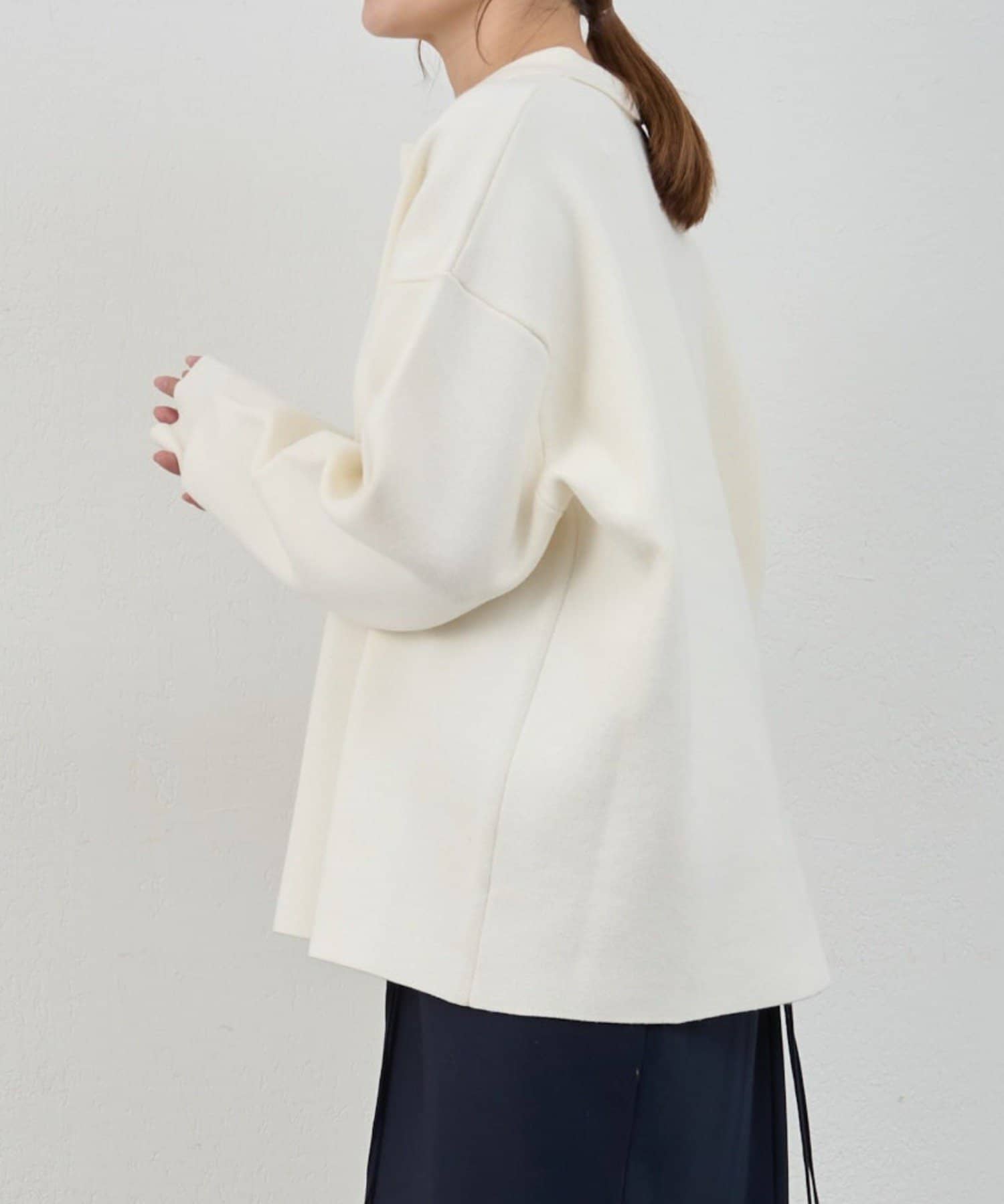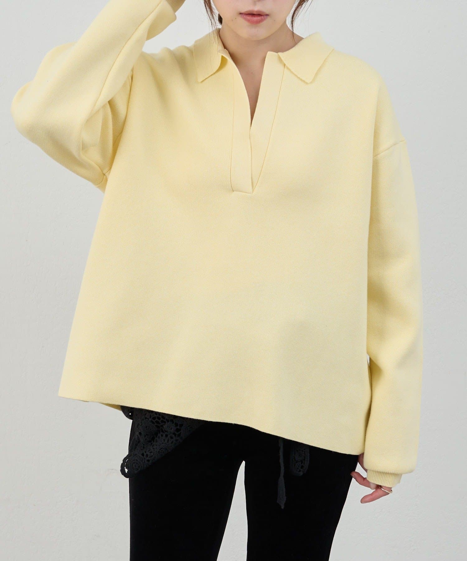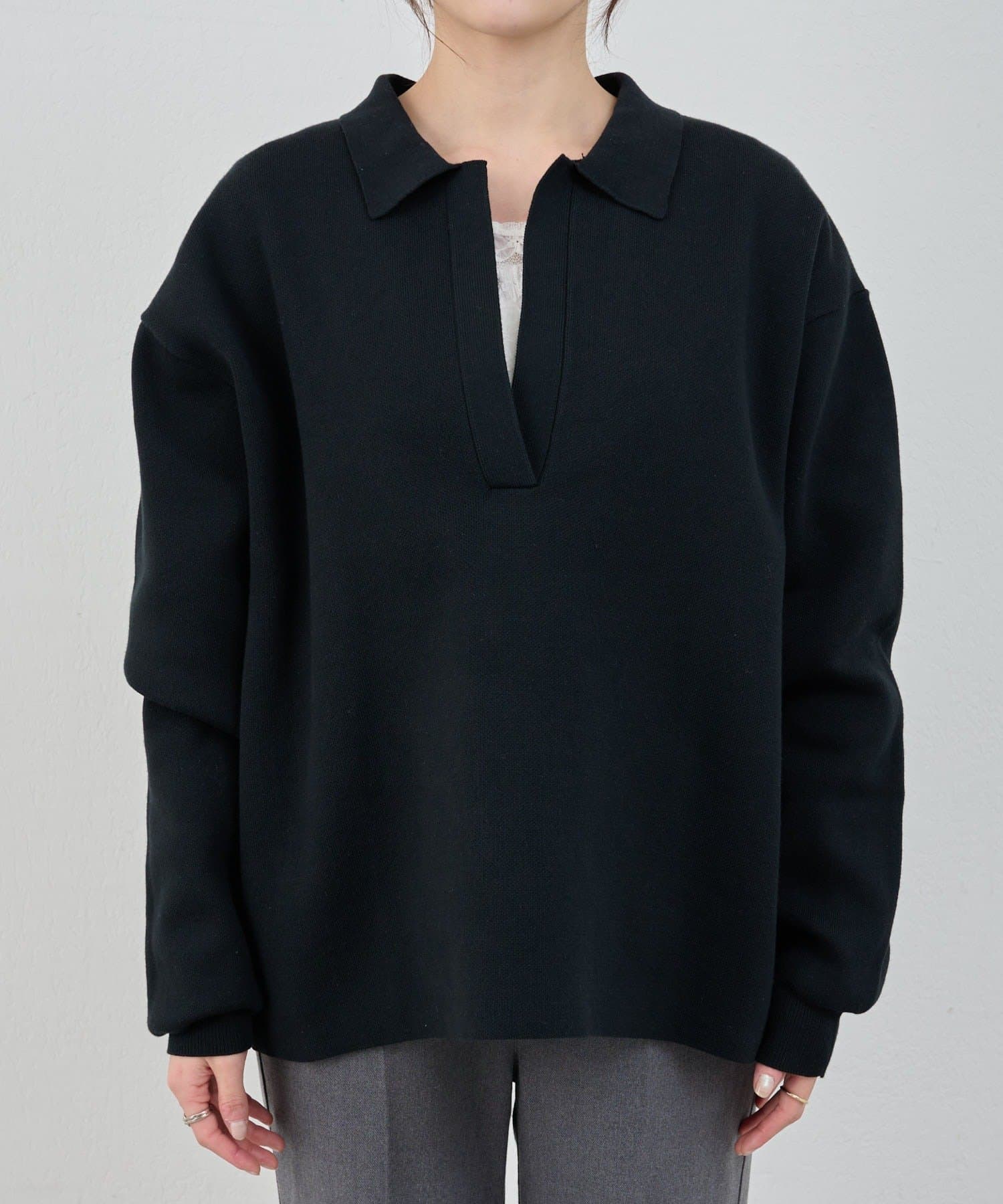 襟付きのきちんと感とスキッパーデザインの抜け感が両立し、トレンド感のあるシックな印象に仕上げました。