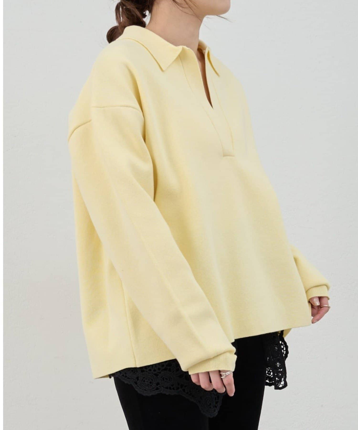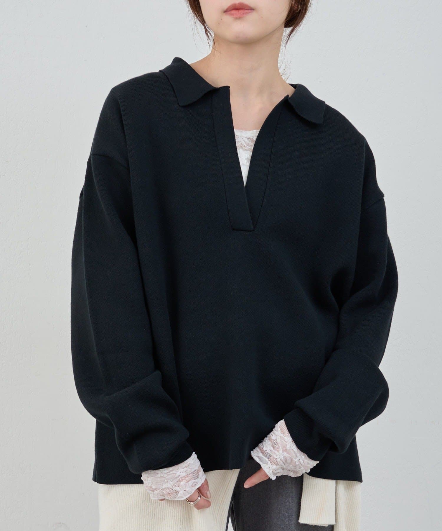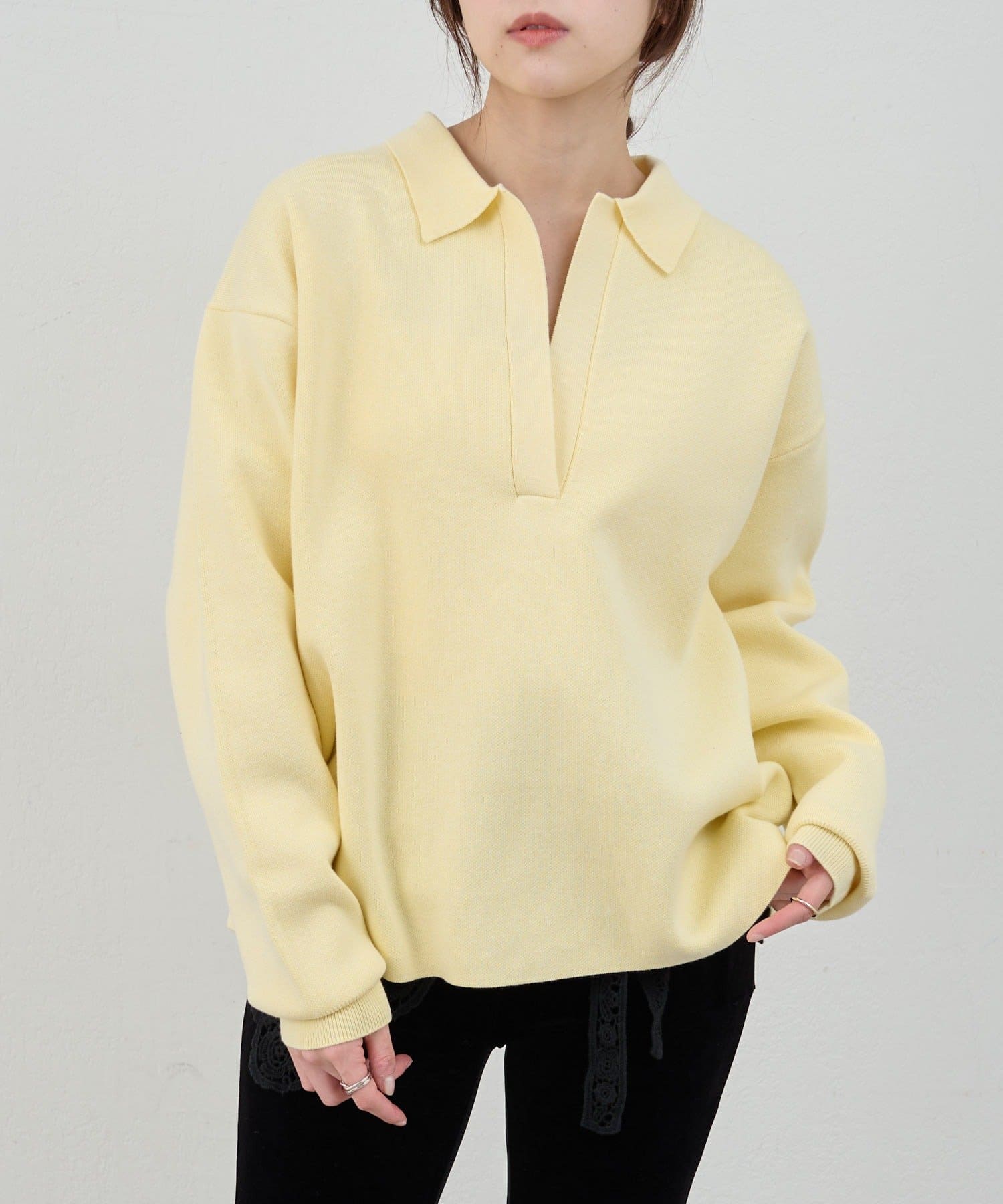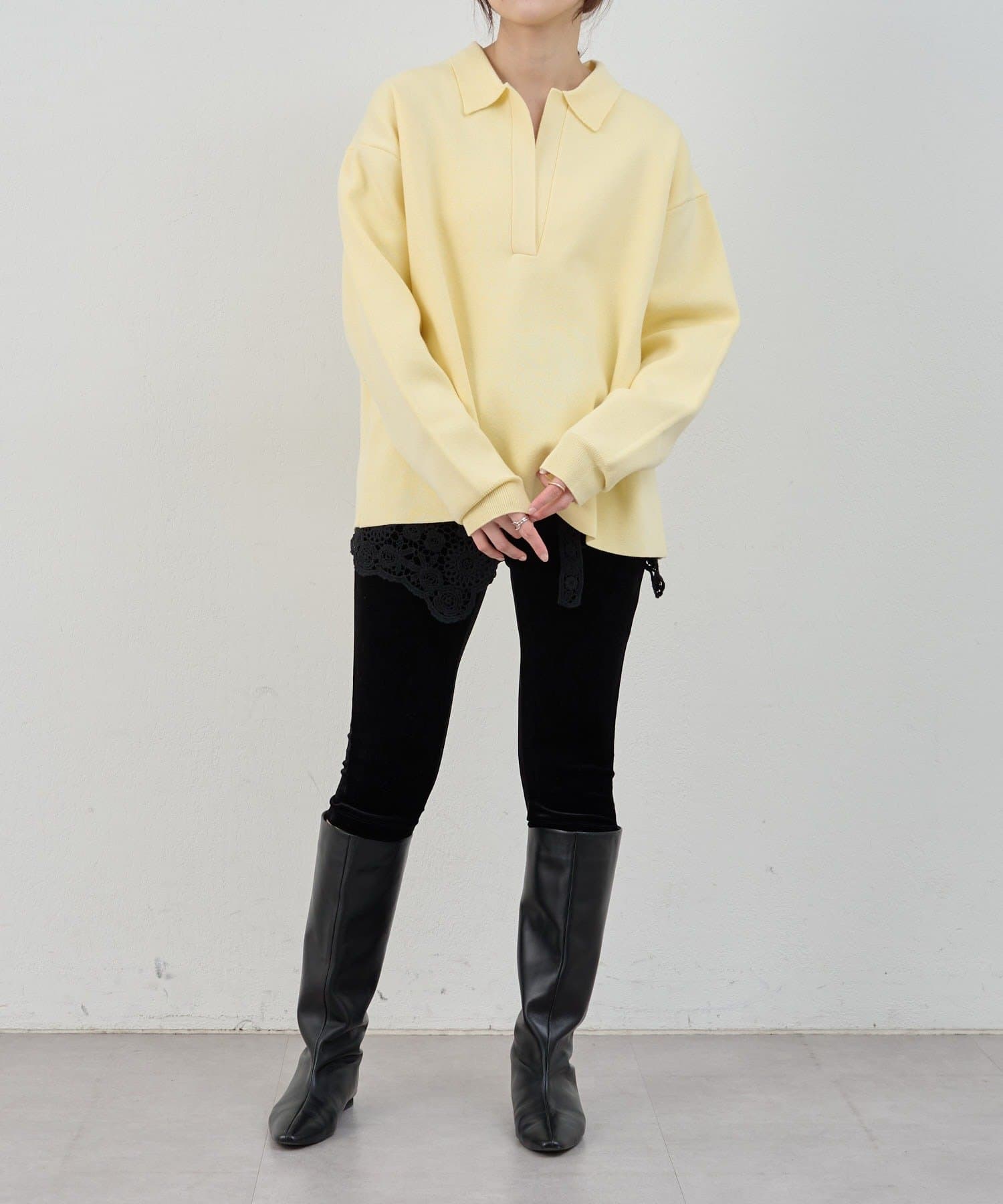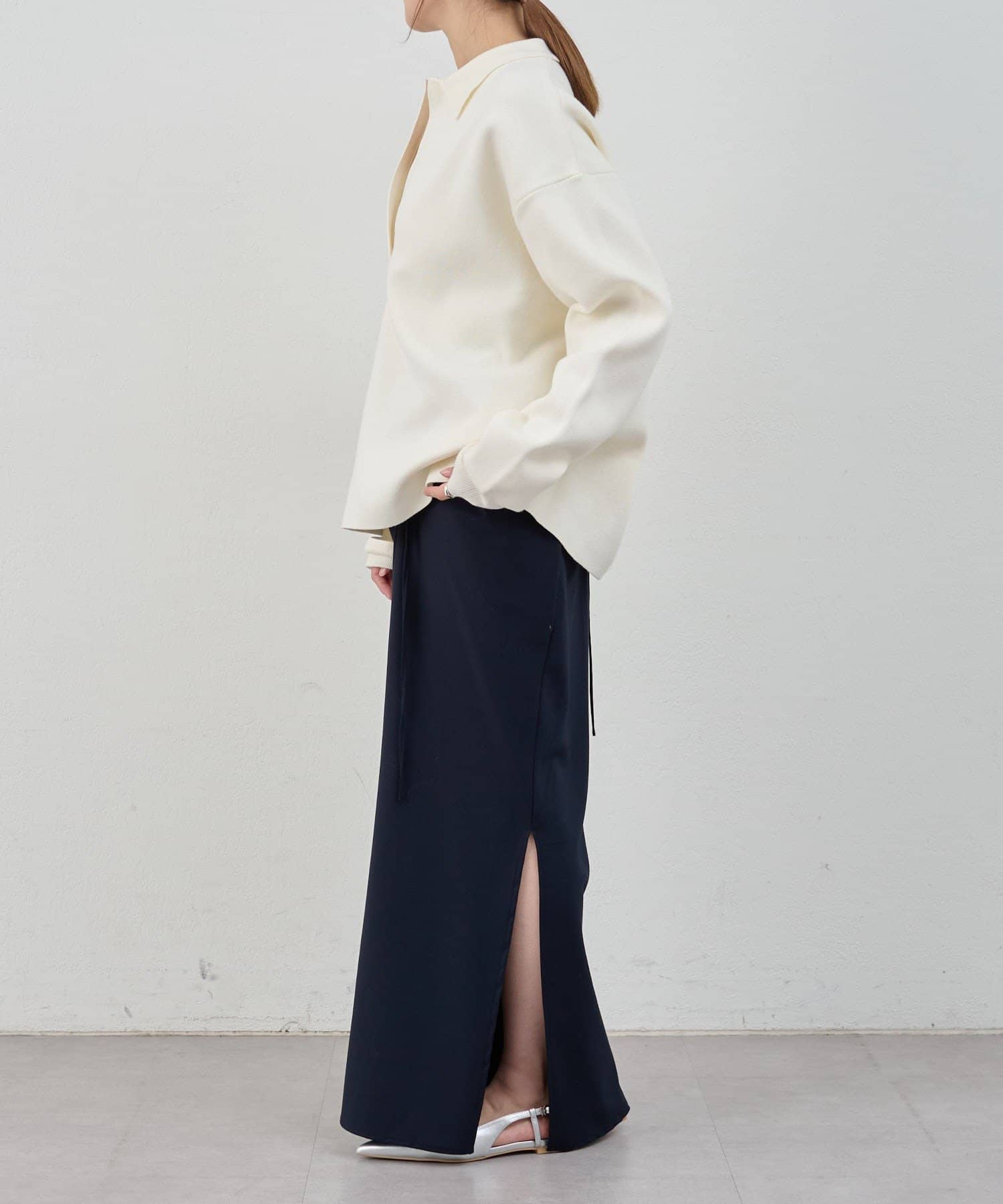 襟付きのきちんと感とスキッパーデザインの抜け感が両立し、トレンド感のあるシックな印象に仕上げました。