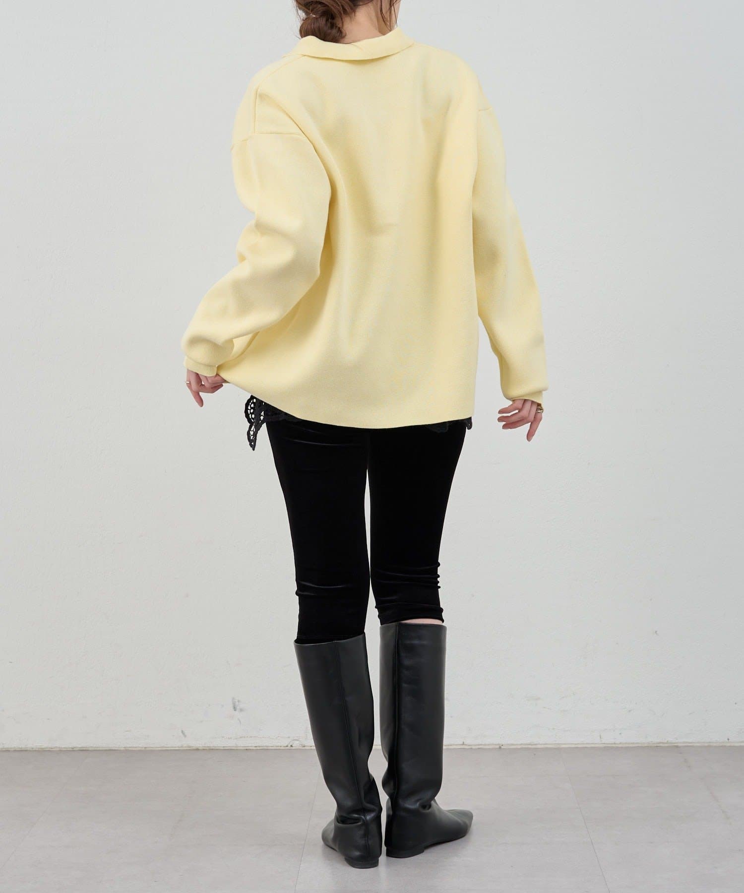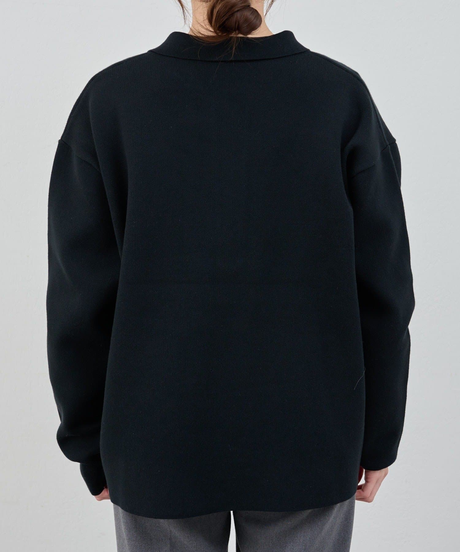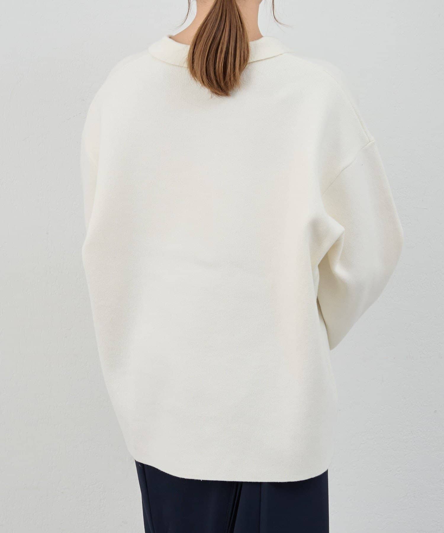 トレンドのラガーシャツを、ハリのあるニットでお作りした、大人な印象の一枚。