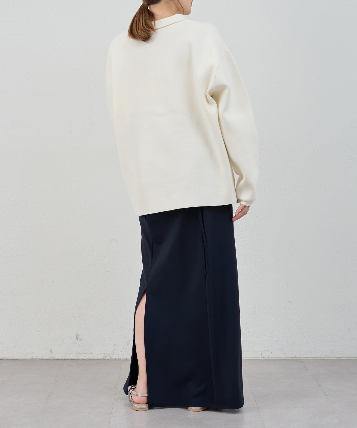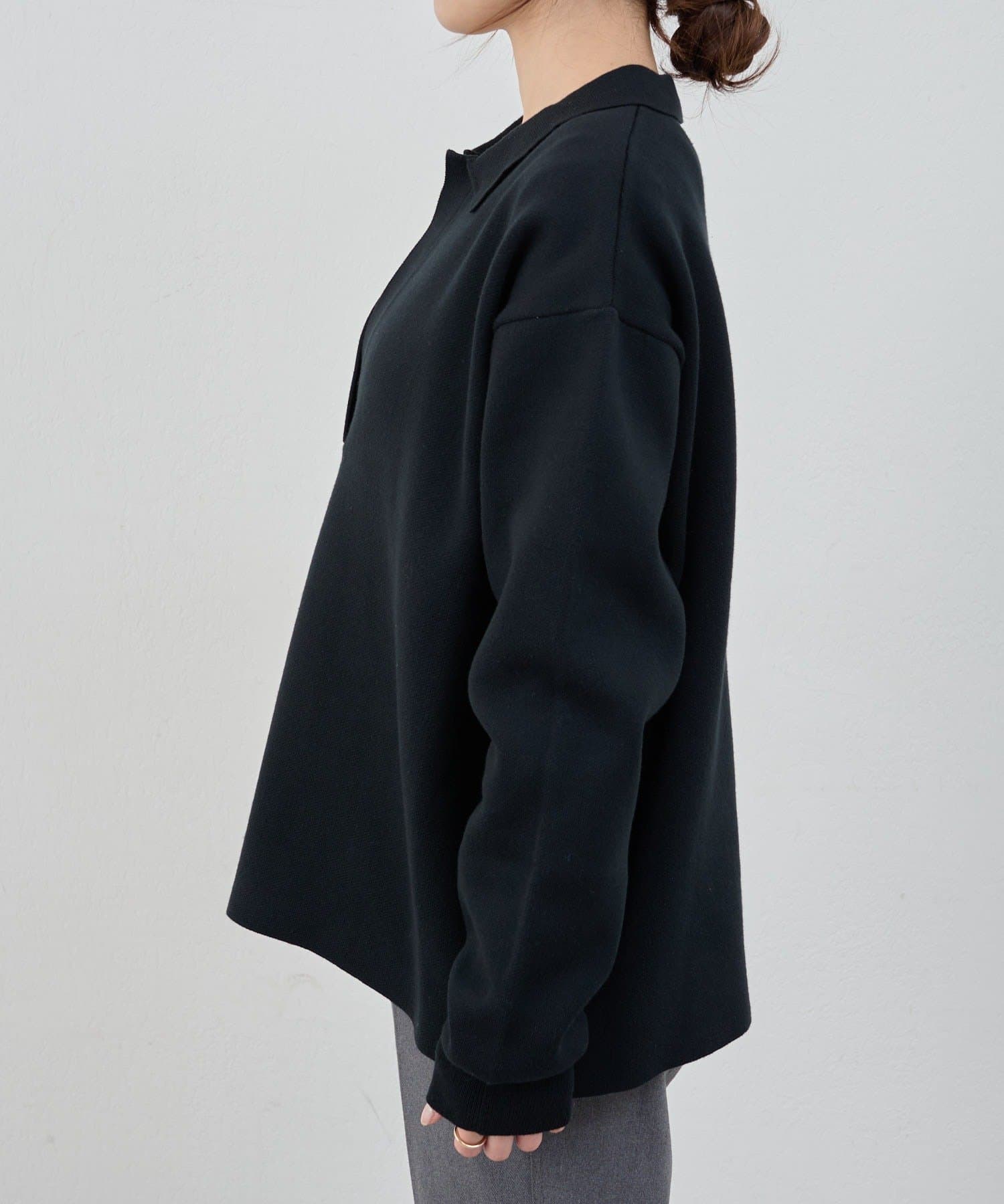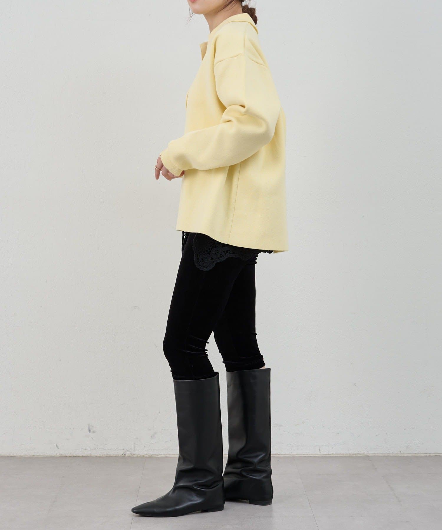 トレンドのラガーシャツを、ハリのあるニットでお作りした、大人な印象の一枚。