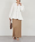 ウエストラインを強調しつつ、体型カバーも叶える女性らしいデザインのトップス。