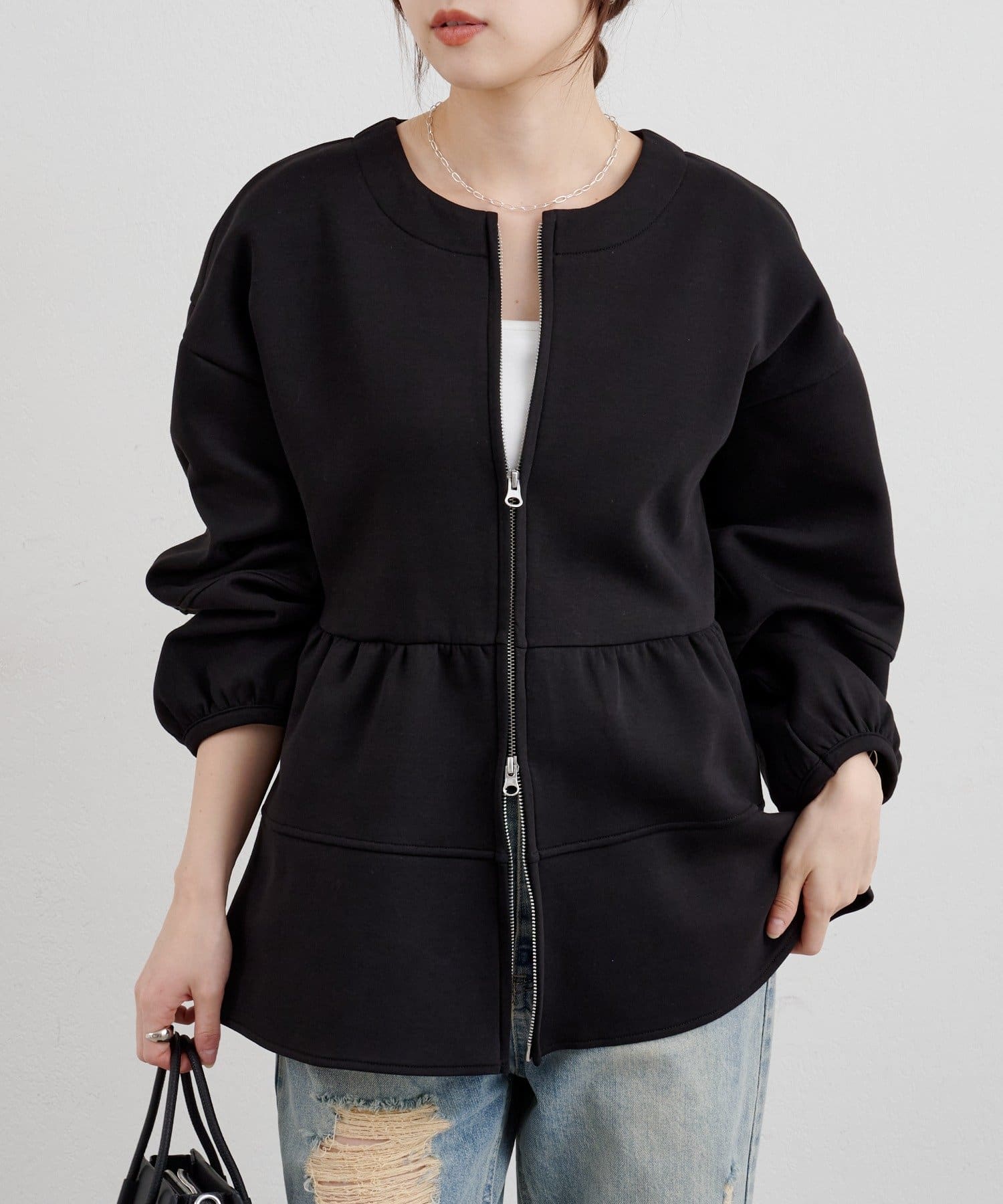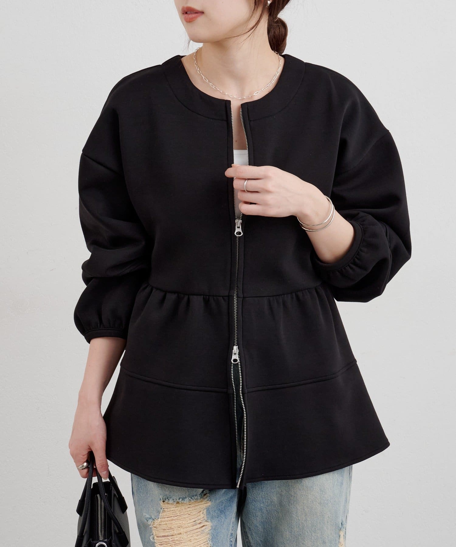 ダブルジップ仕様なので、アレンジ次第で抜け感のあるコーディネートを楽しむことができます。