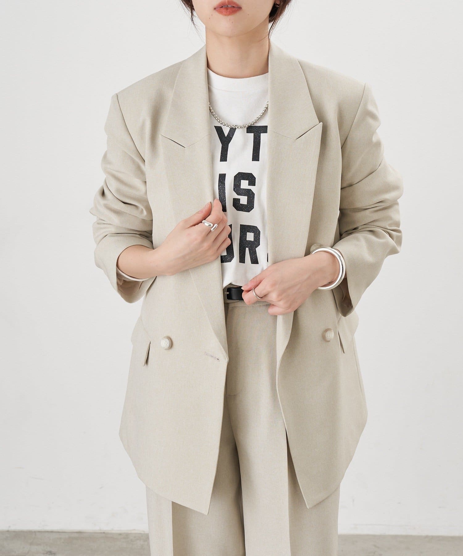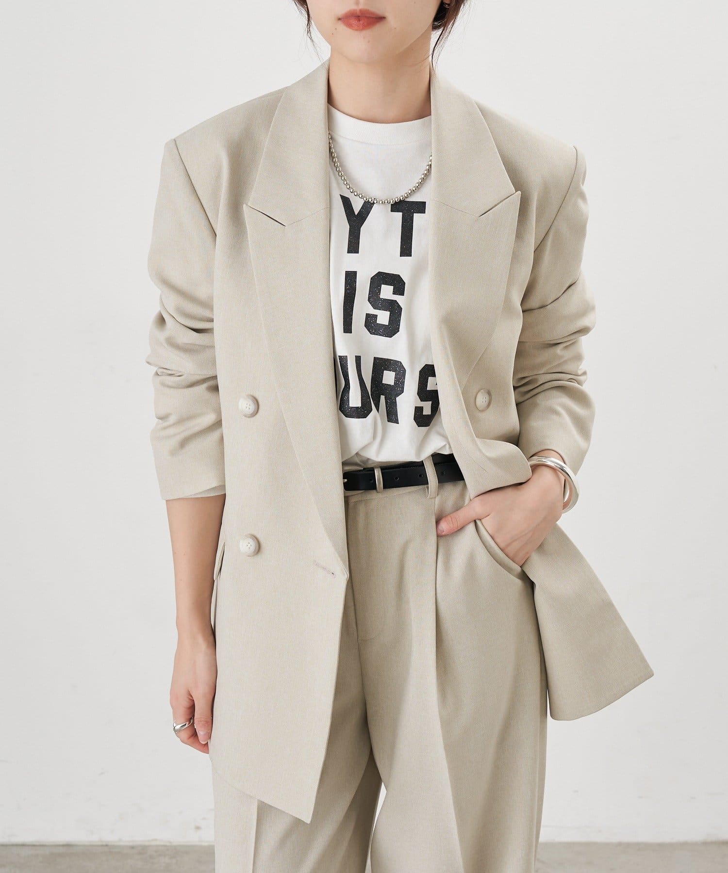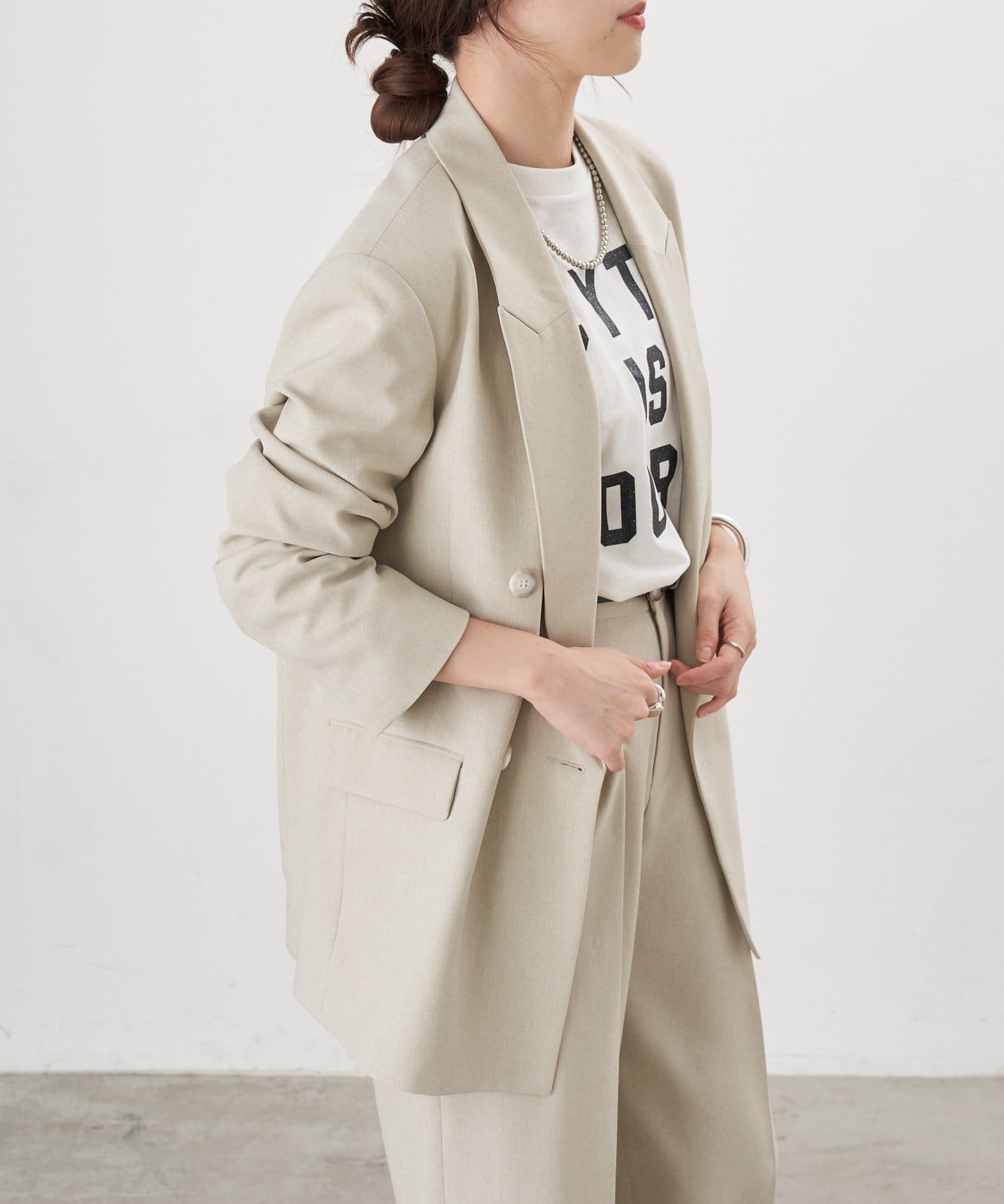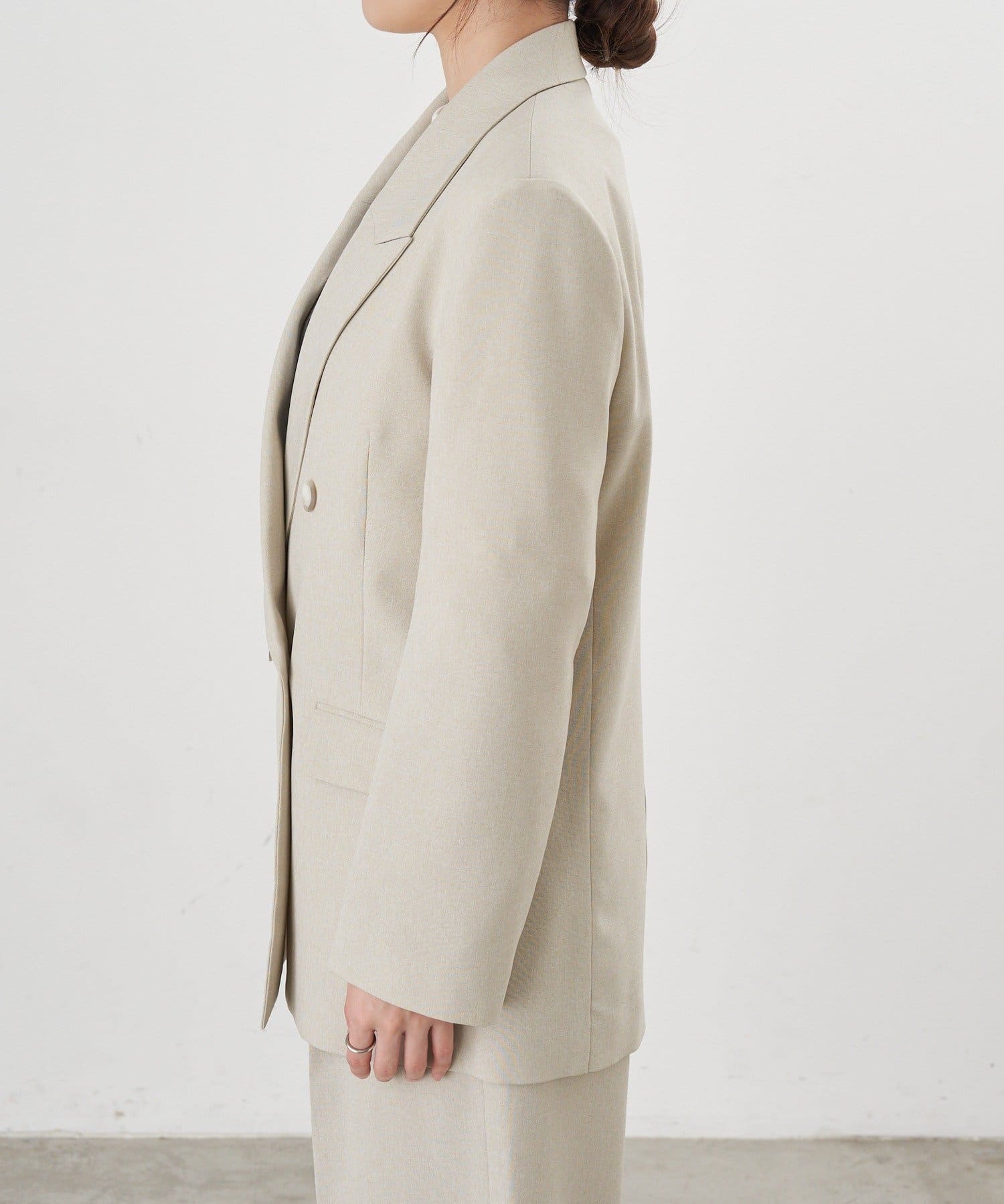 今年らしいややゆったりとしたシルエットのテーラードジャケット。