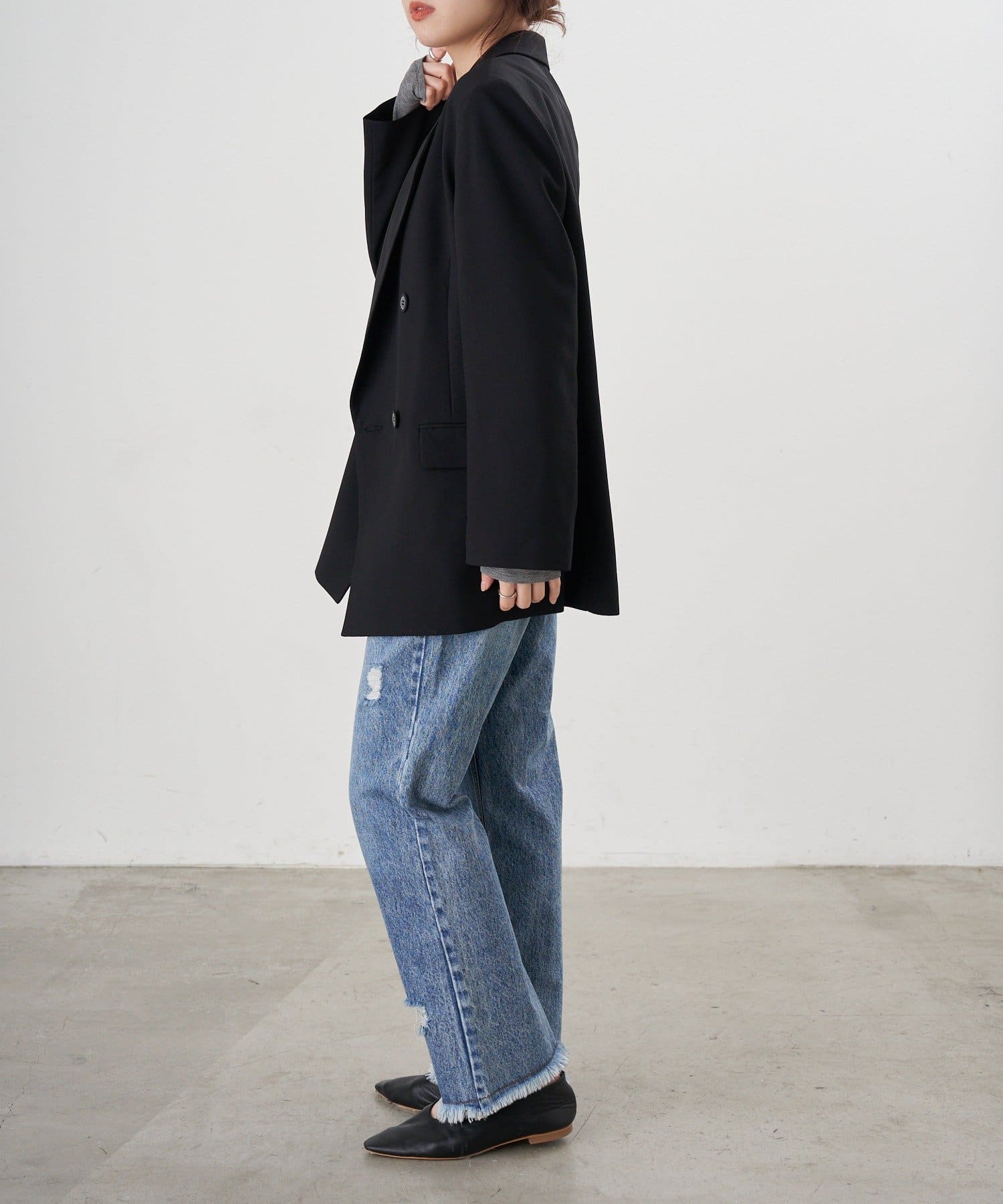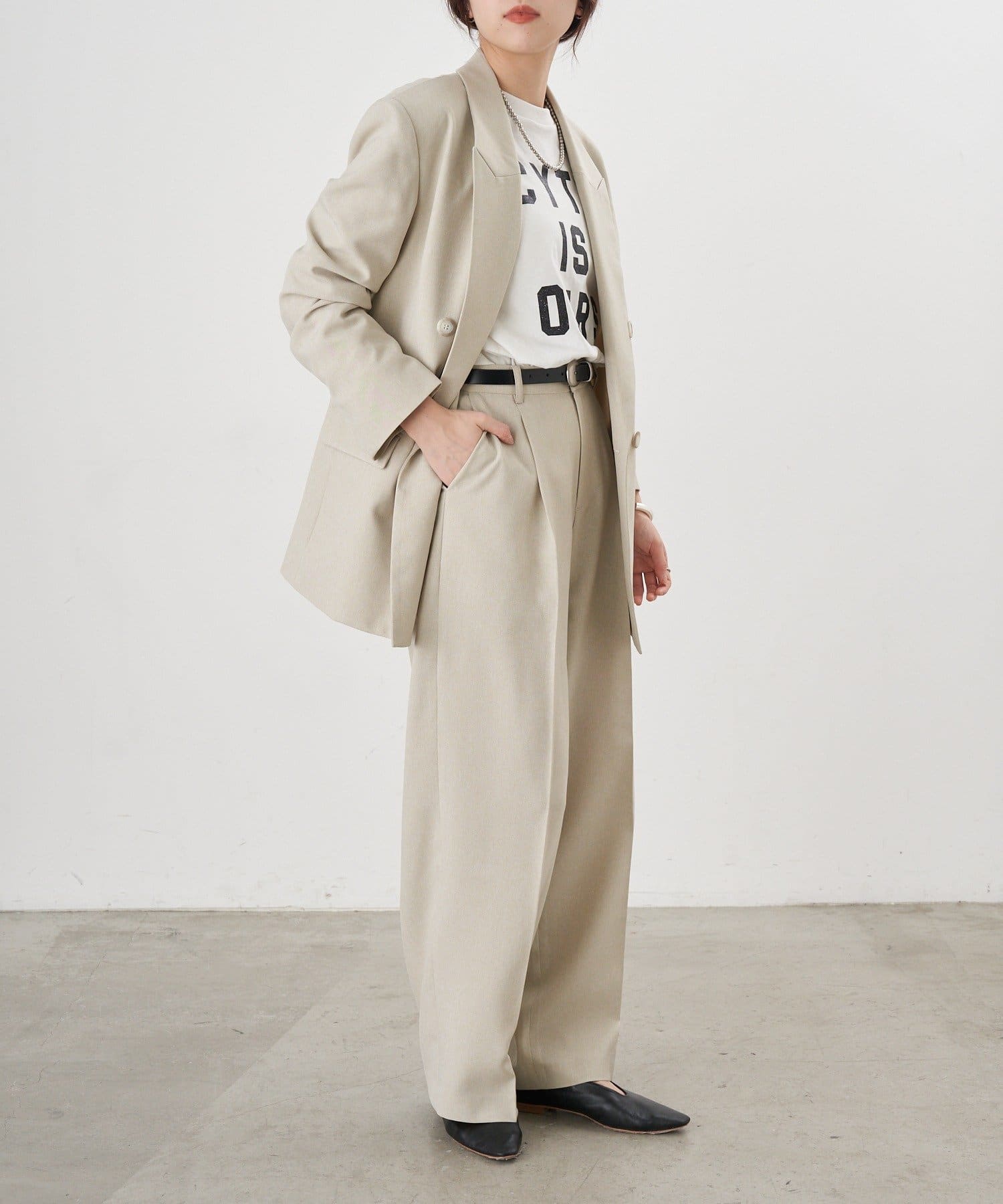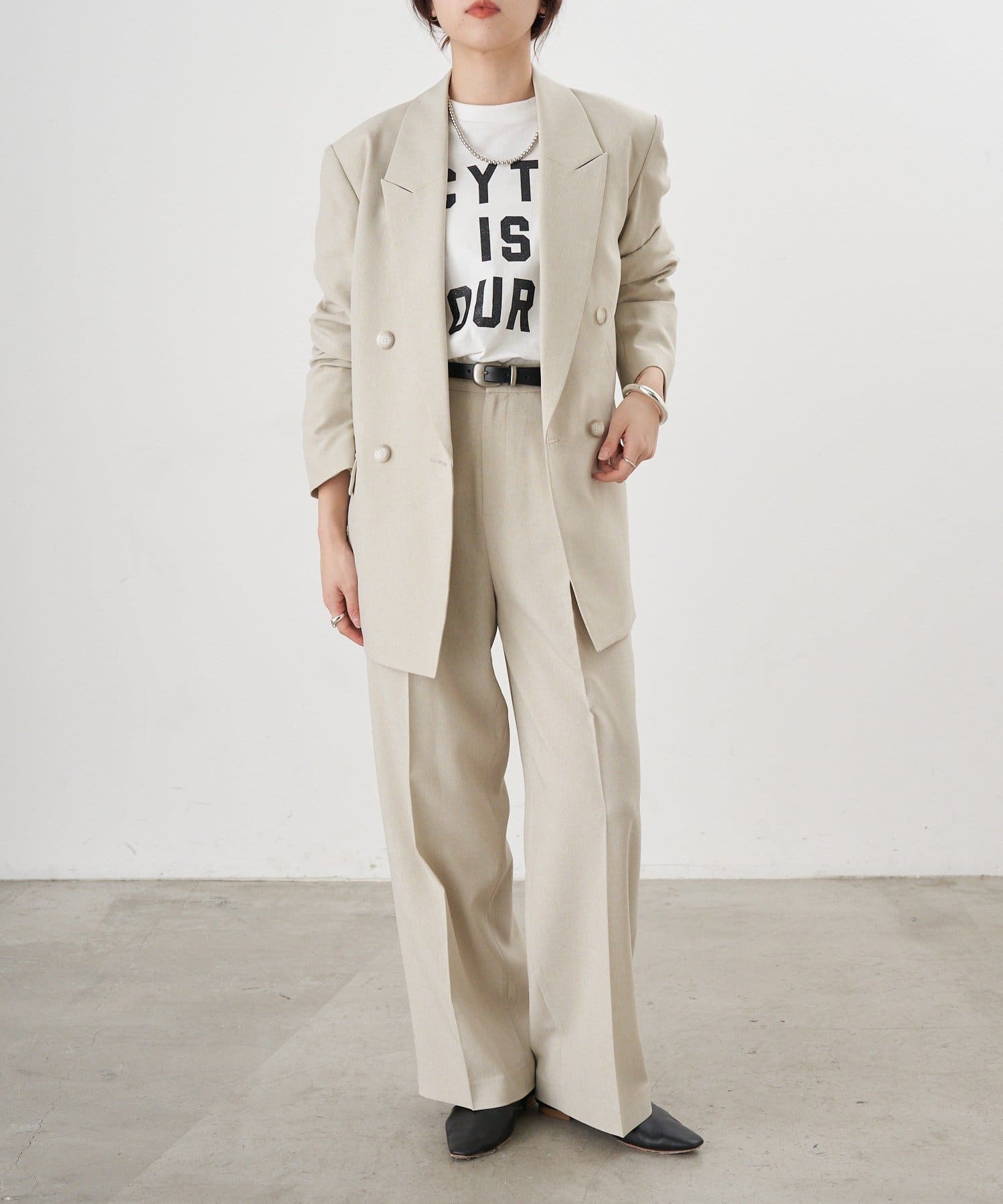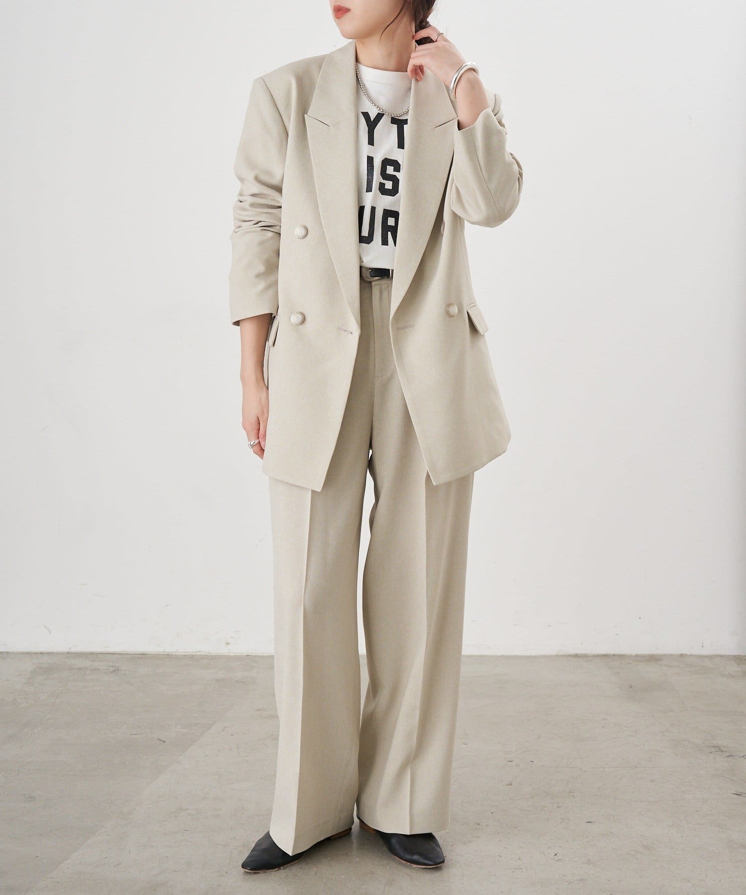 今年らしいややゆったりとしたシルエットのテーラードジャケット。