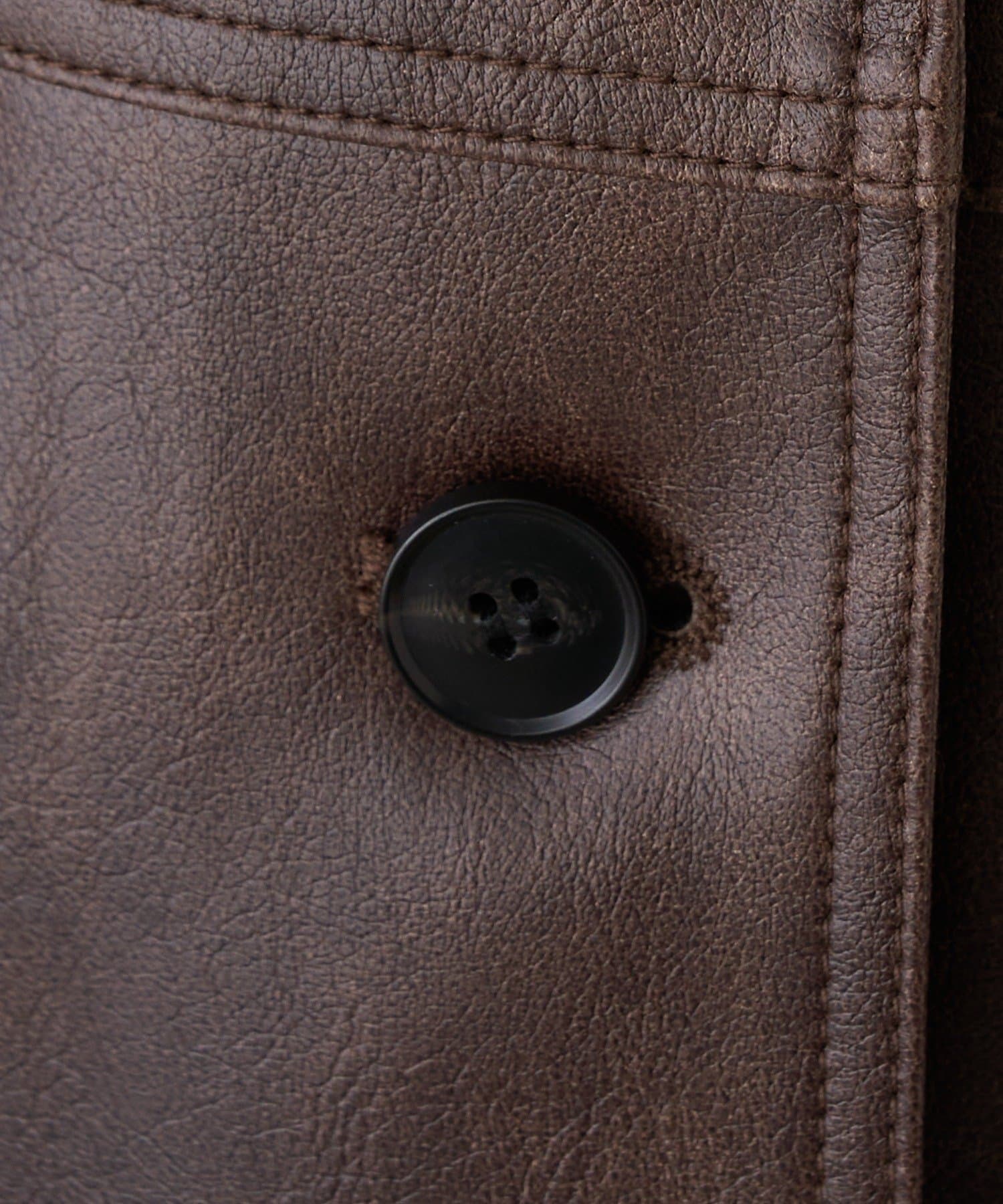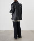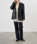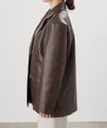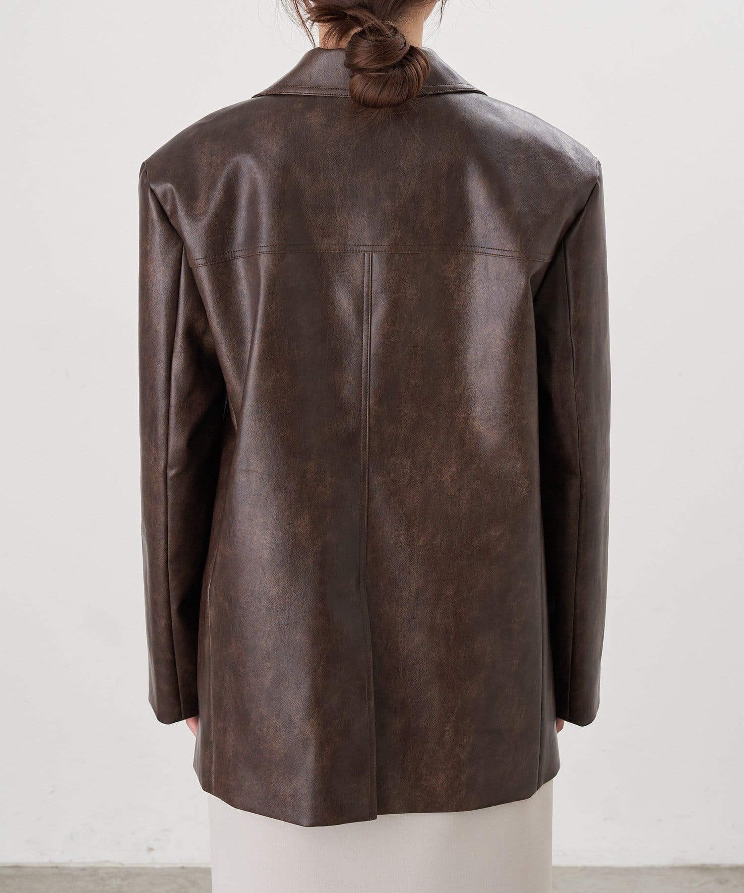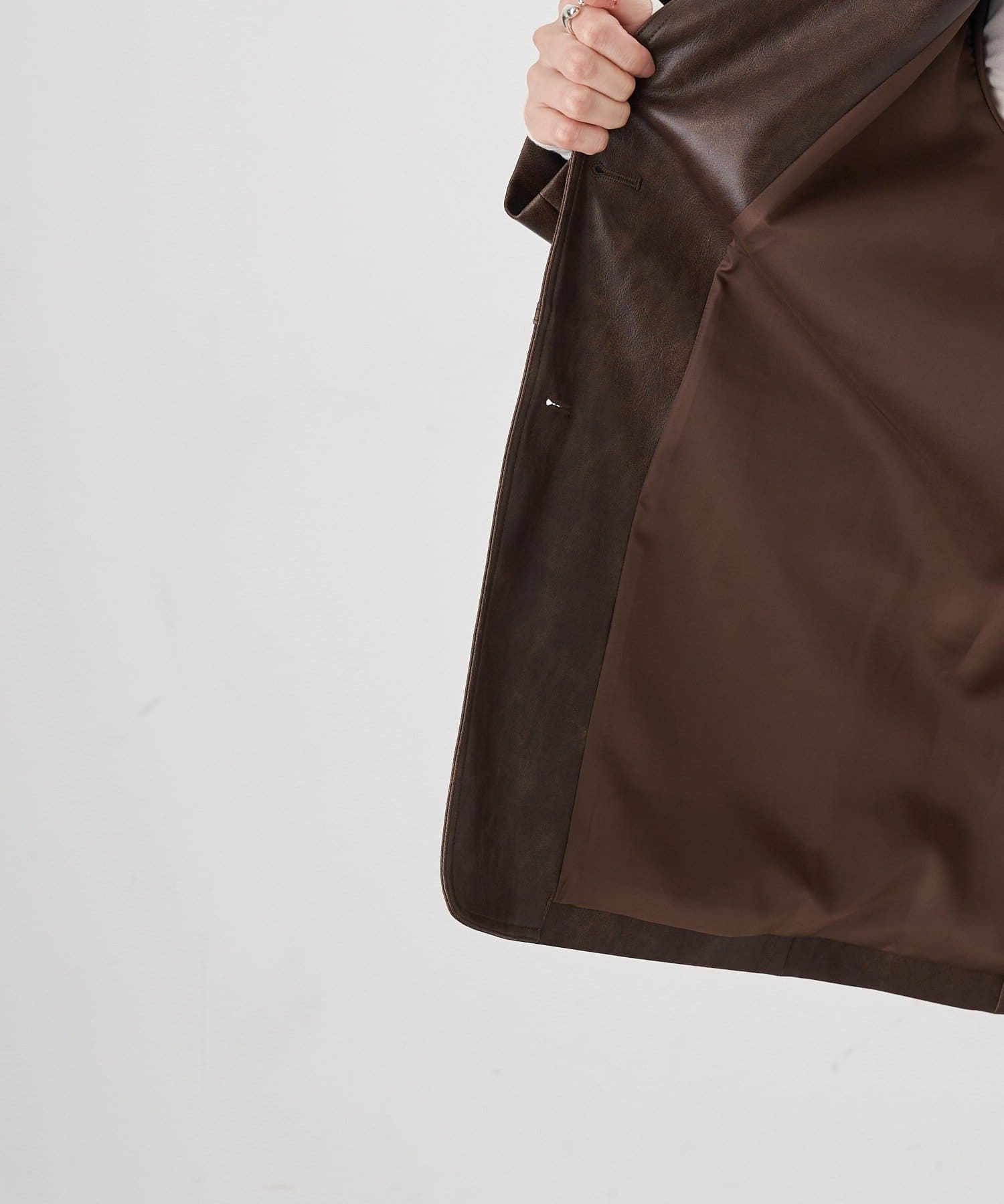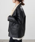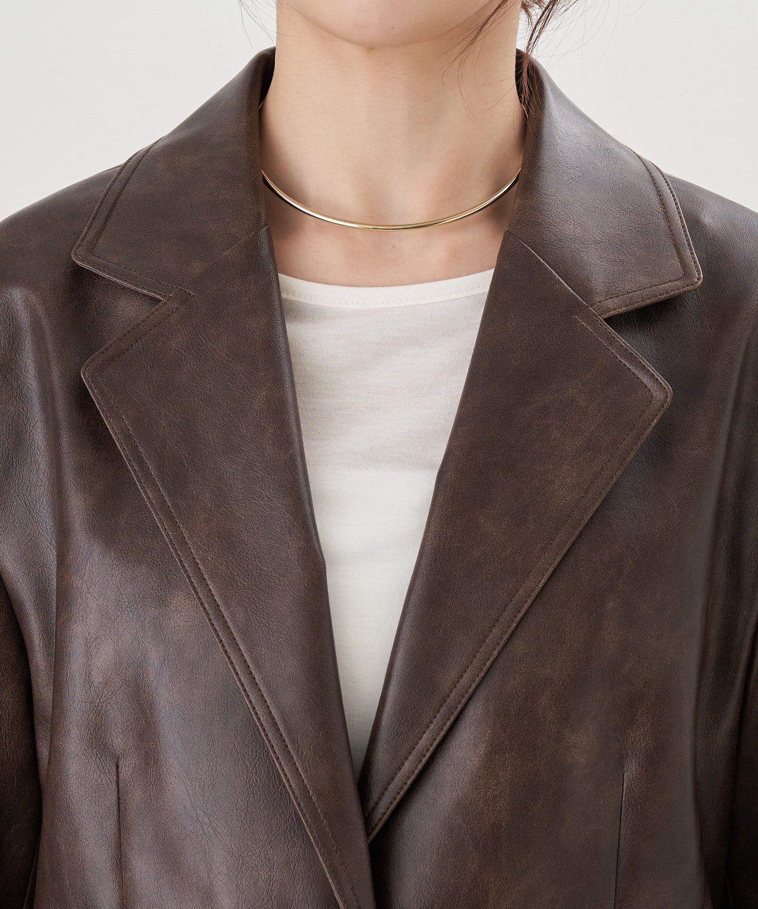 ・柔らかいフェイクレザーで仕上げたテーラードジャケットは今年らしいトレンドアイテム。