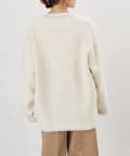 首回りをすっきりと見せてくれるノーカラーが大人っぽく、カジュアルにもきれいめにもマッチします。