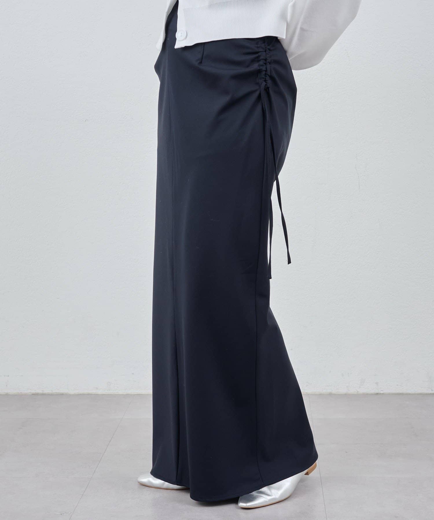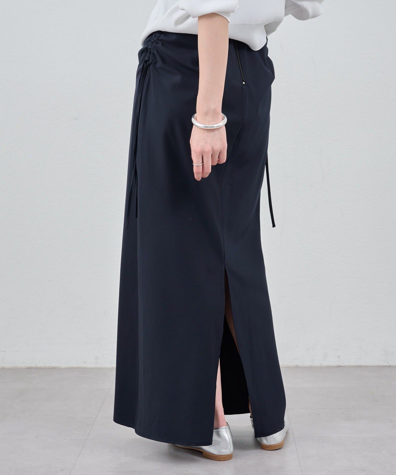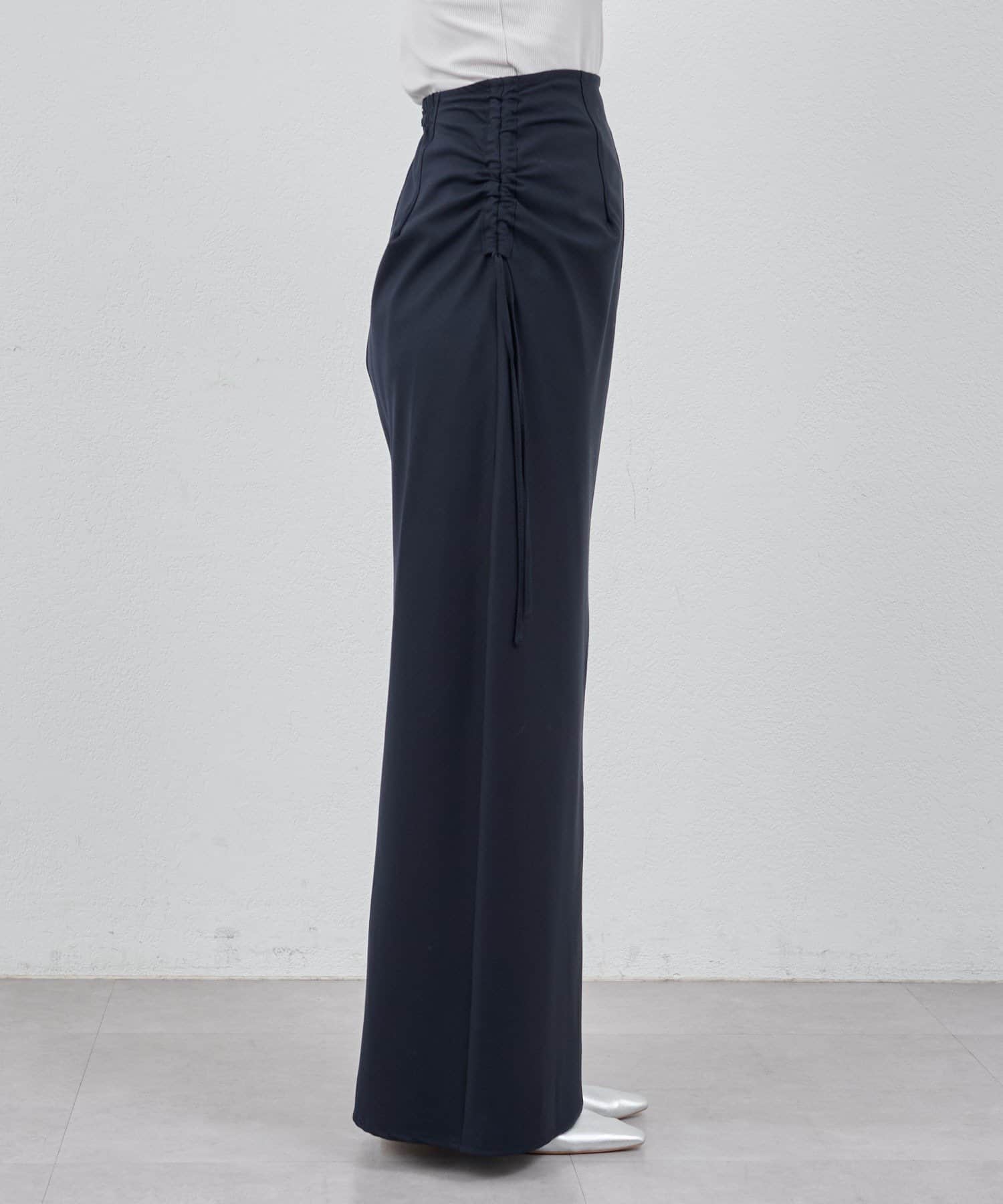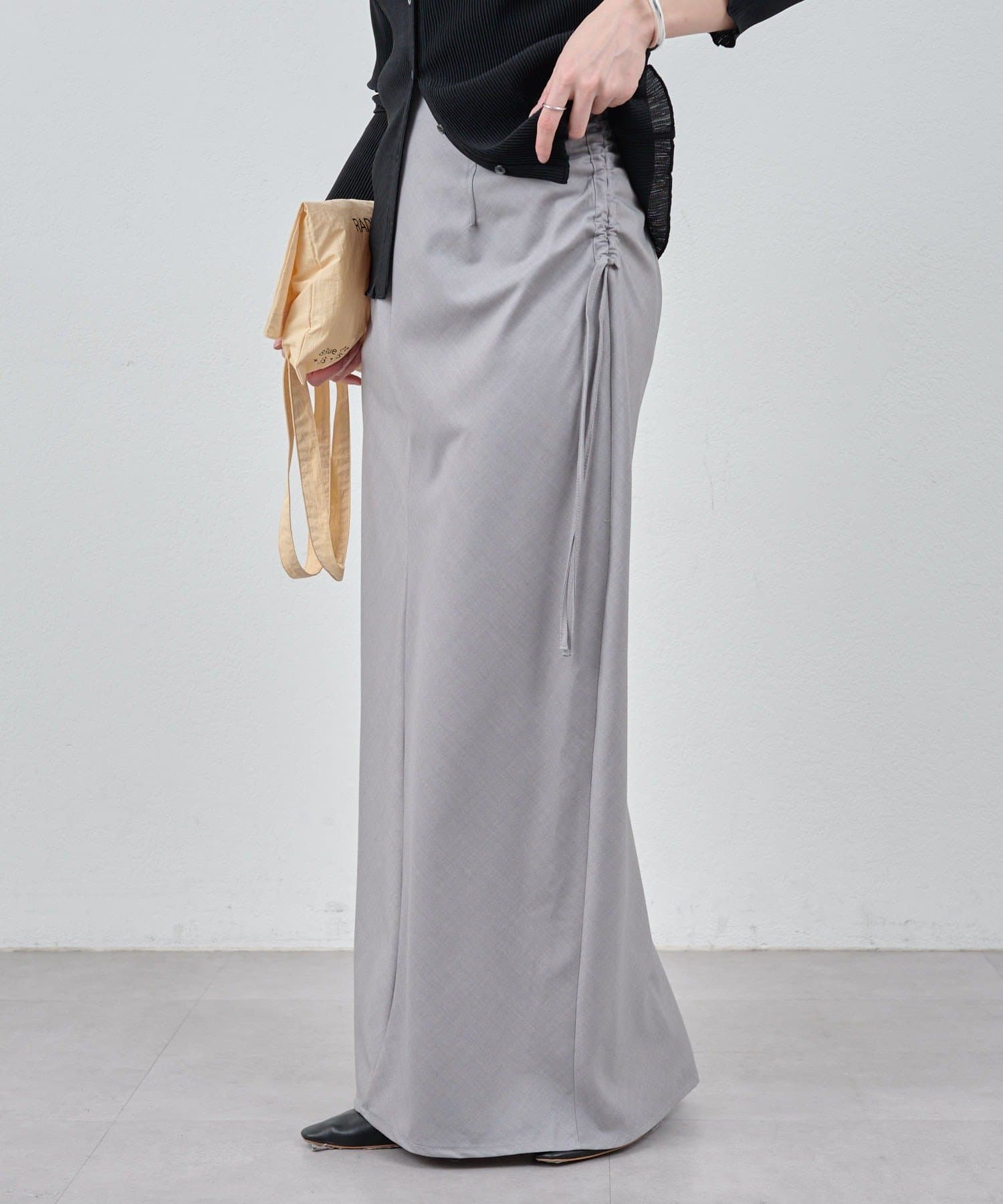 サイドに施したギャザーがデザインポイントのロングスカート。