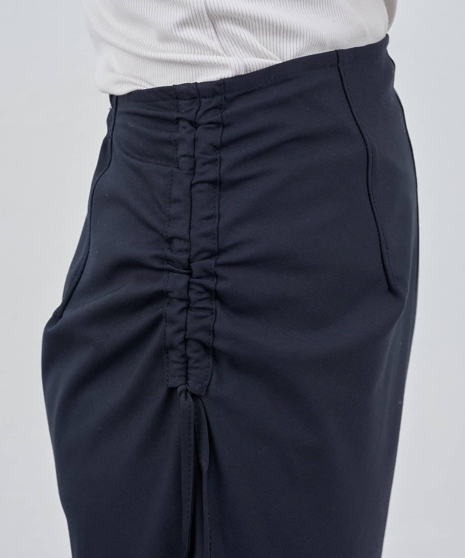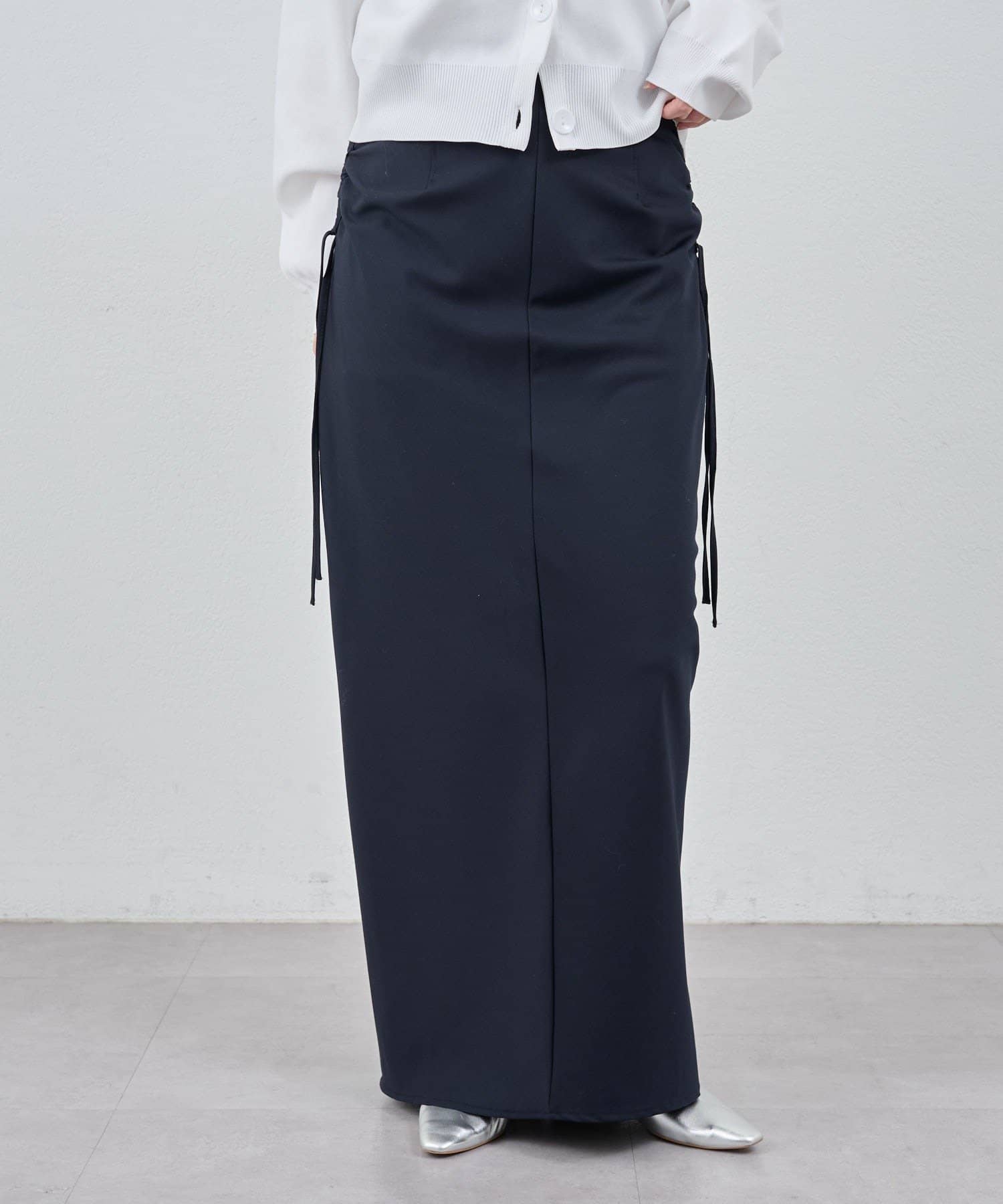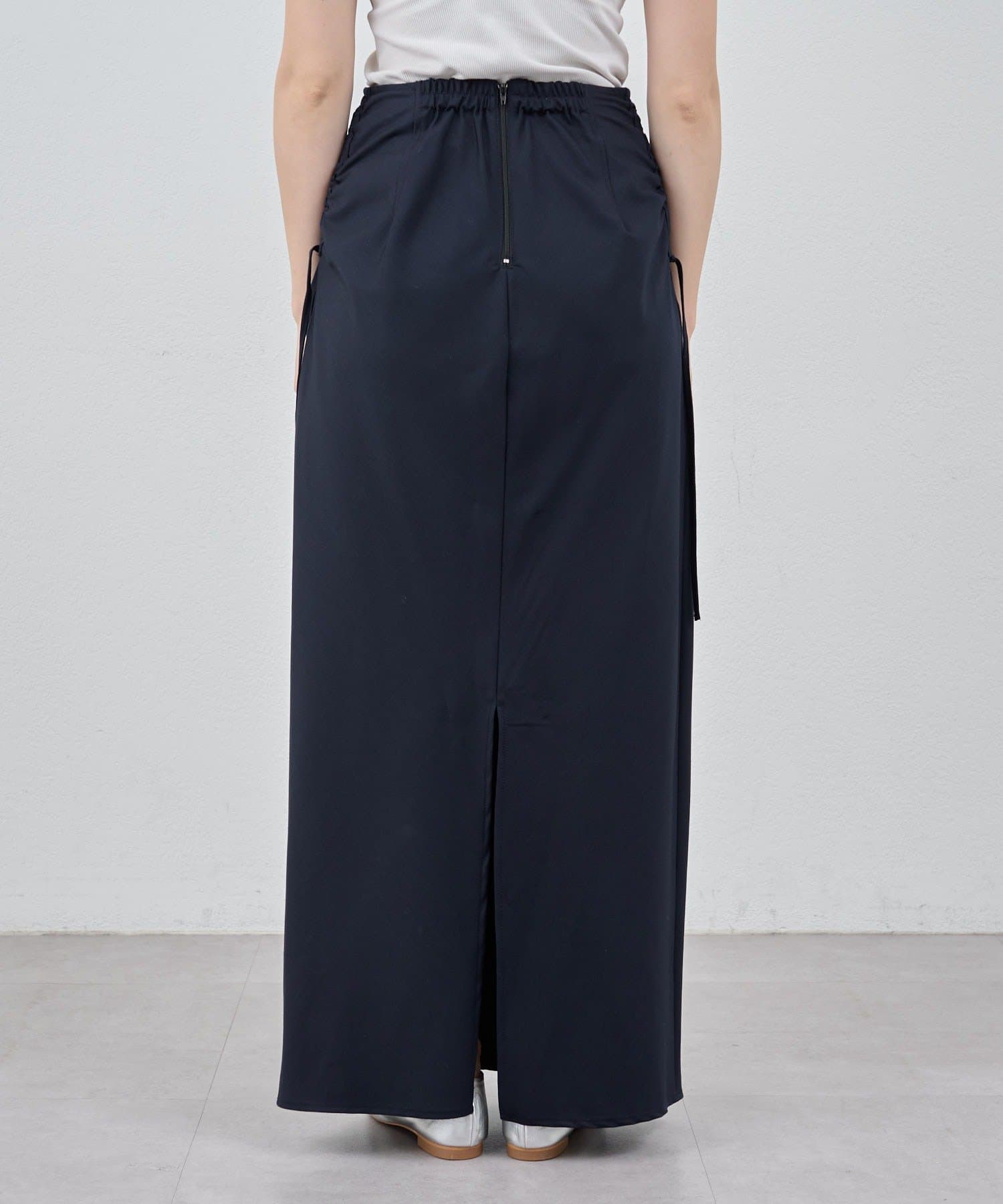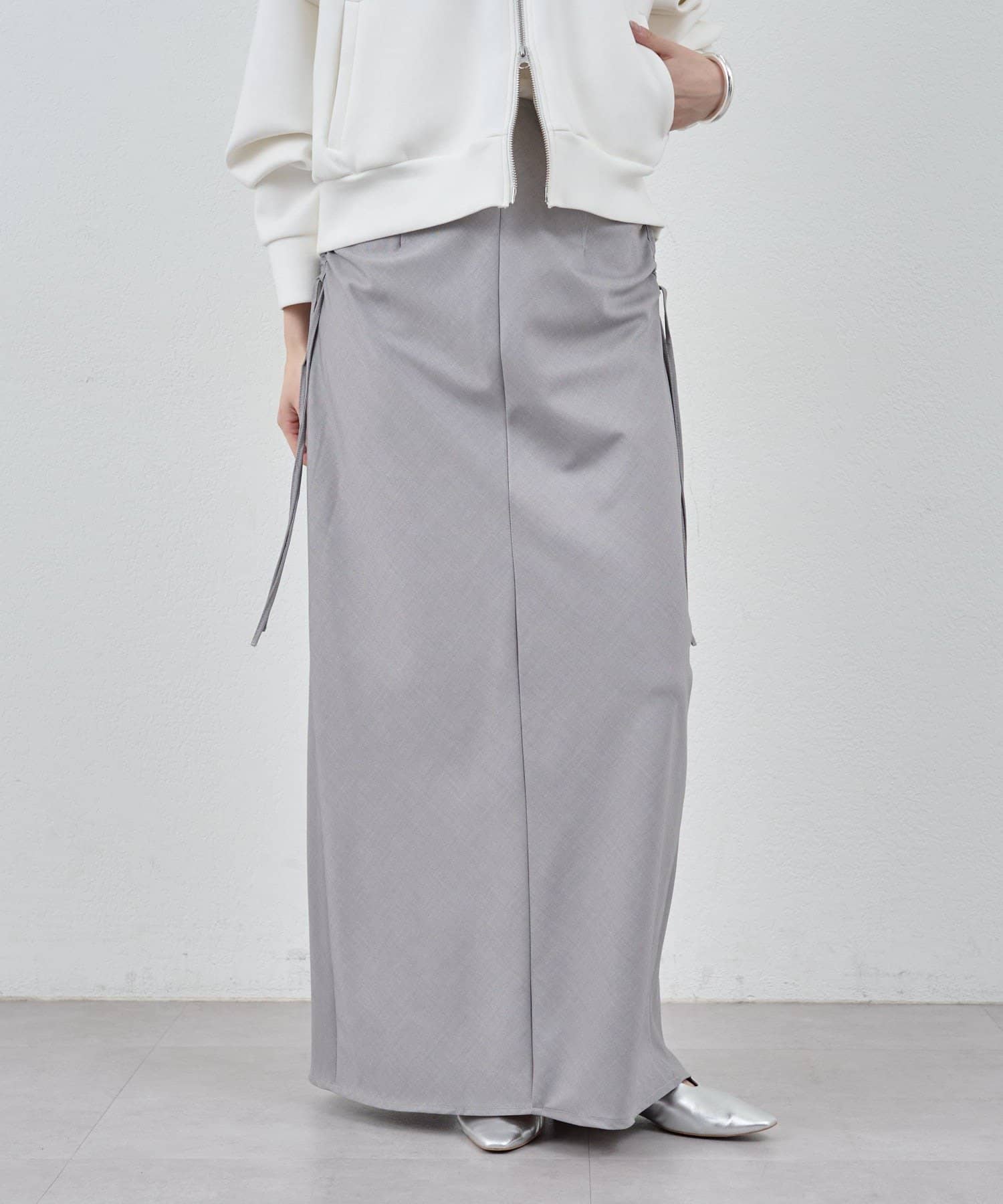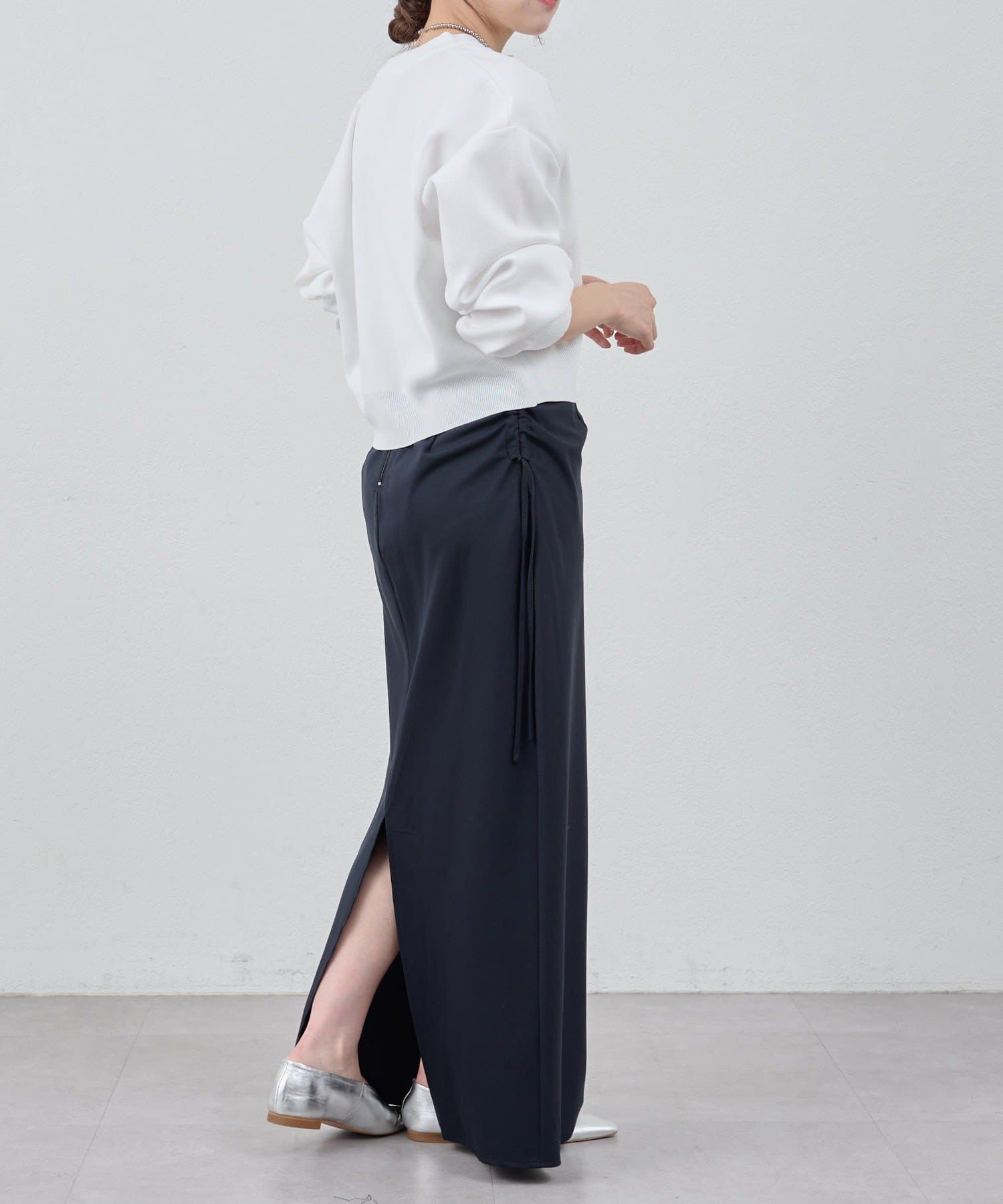 サイドに施したギャザーがデザインポイントのロングスカート。