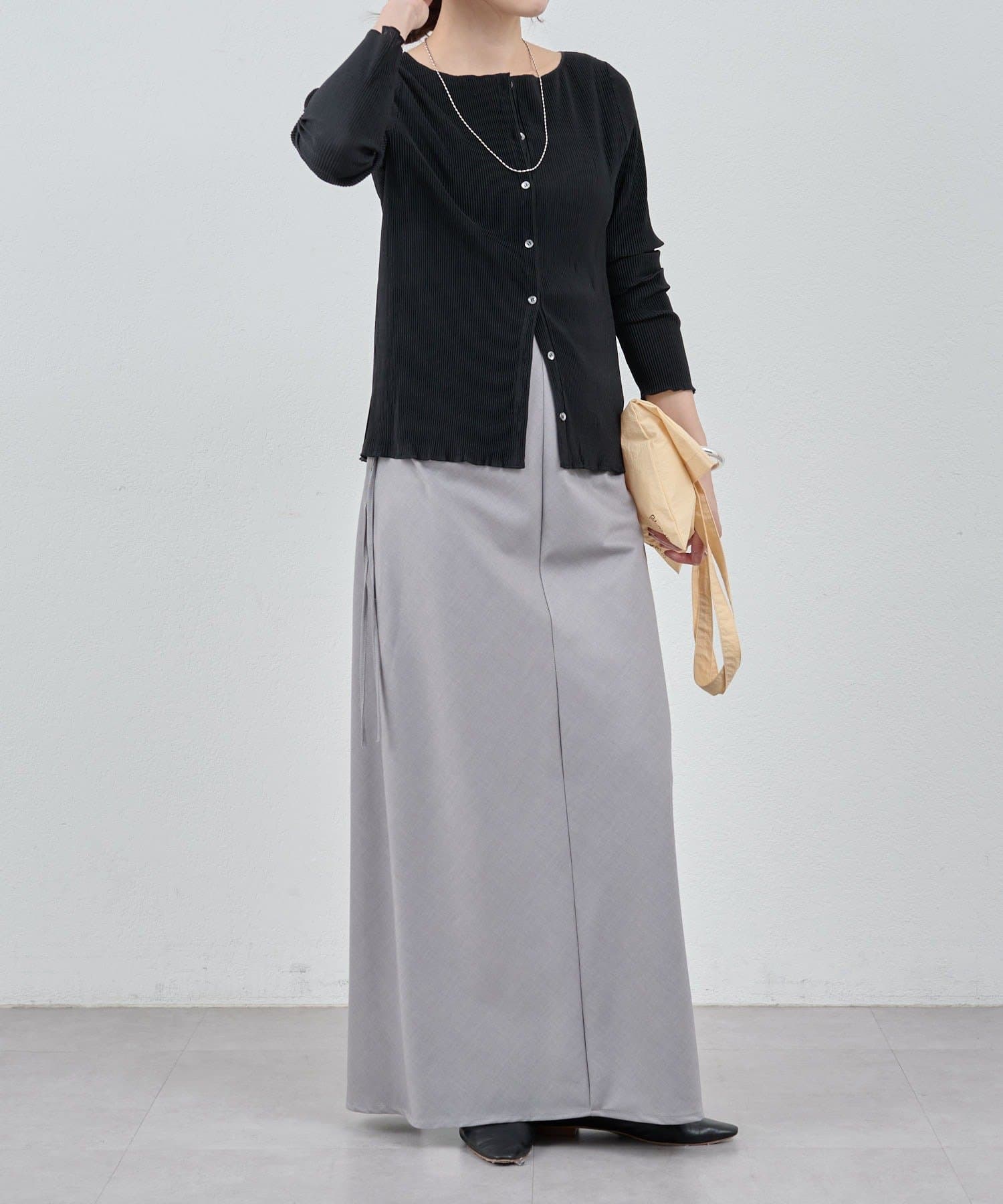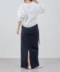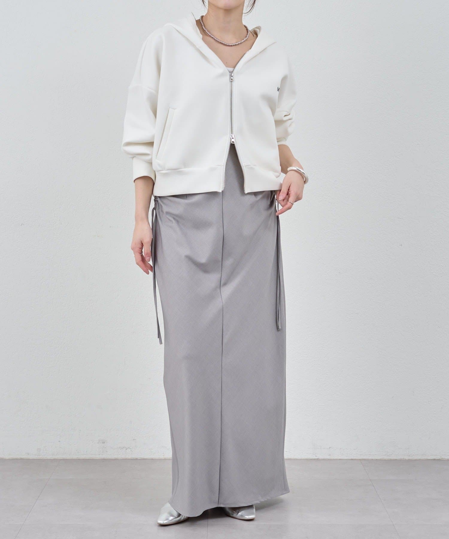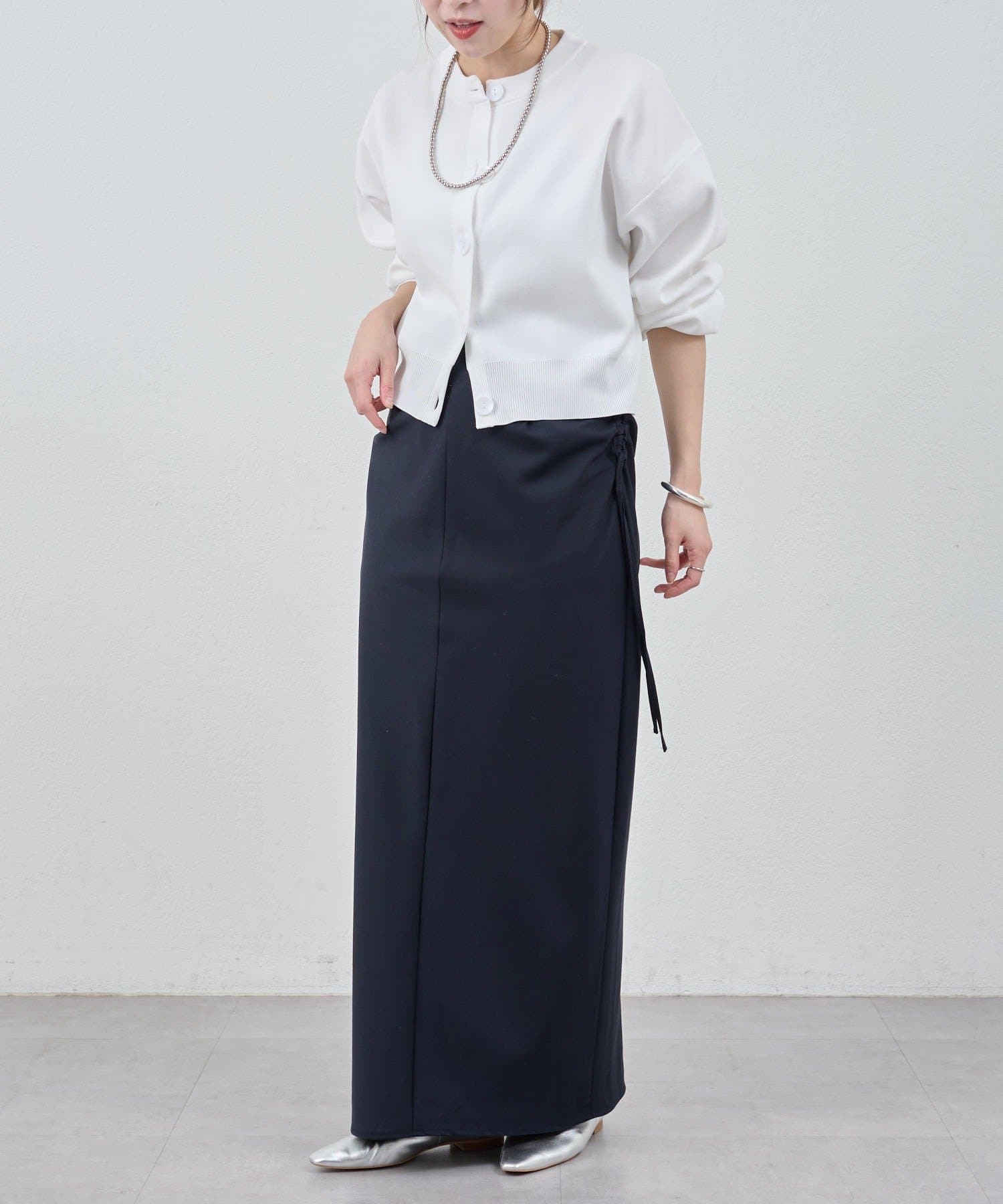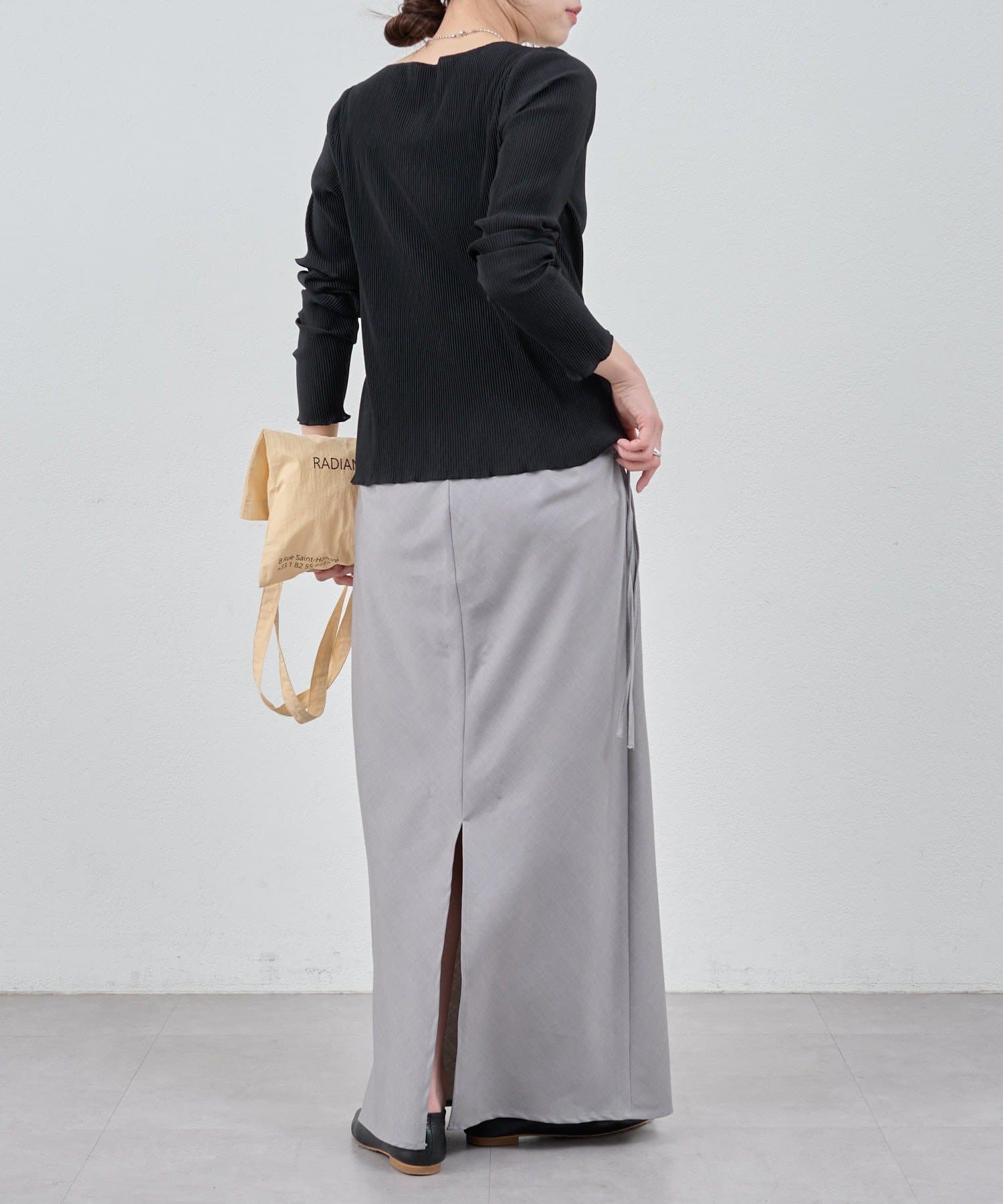 サイドに施したギャザーがデザインポイントのロングスカート。