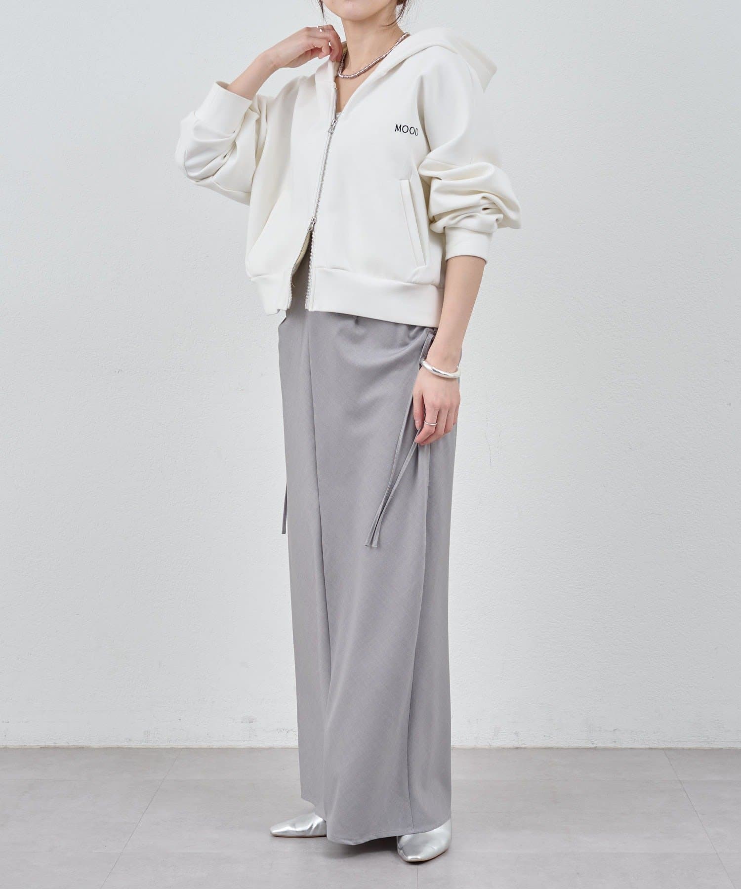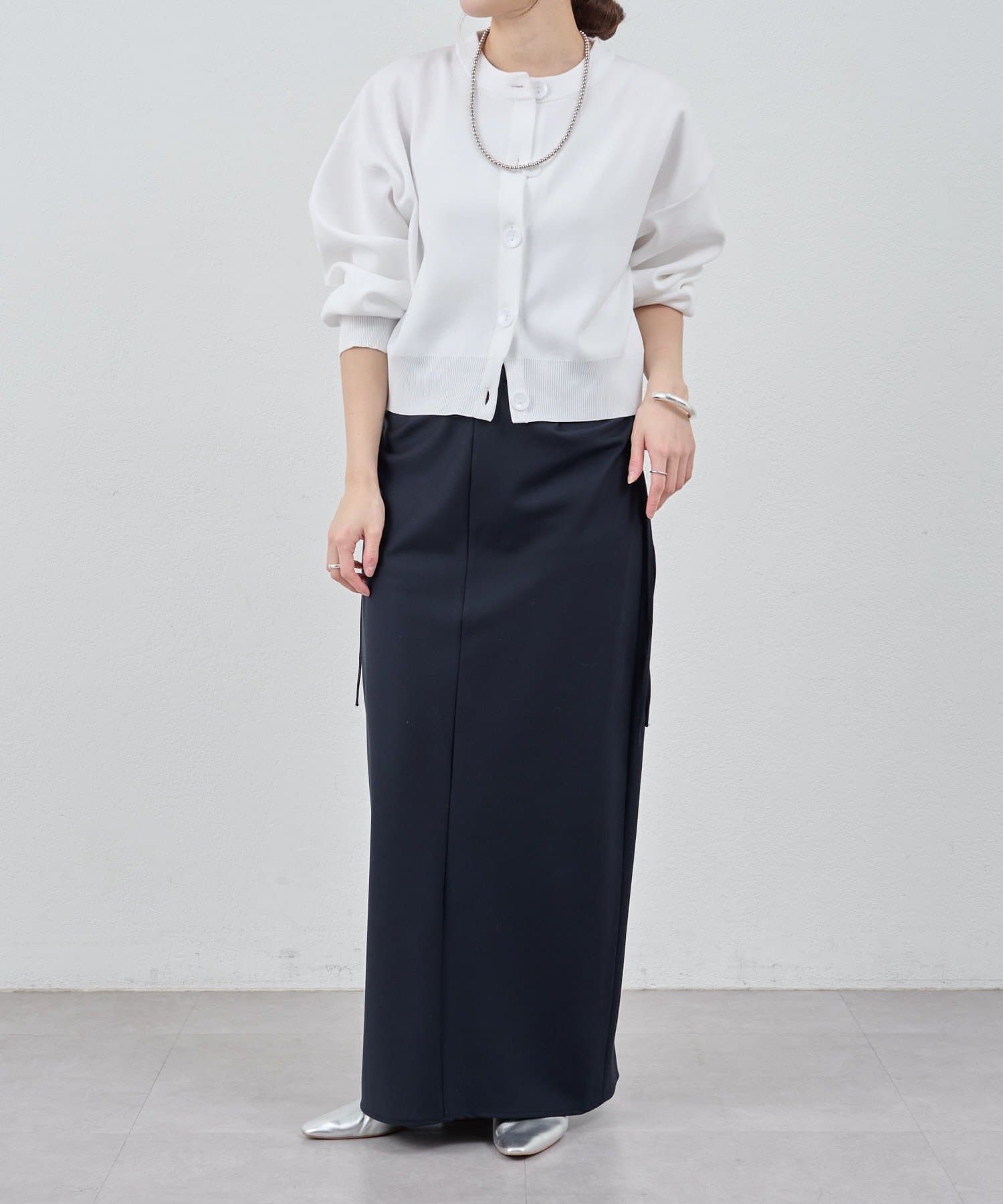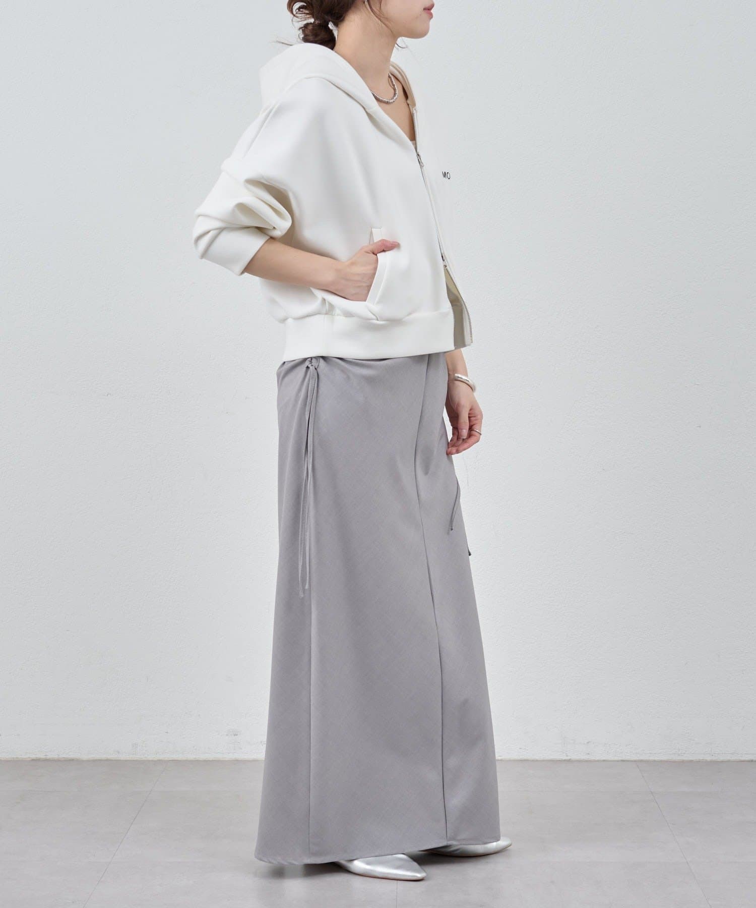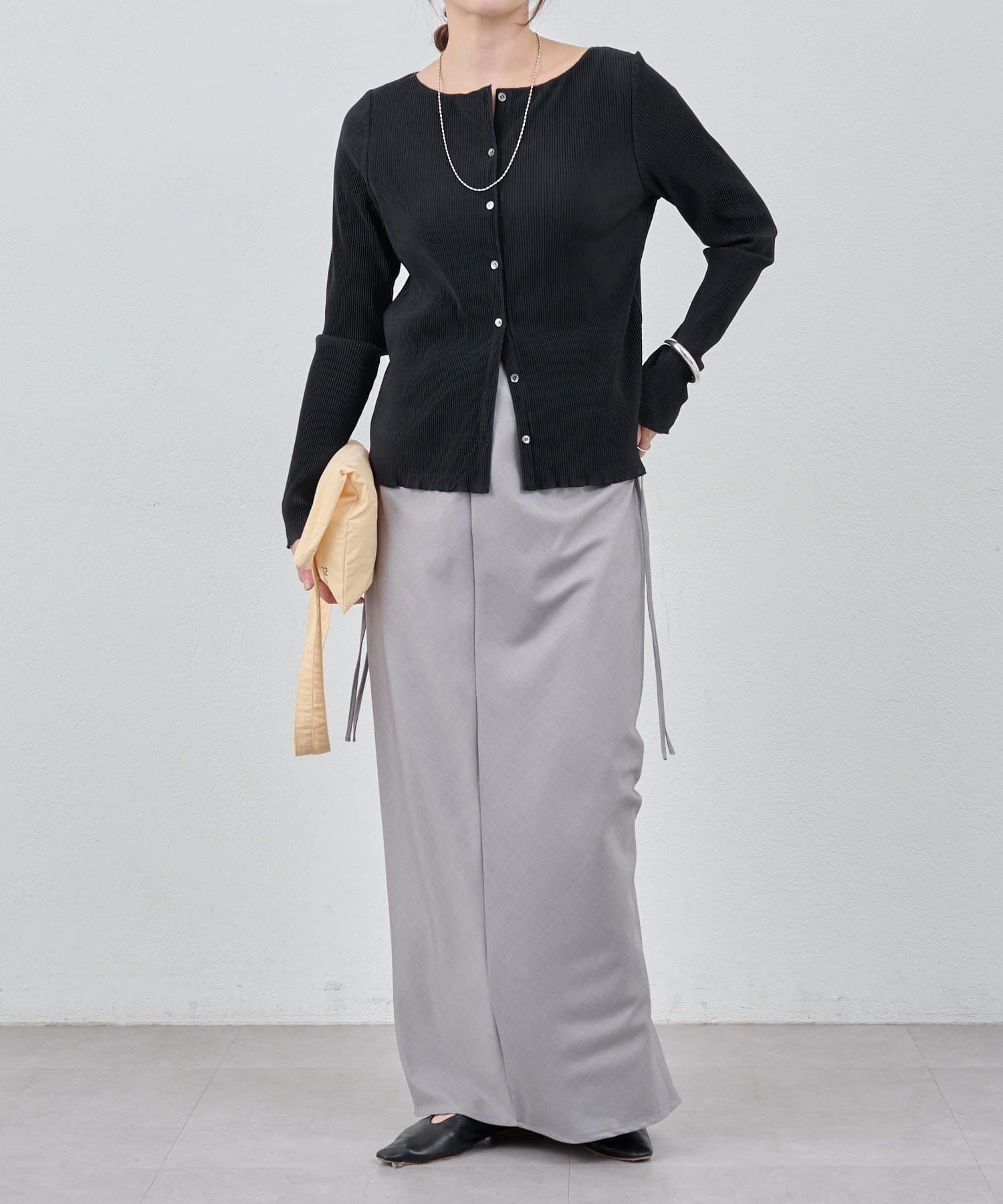 サイドに施したギャザーがデザインポイントのロングスカート。