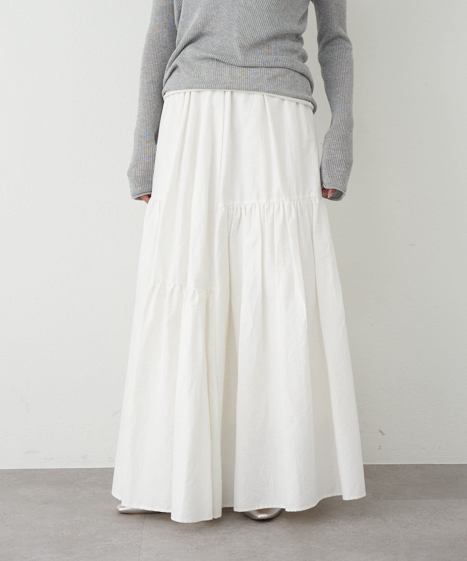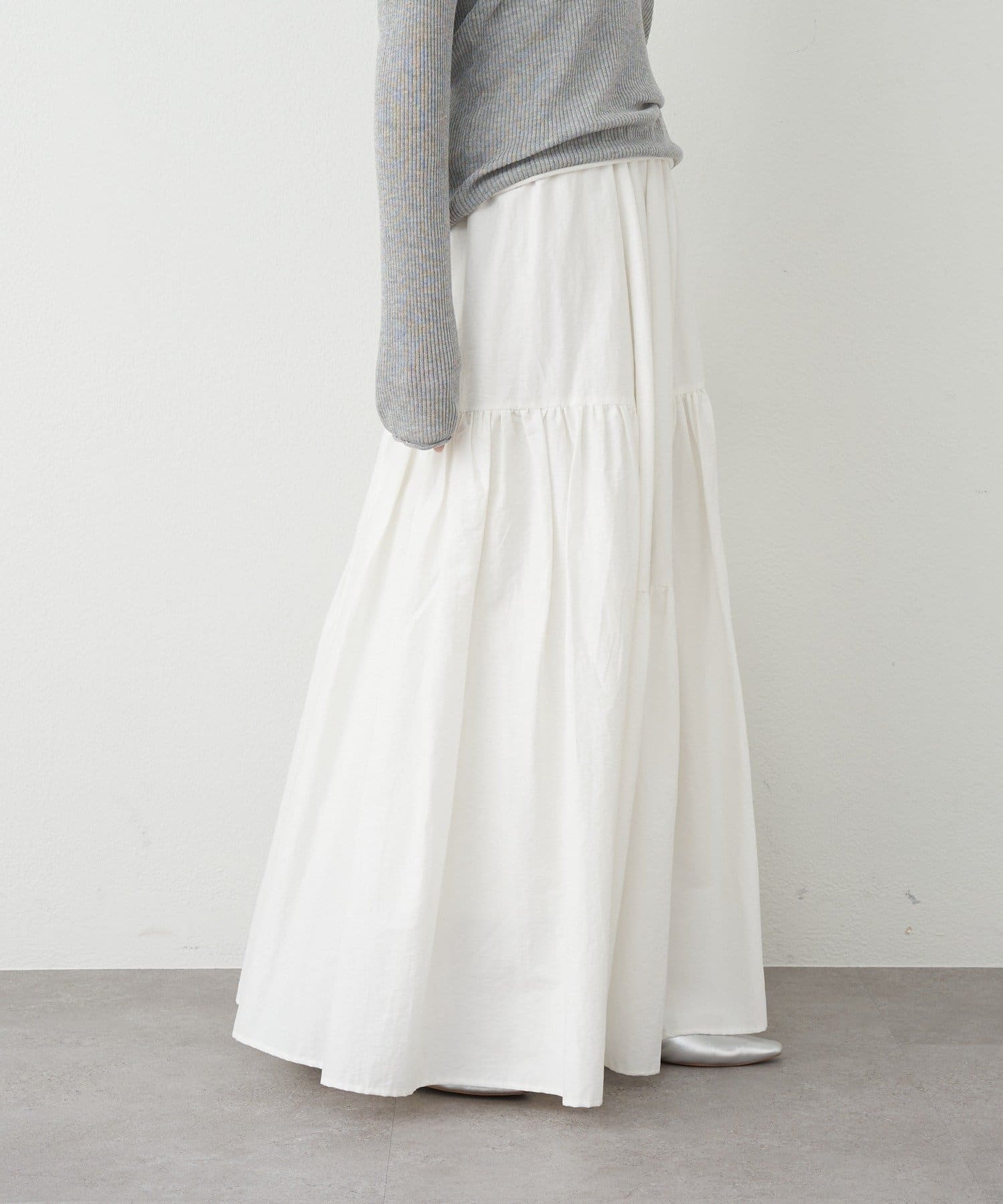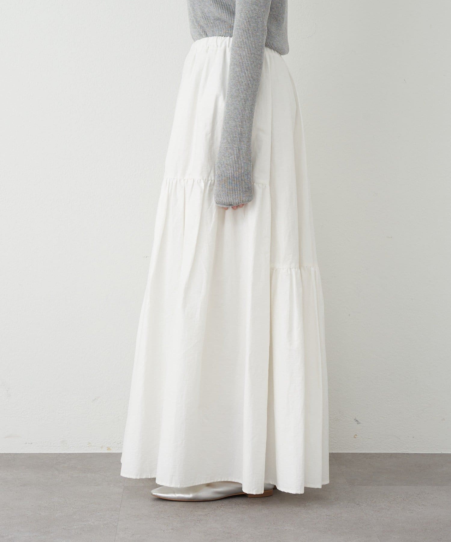 シルエットが魅力的な華やぎを添えるロングスカート