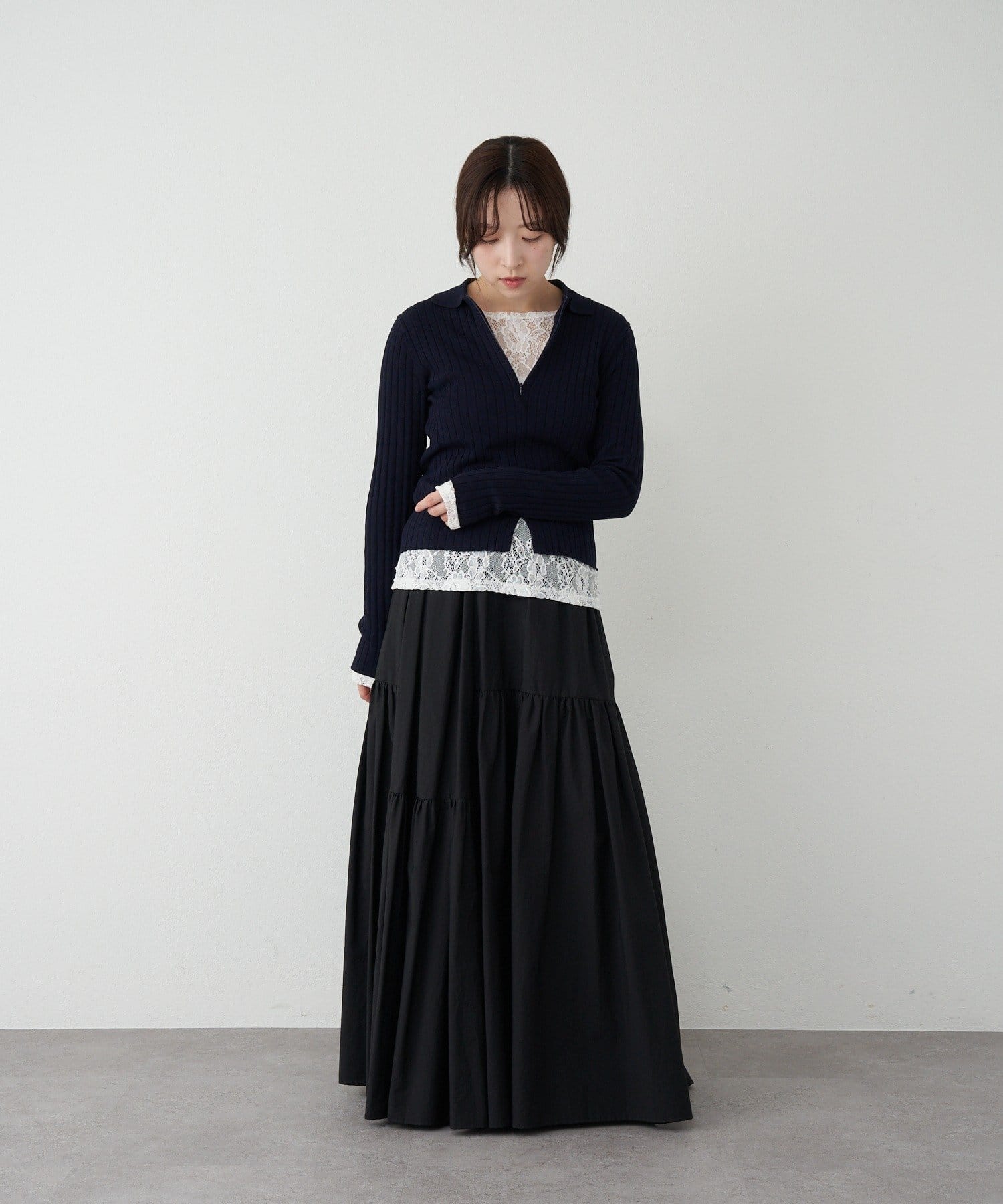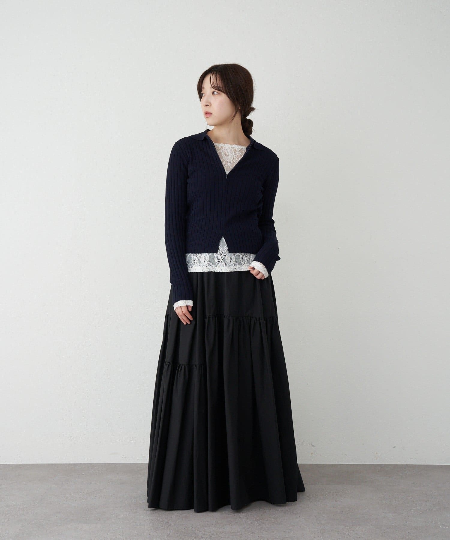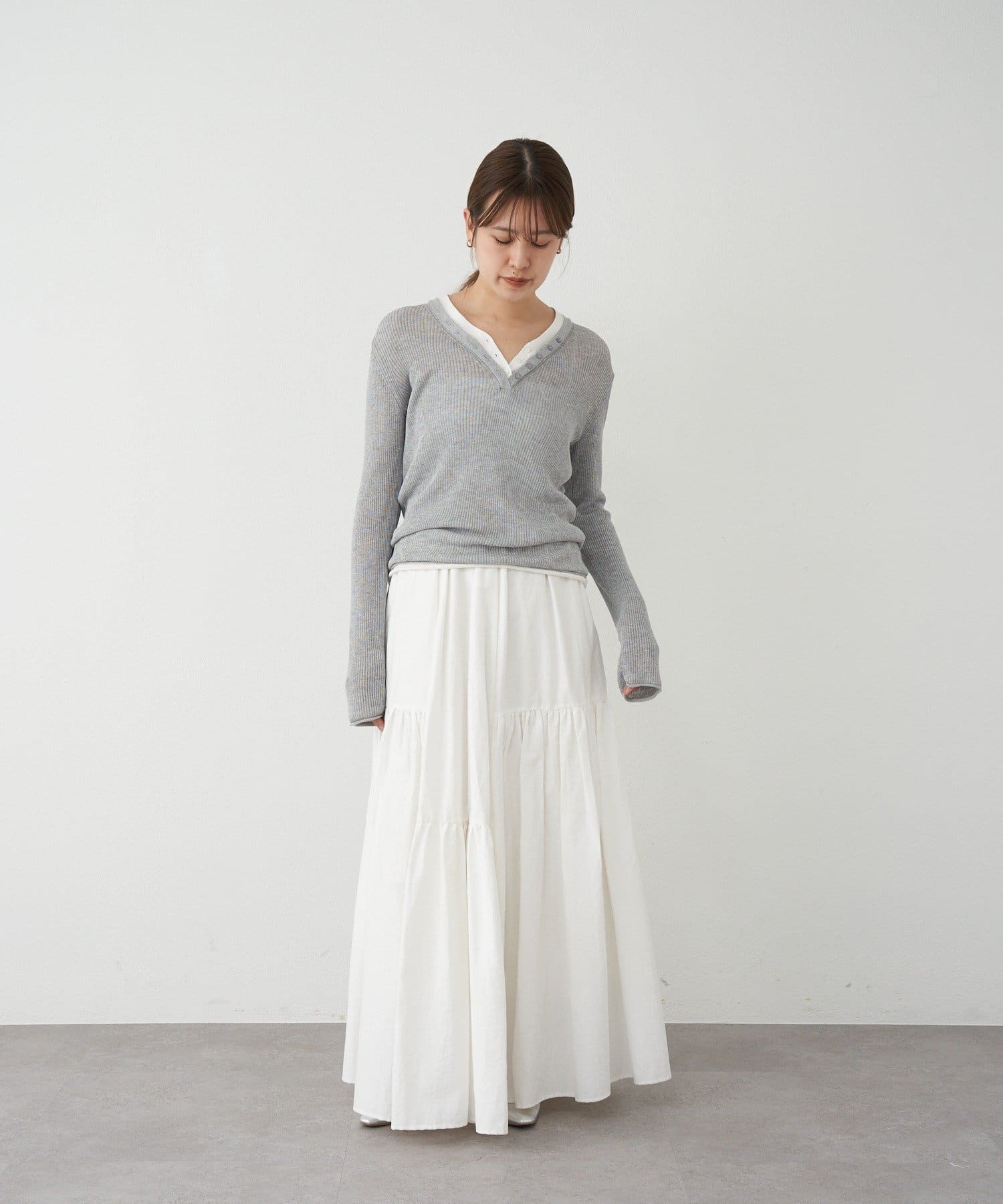 シルエットが魅力的な華やぎを添えるロングスカート