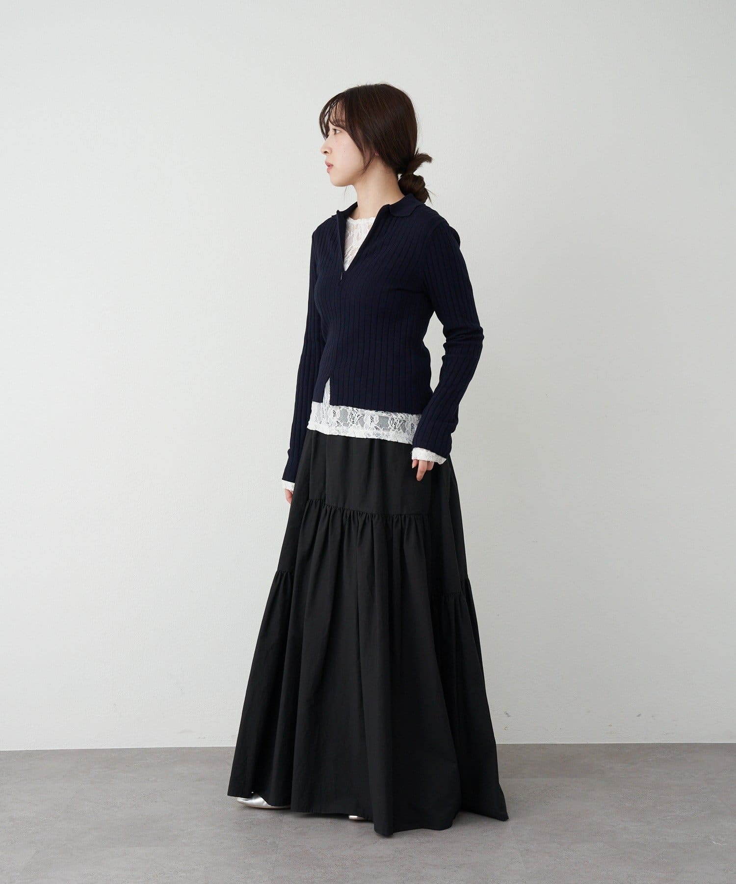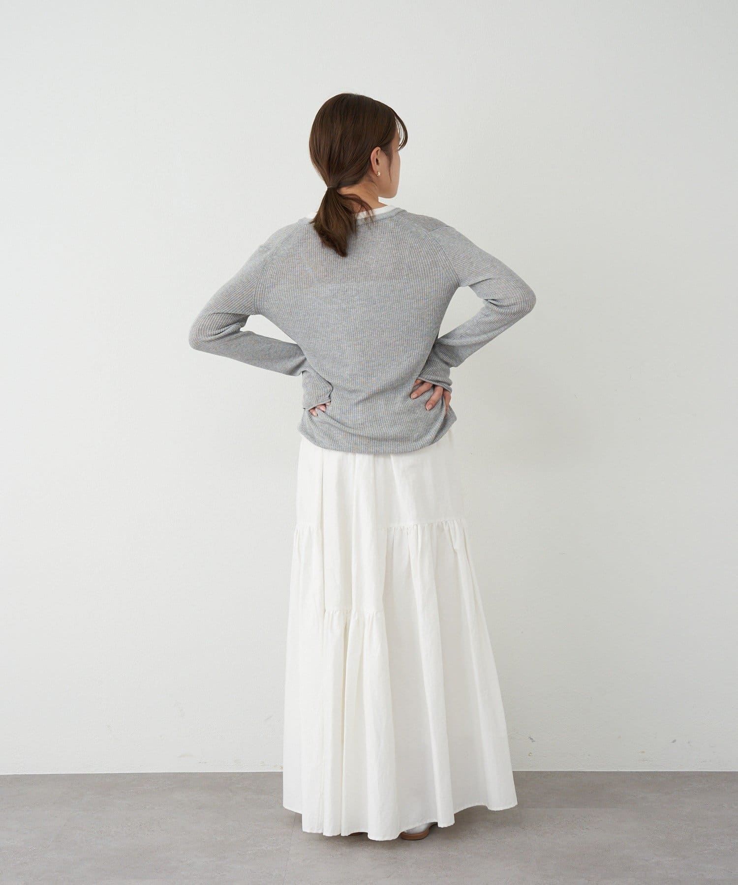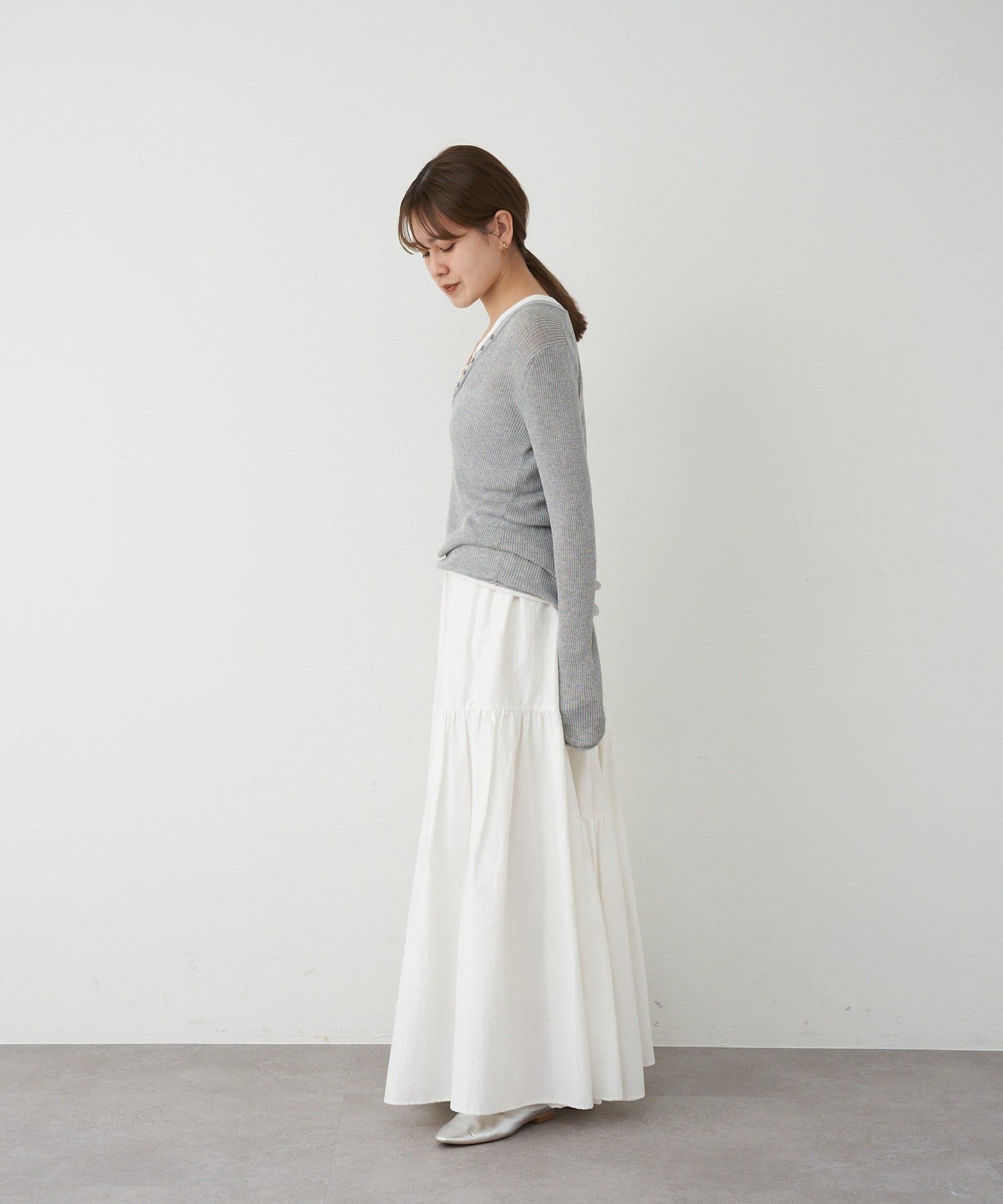 歩くたびに揺れるシルエットが、コーディネートをさりげなく華やかに演出します。