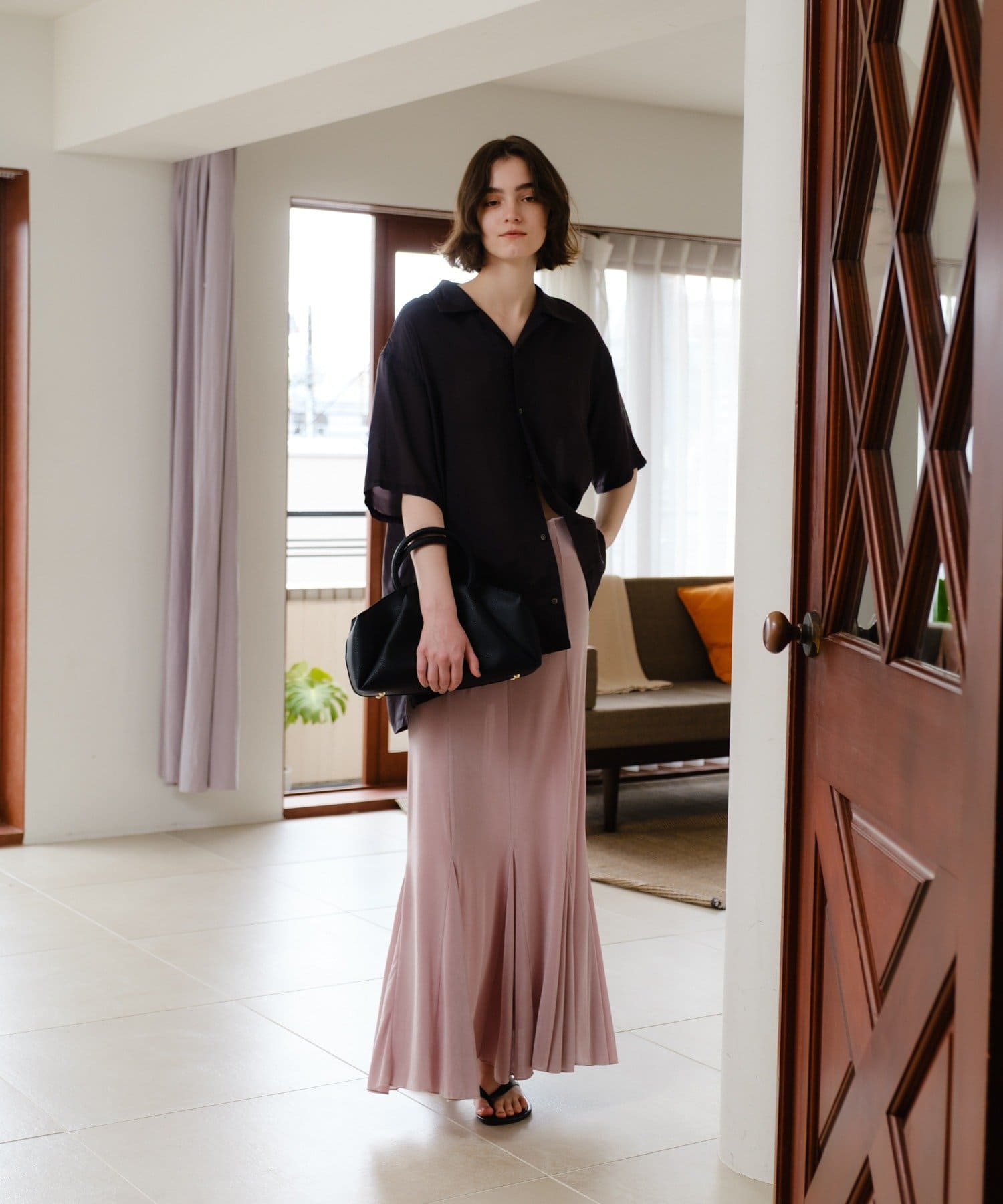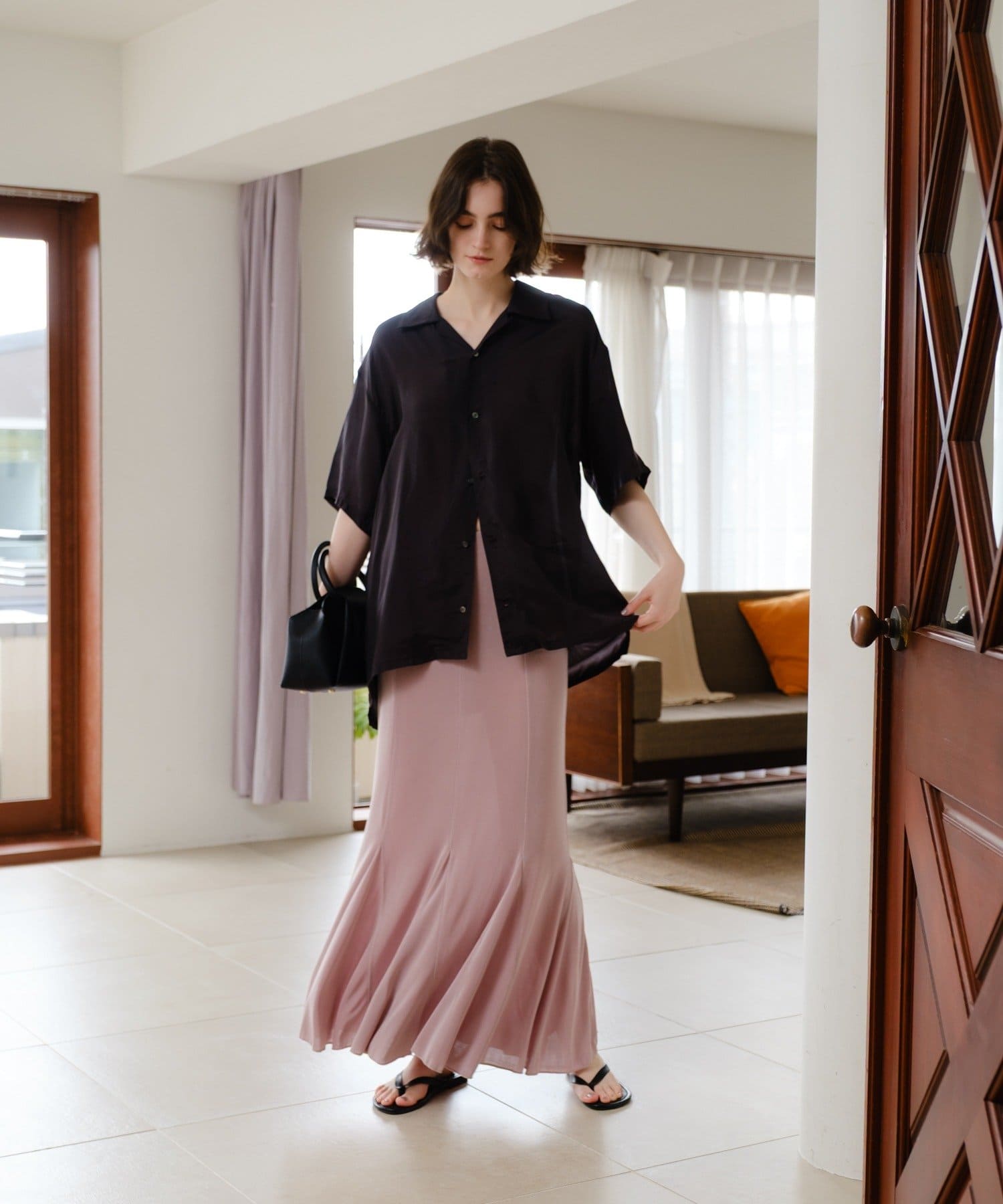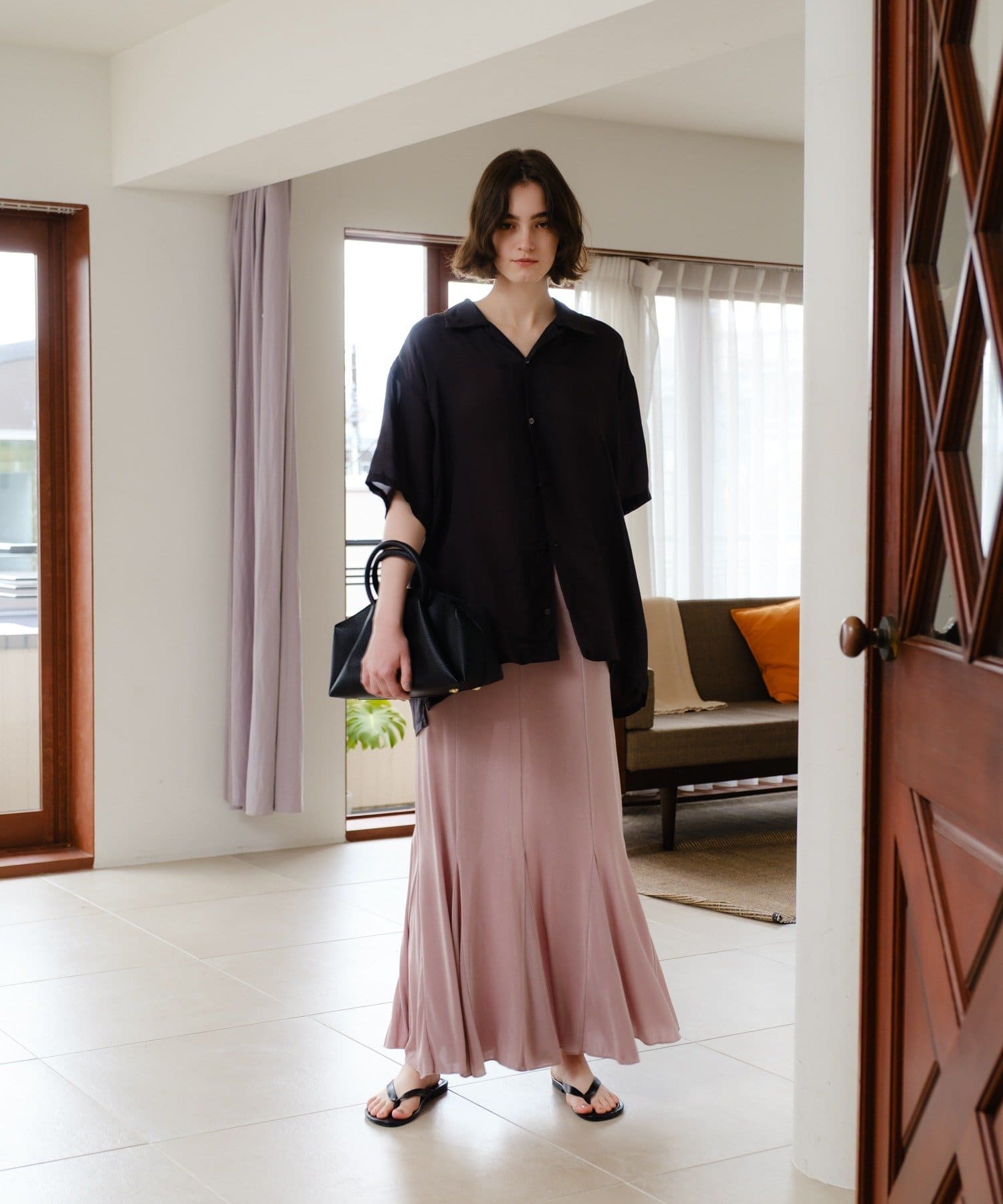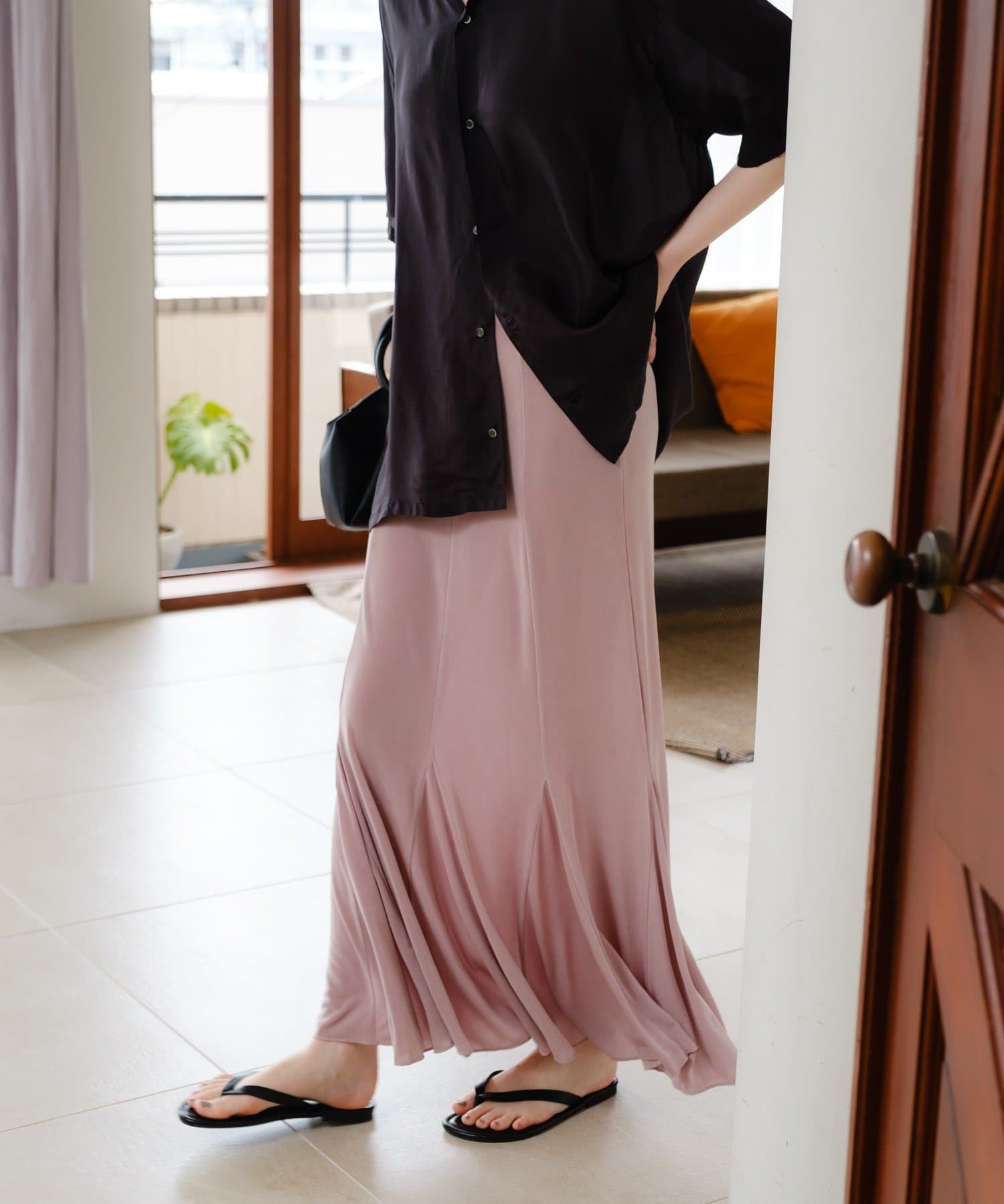カラーはモードなブラックとくすみ感のある取り入れやすいピンクの2色展開。ピンクはやや腰回りに透け感が出ますので、インナーショーツを重ねていただくのが安心です。