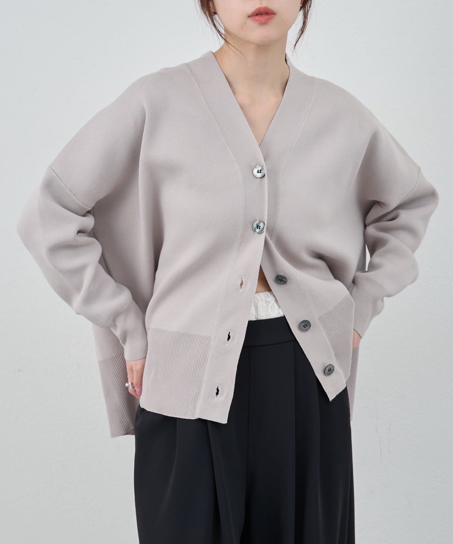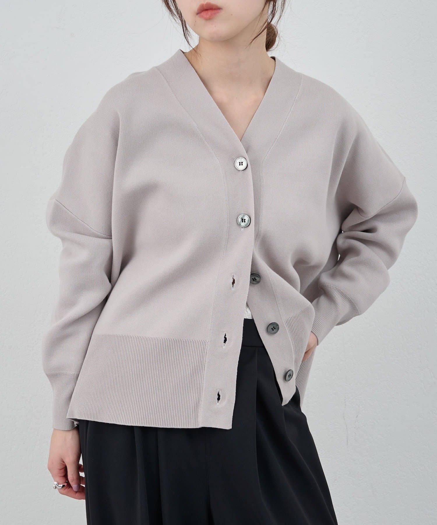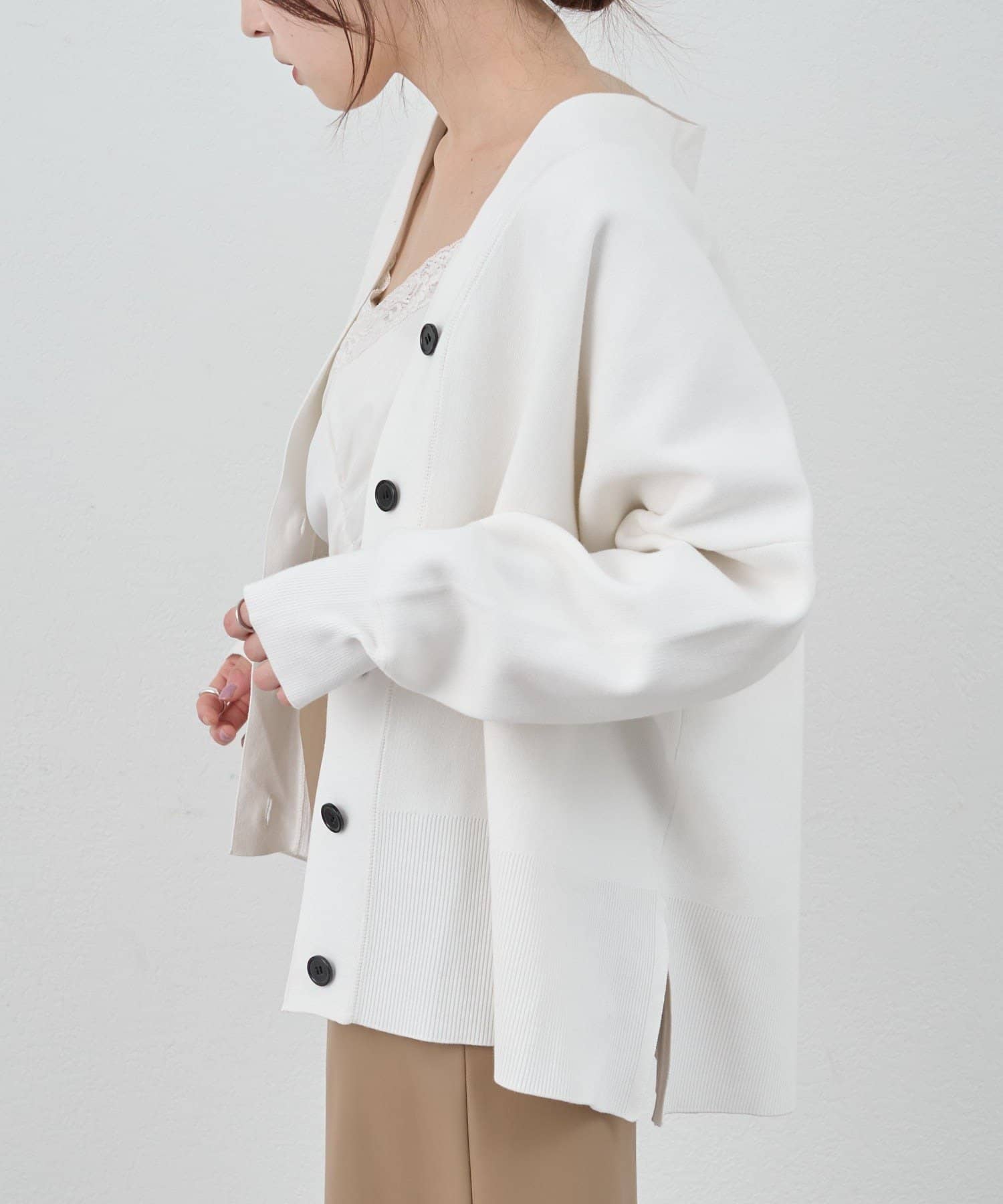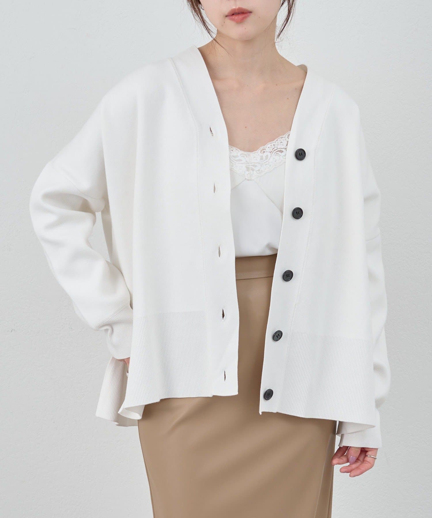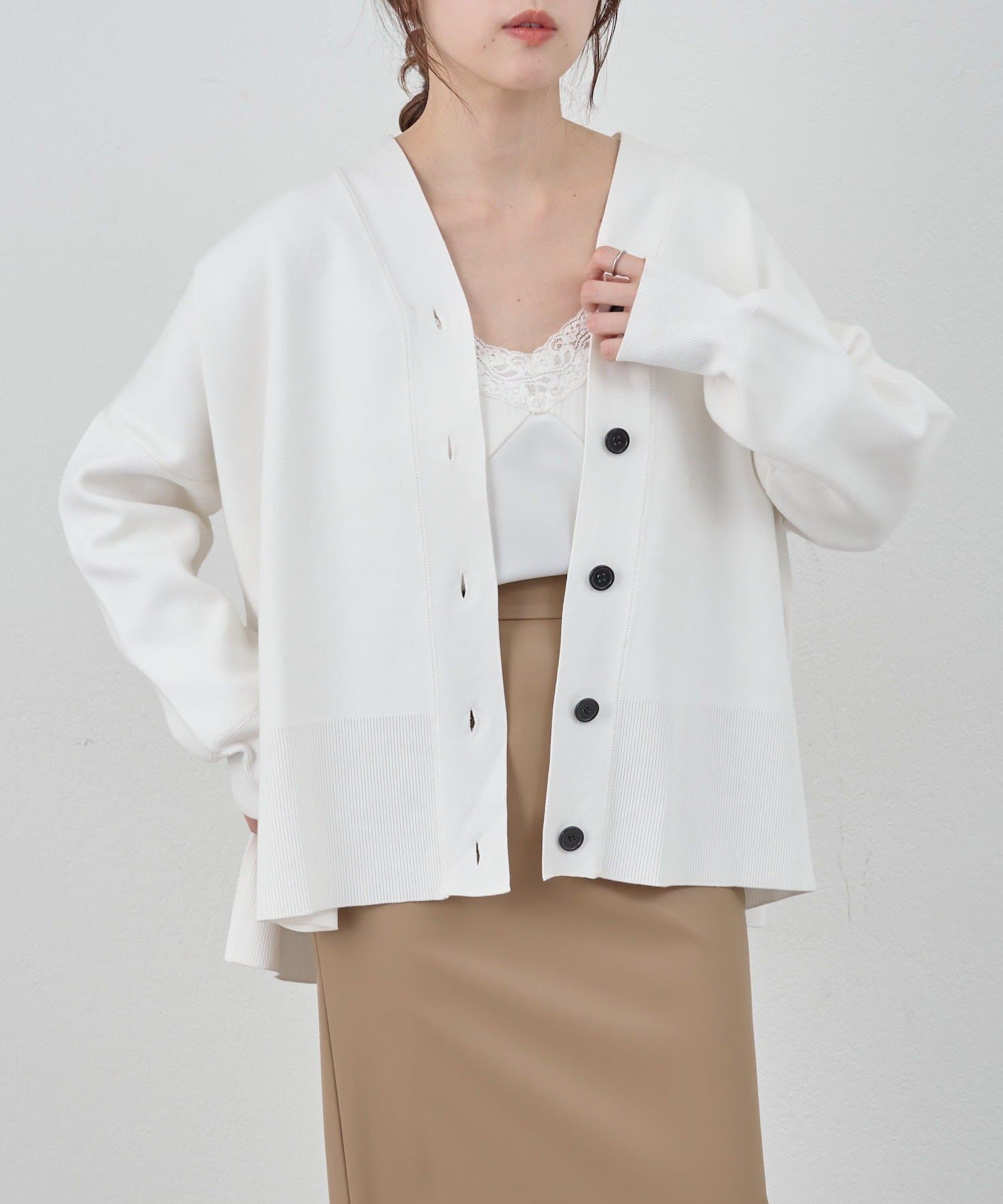 春の羽織りに最適なニットカーディガン。