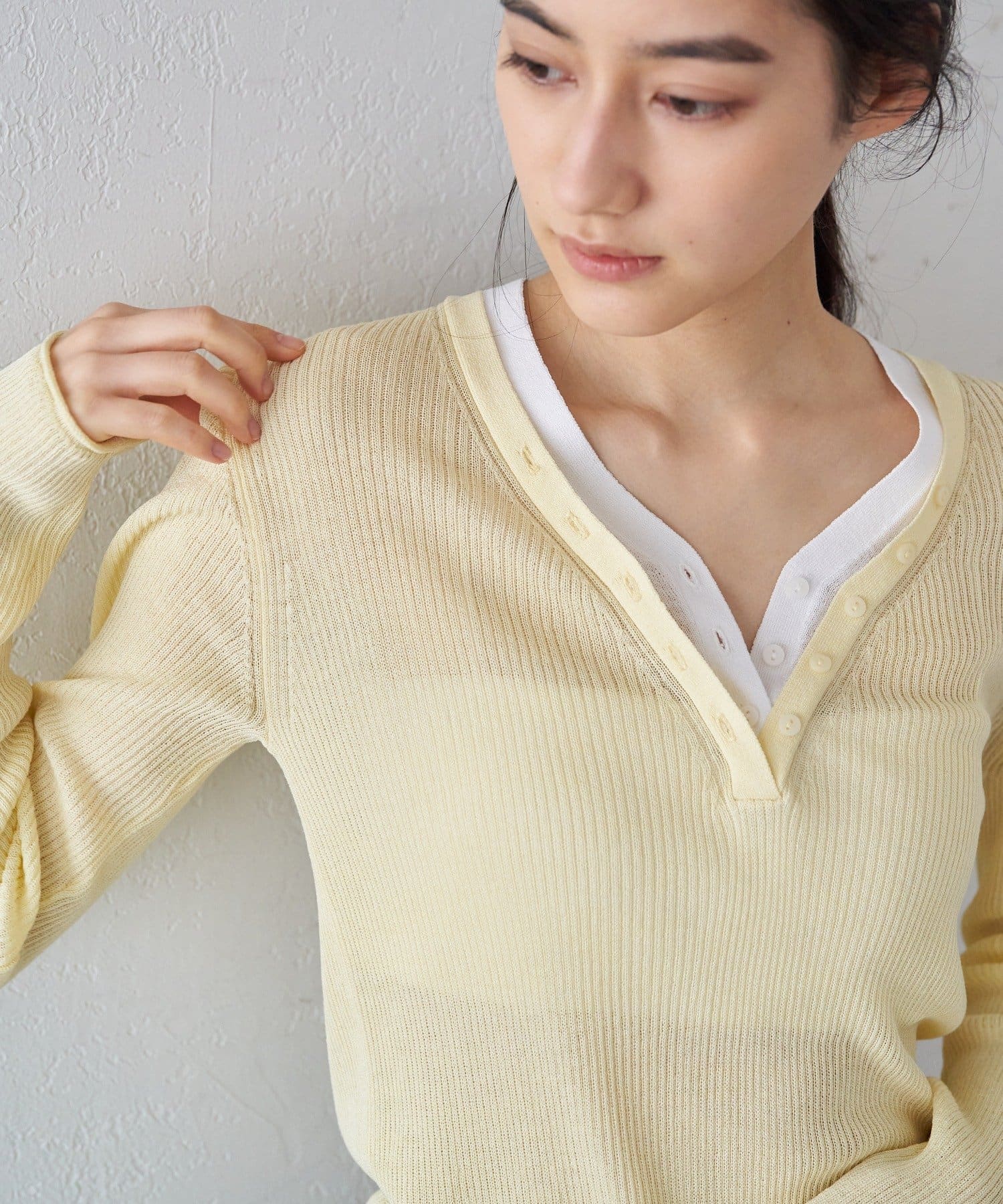 TOP > SHENERY > レディース > トップス > ニット/セーター > 【26SS予約】ヘンリーネックレイヤードニット
