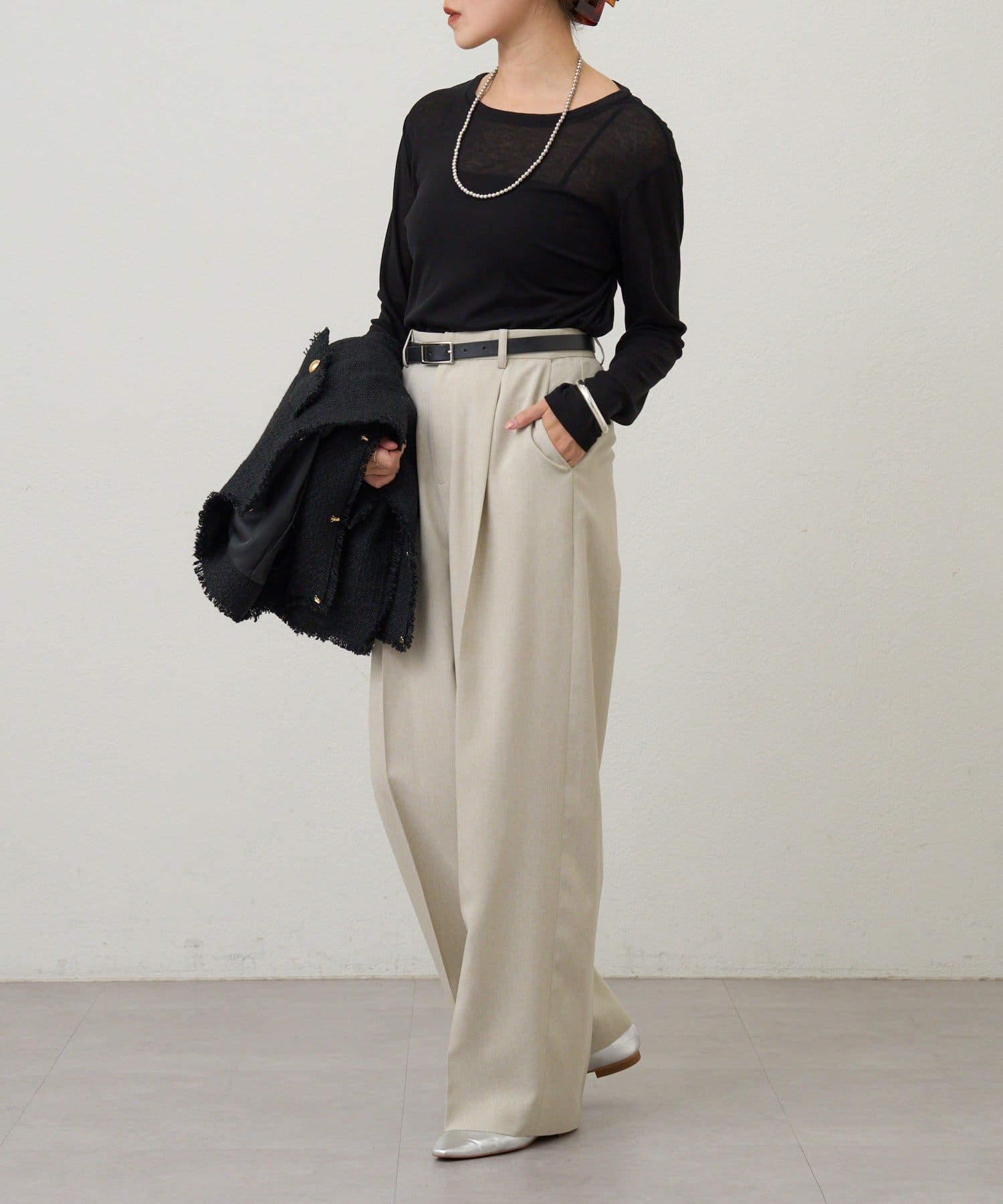 シンプルで着回し力が高く、デイリーからオフィスまで幅広いシーンに活躍。