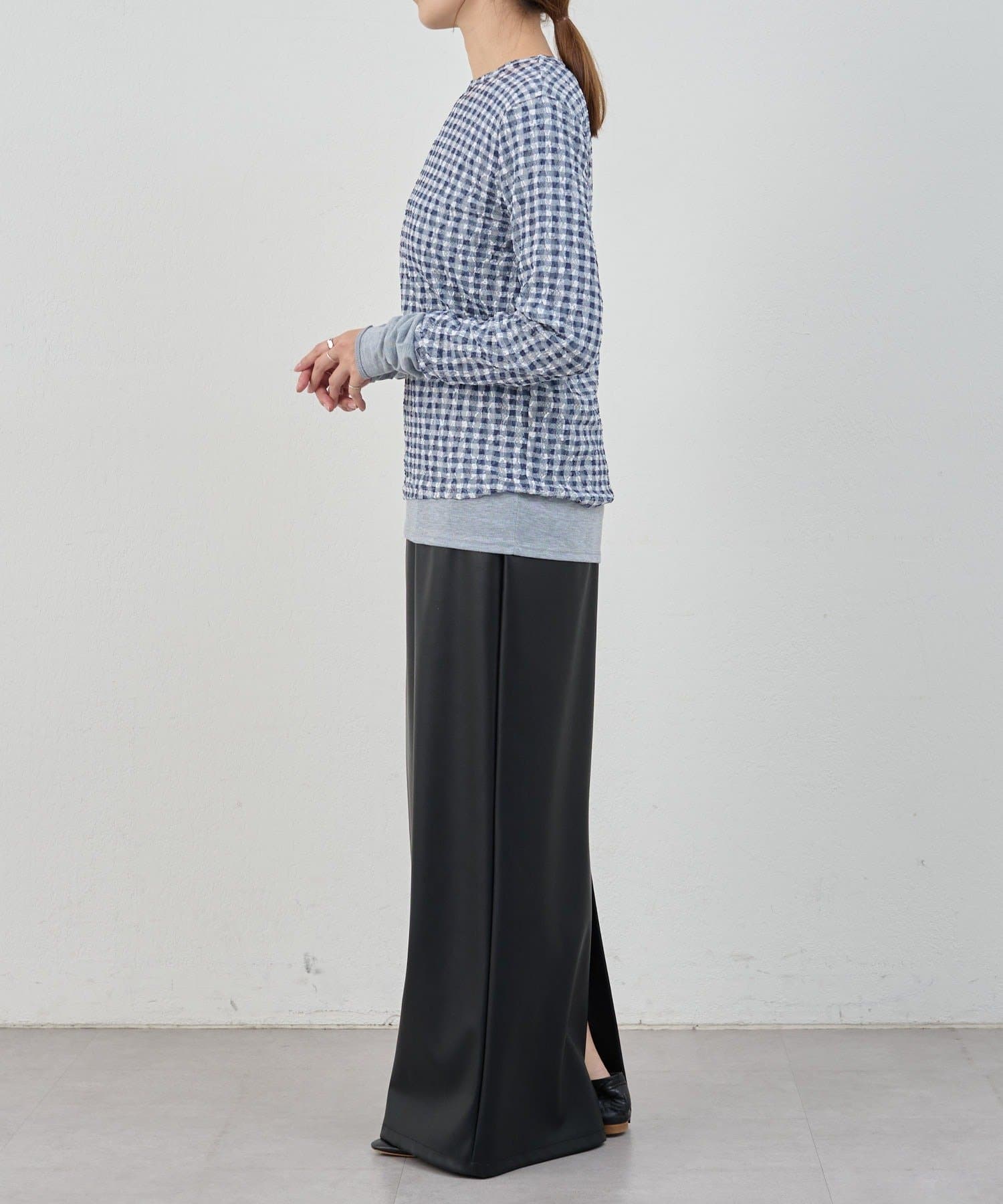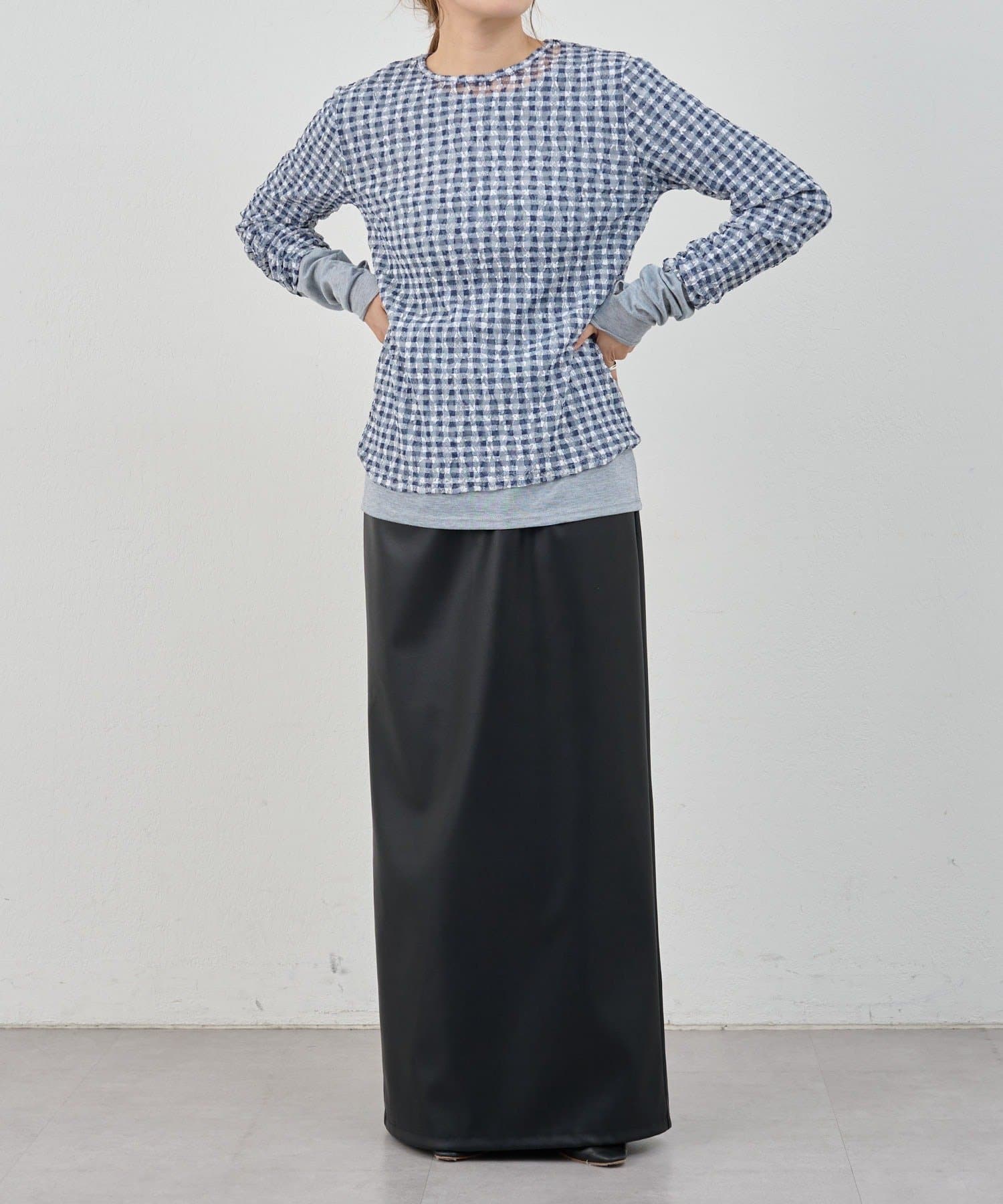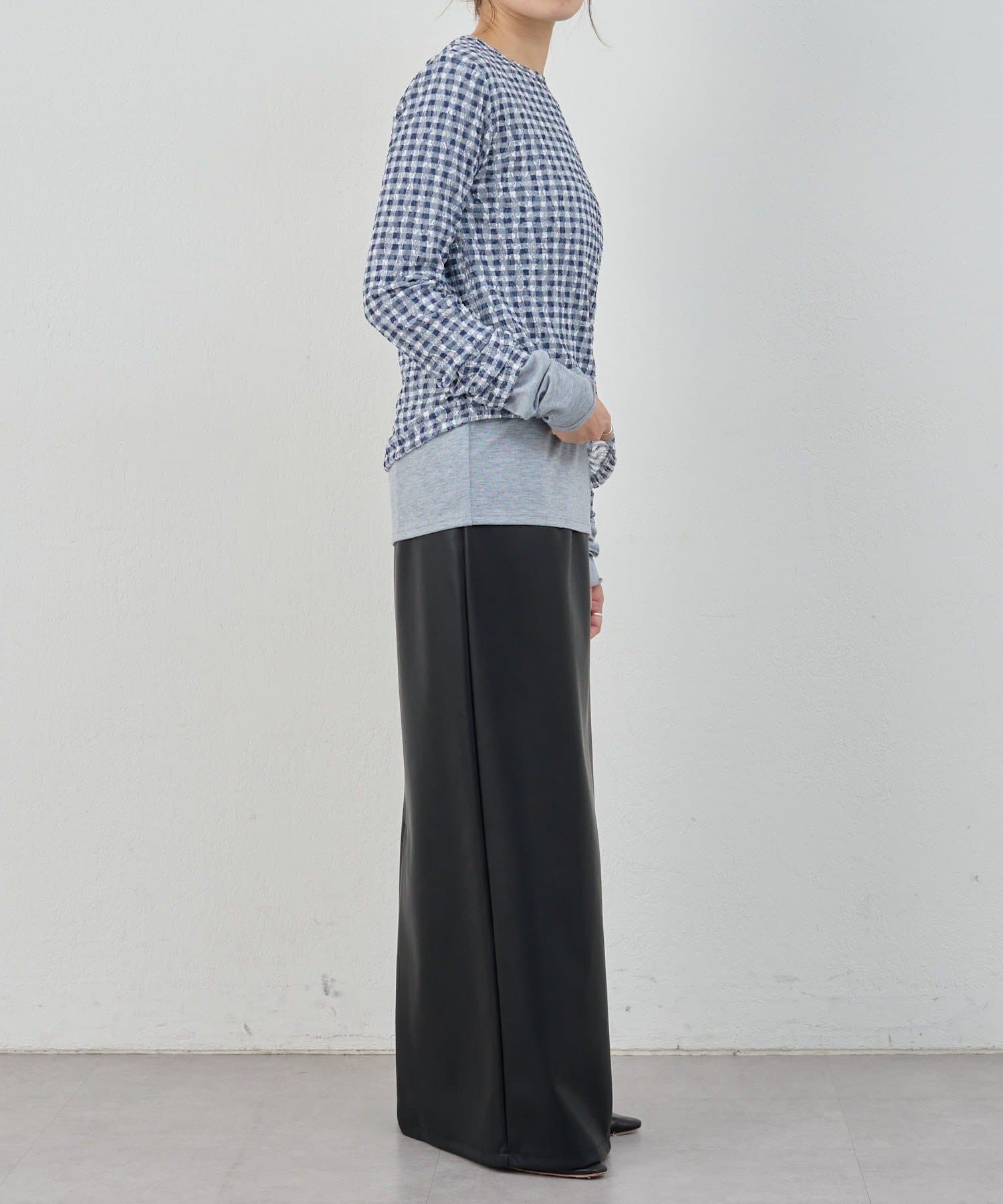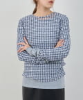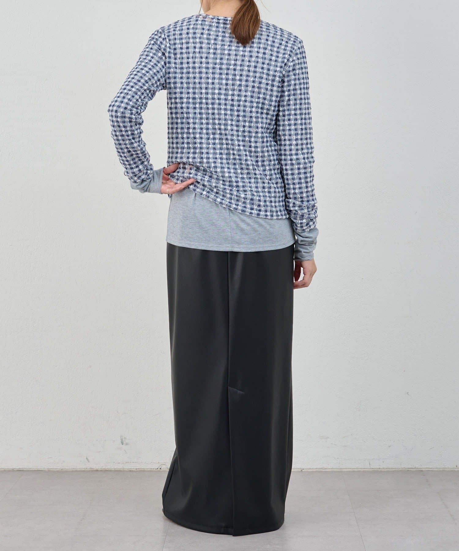 シアー感のある薄手素材にチェック柄をプリントしたカットソー。