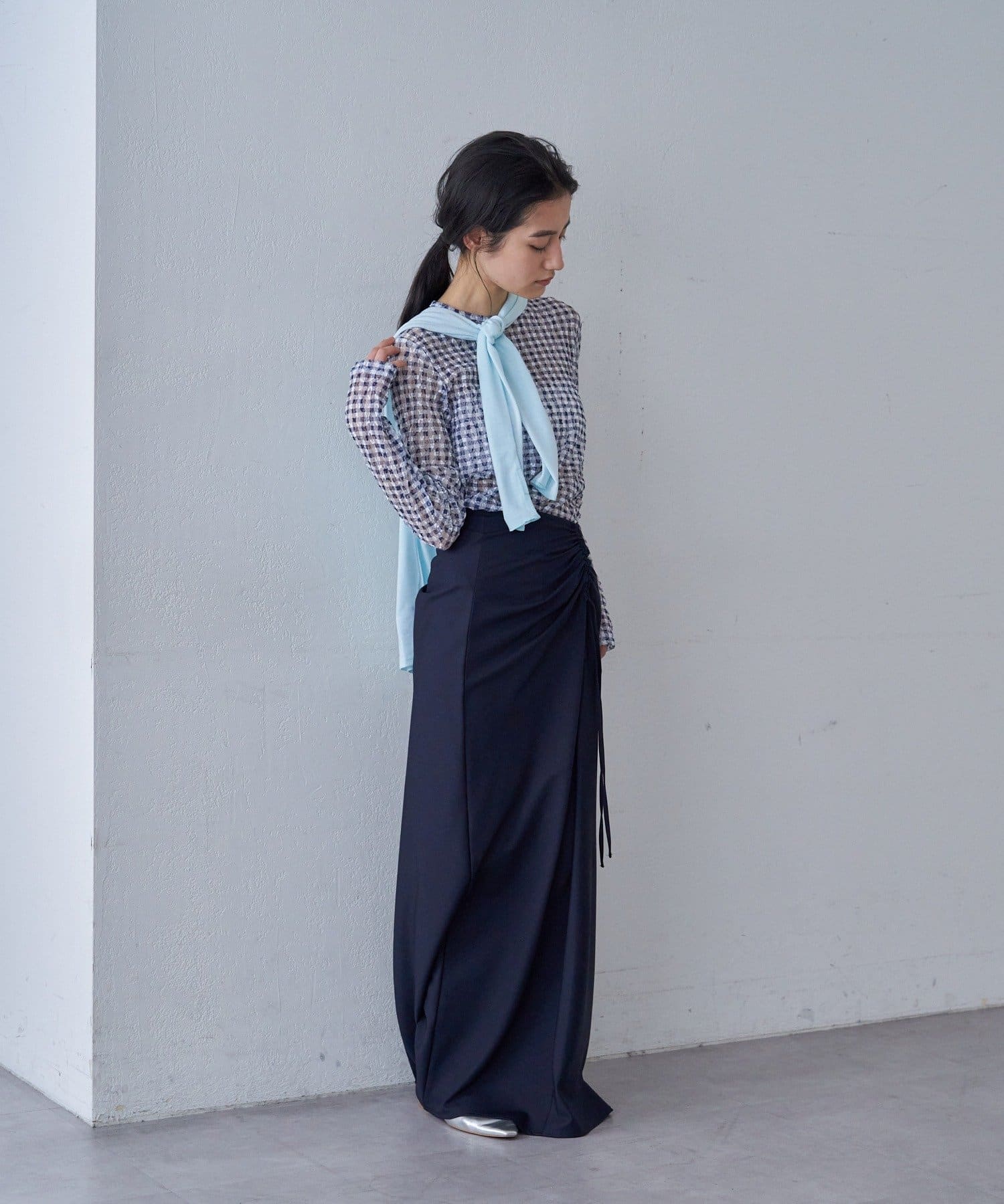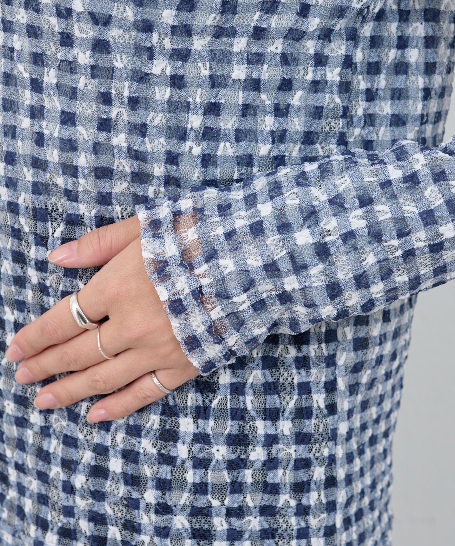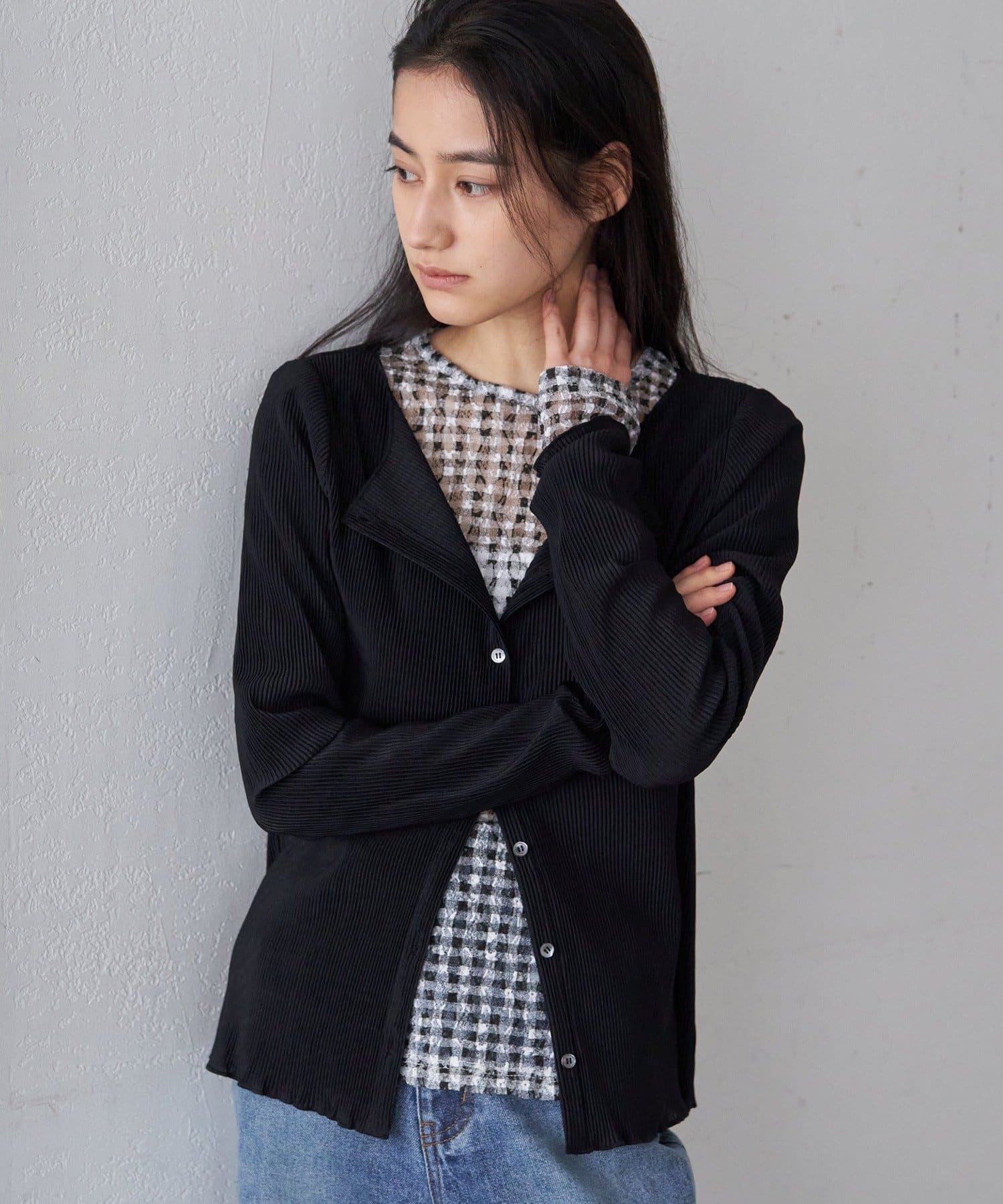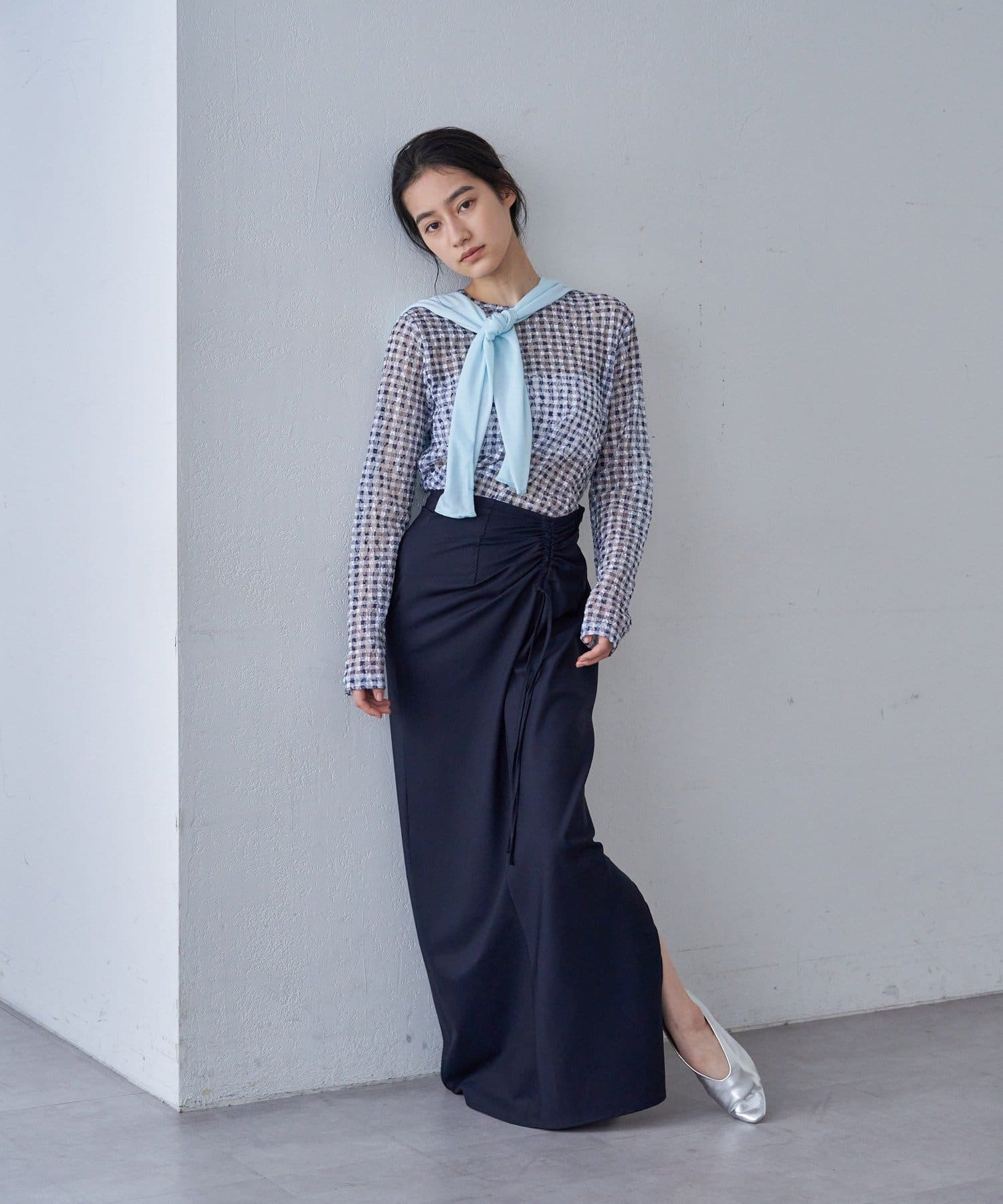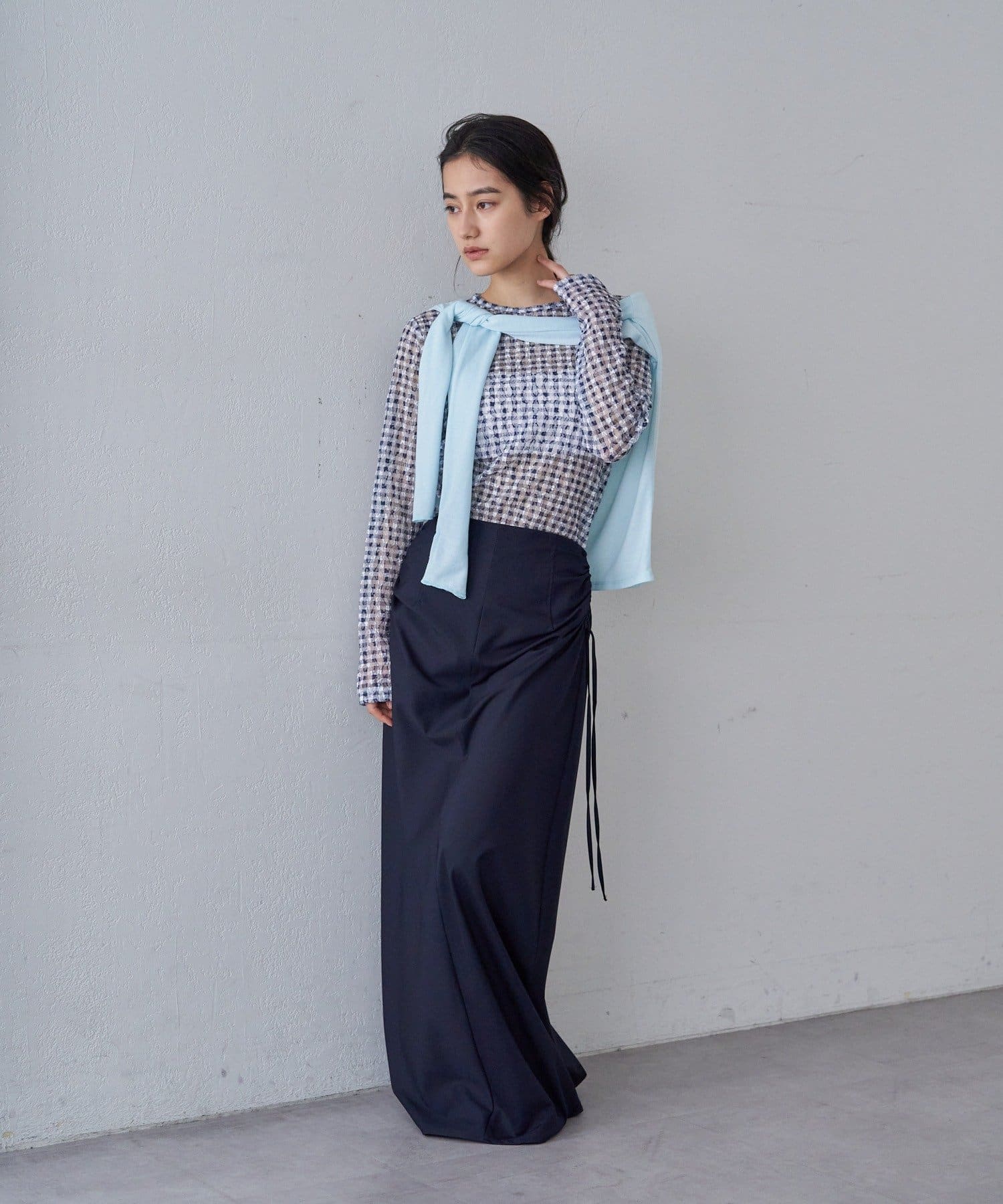 ほどよい透け感で抜けをつくりつつ、主張しすぎないデザインがスタイリングに取り入れやすい1枚。