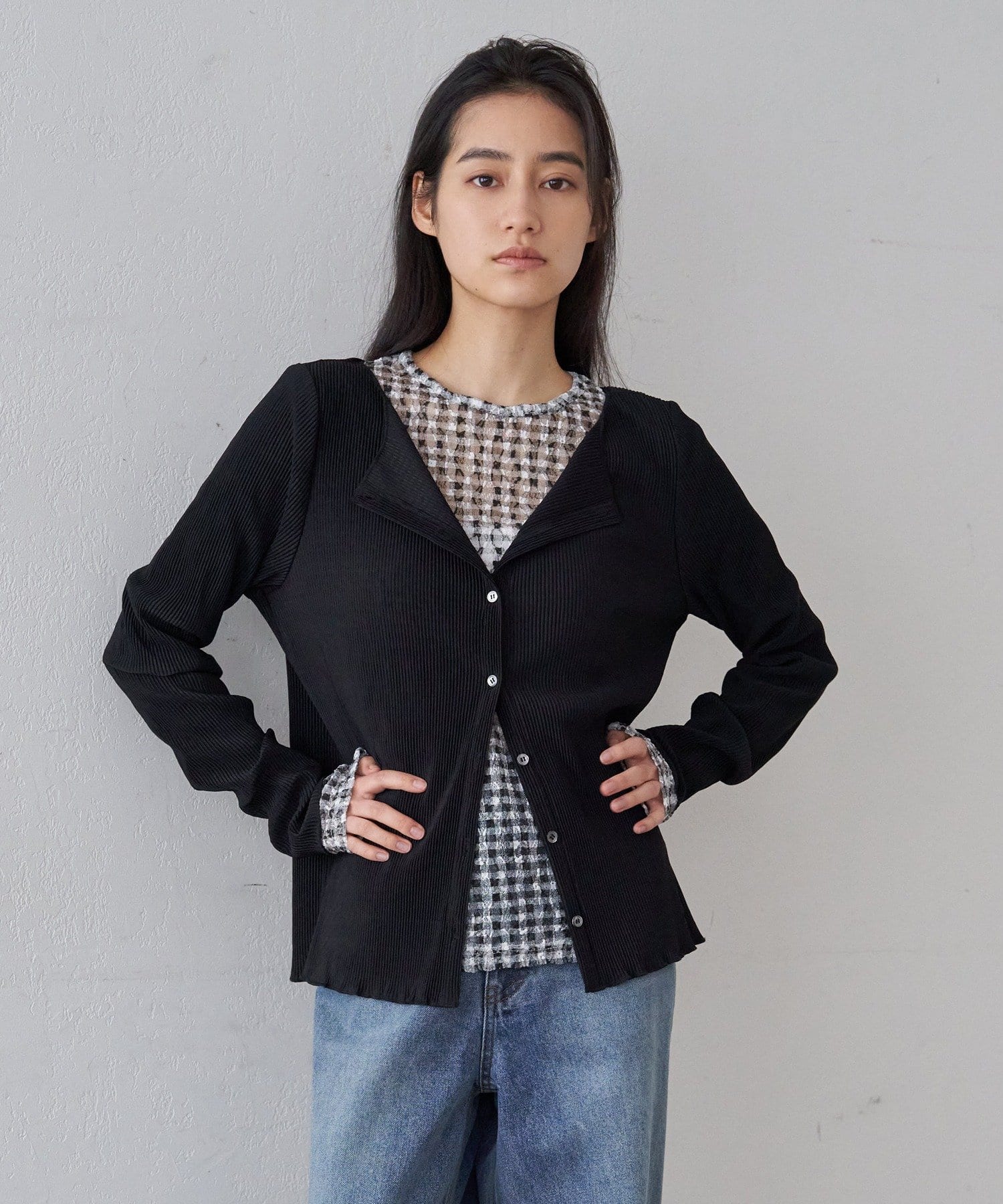プリーツカーディガンのインナーに。