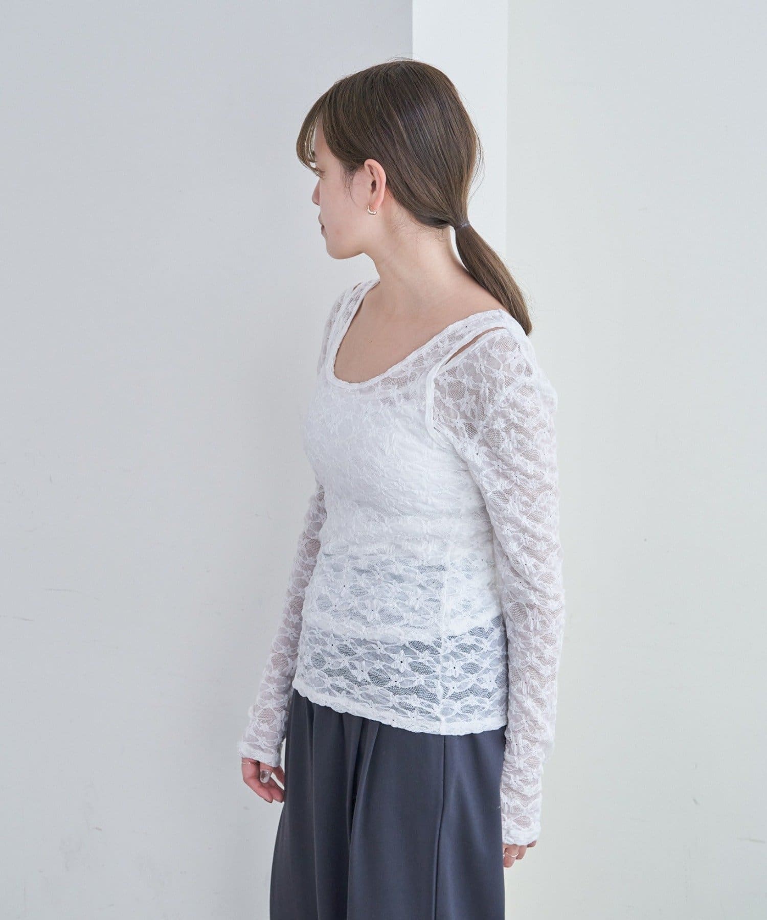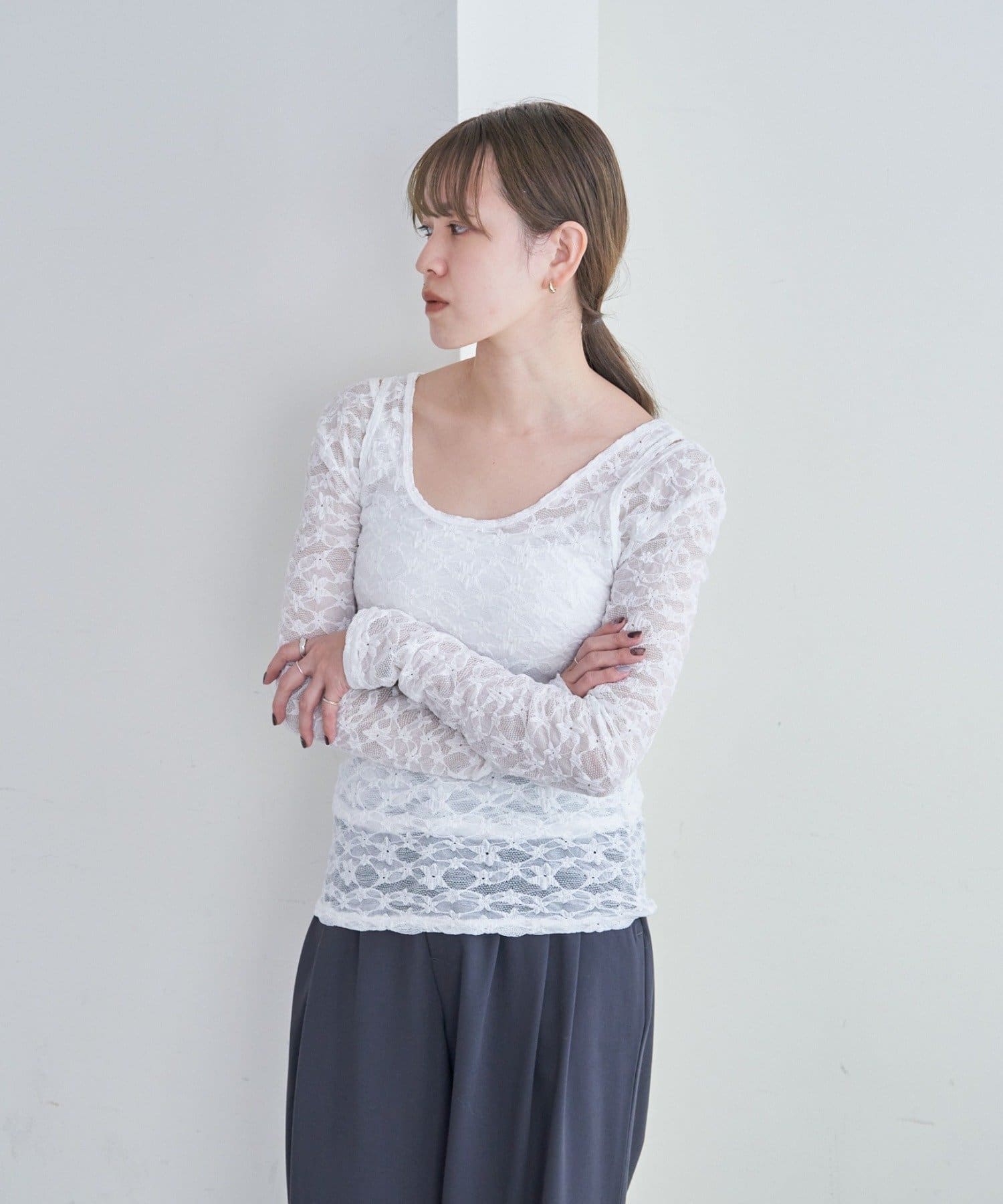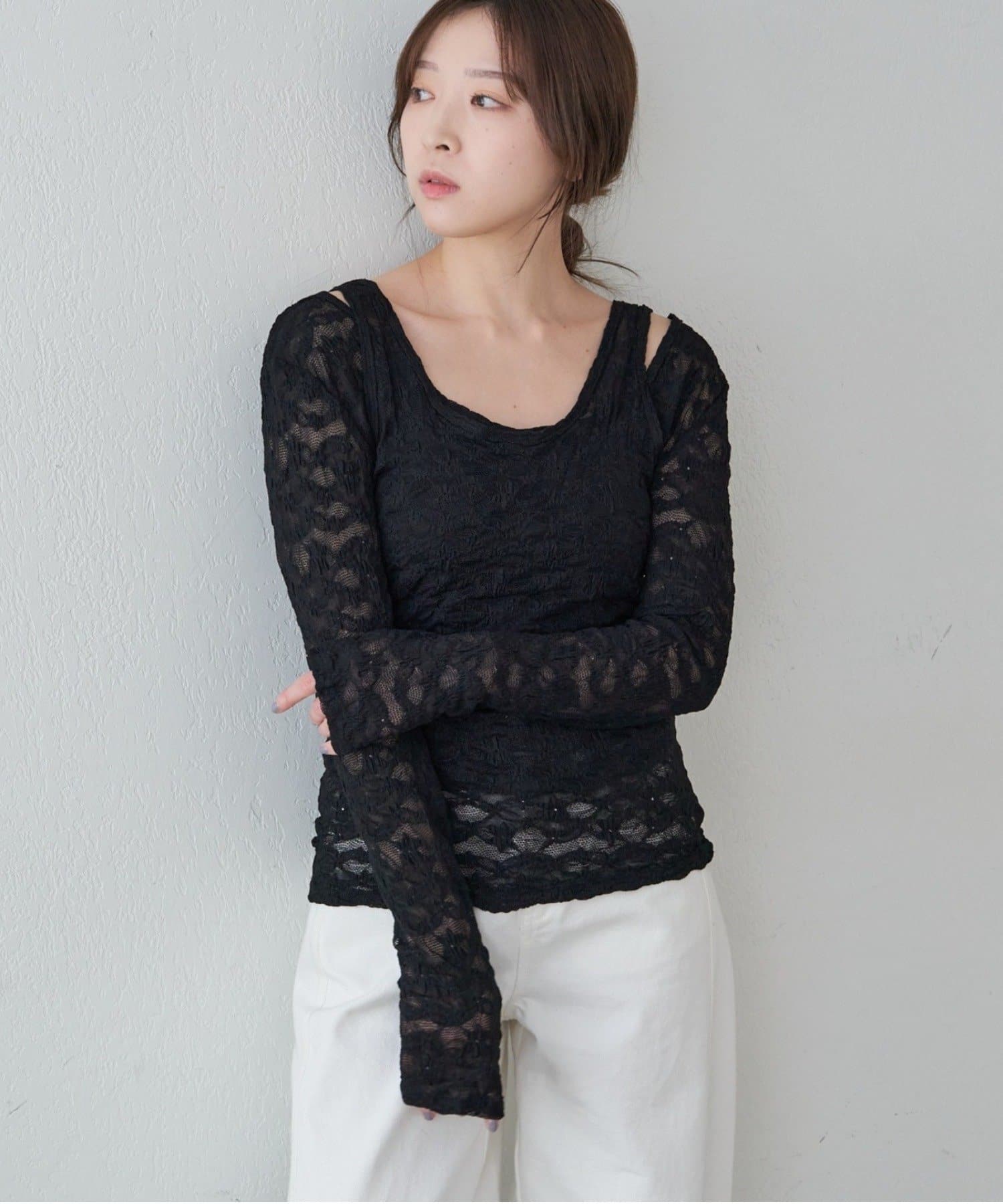 • SHENERY(シーナリー) レースレイヤードカットソー