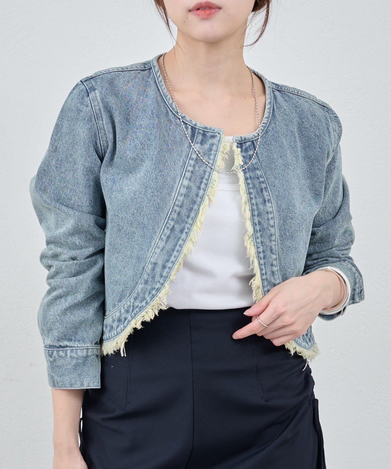 定番のデニム素材をボレロ型にし、今までのスタイリングが一気に新鮮に見えます。
